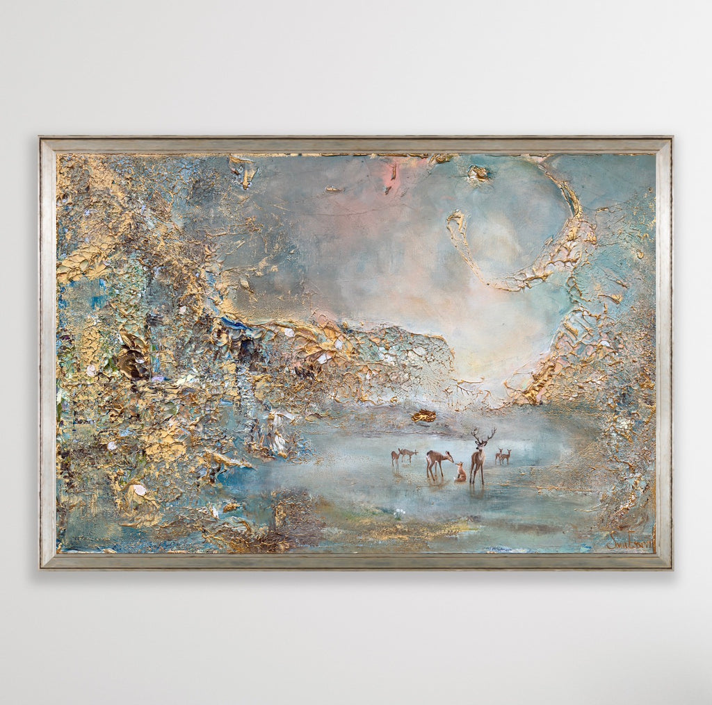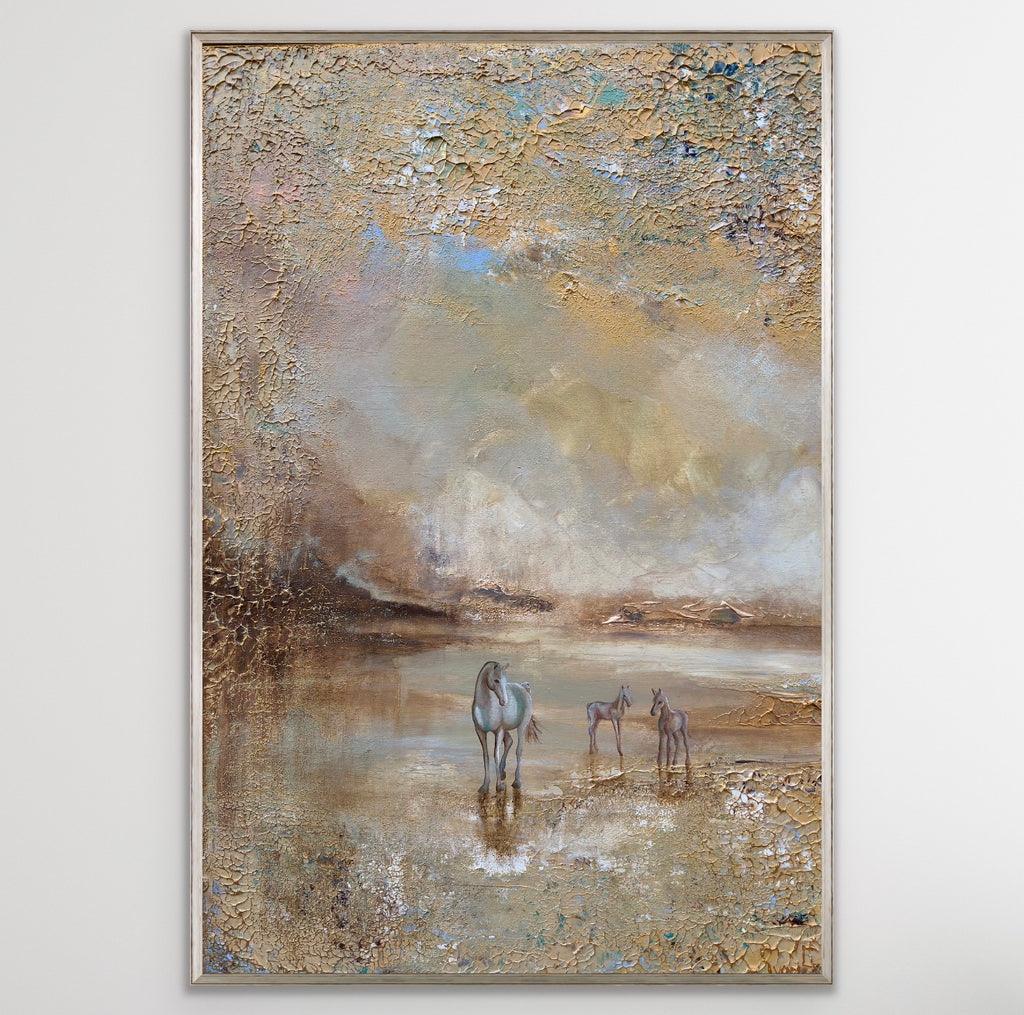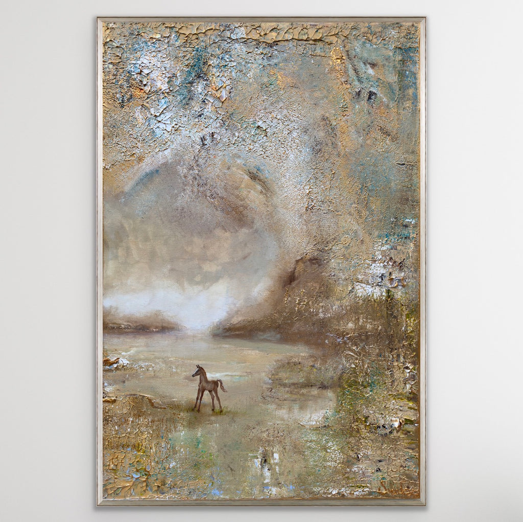 My art can easily be recognized from the mixture of abstractness and concreteness. By experimenting with the texture and drying process with acrylics, I have developed a unique technique. Several layers of thick paint are being applied to the canvases. Simultaneously, I use different tools and my fingers to shape the paint. Some sections are almost sculptures on their own. The light source is another important element in my art.