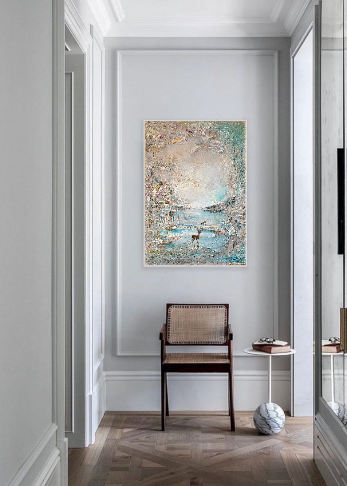 We offer worldwide shipping. The delivery is up to 6 weeks. A white and golden frame created by the artist, is included in the price.
