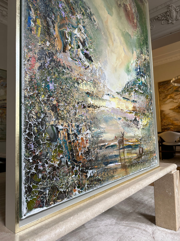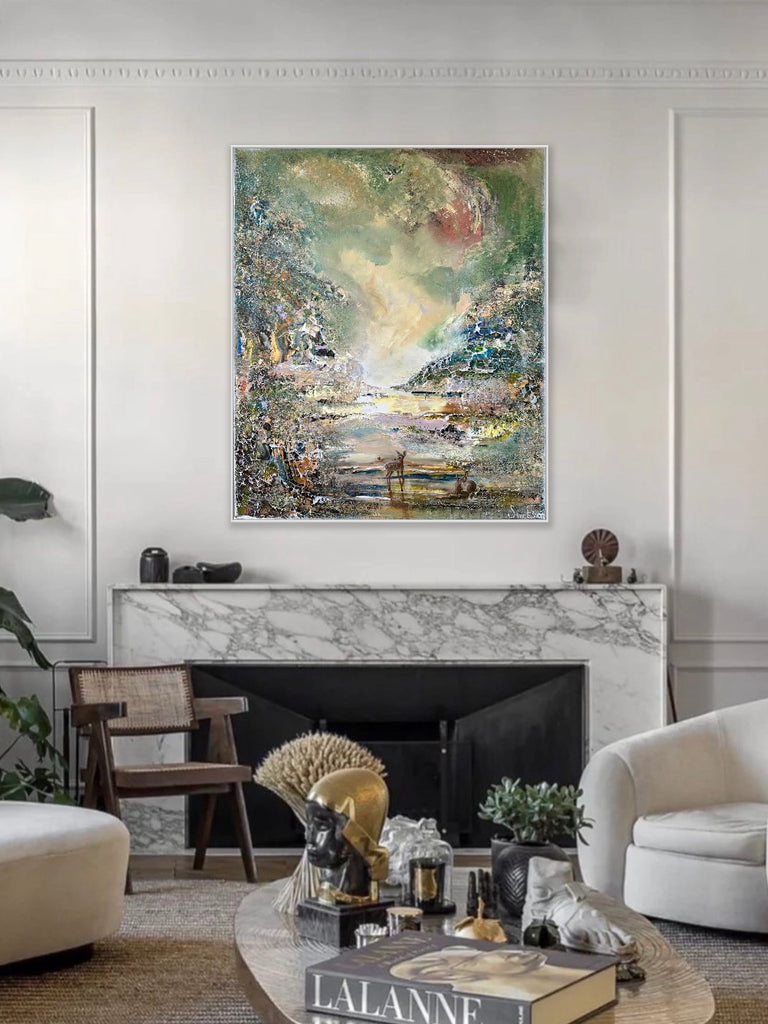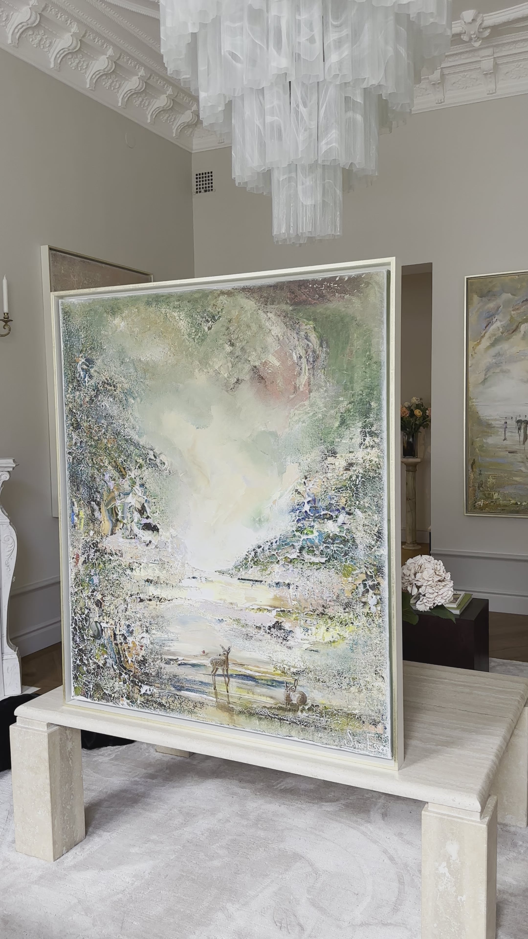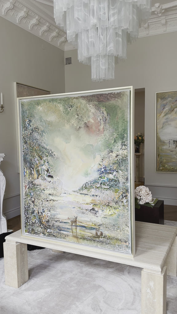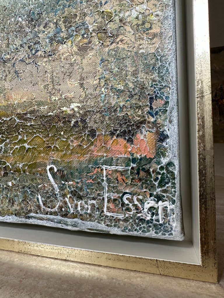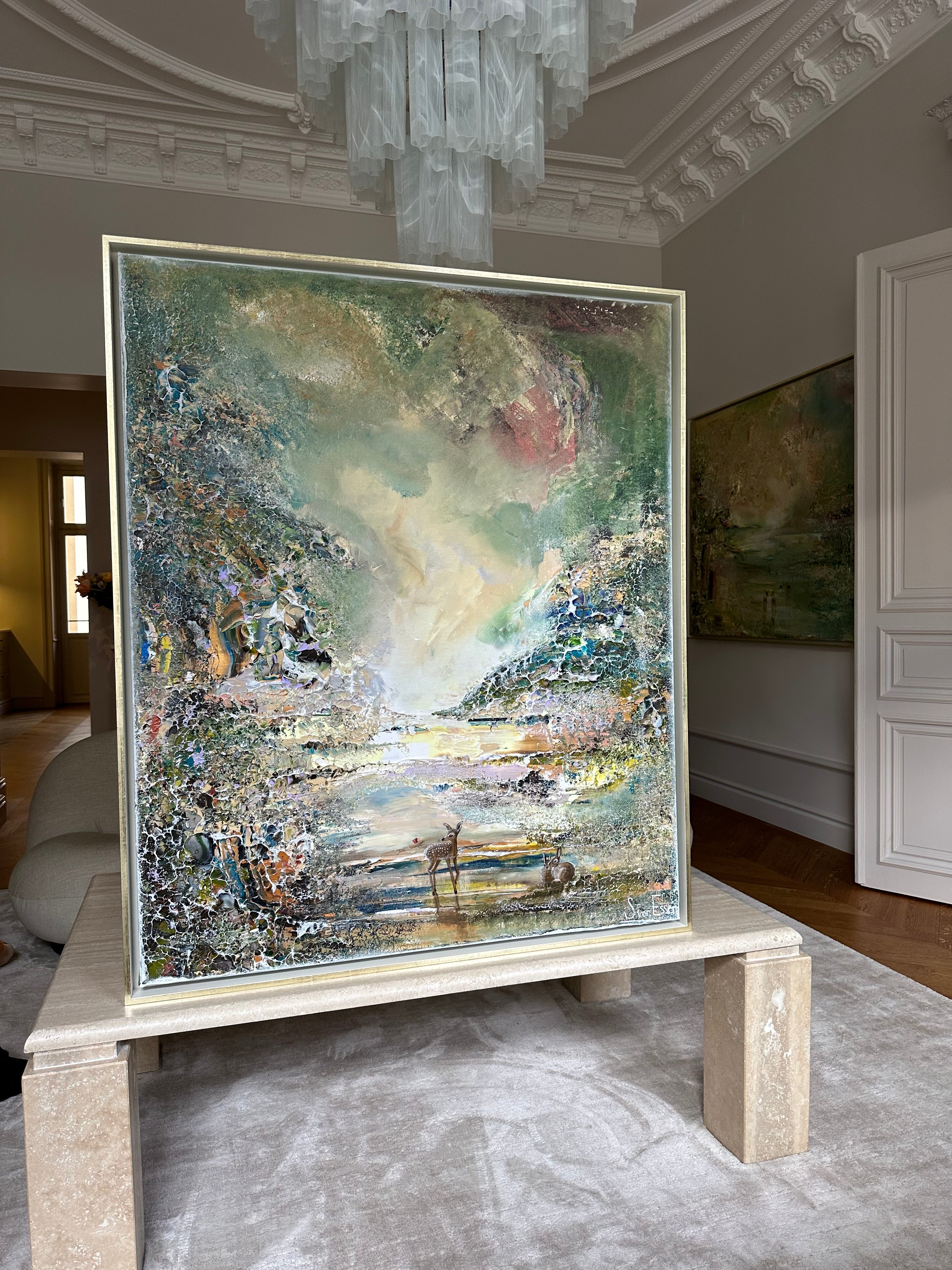 We offer worldwide shipping. The delivery is up to 6 weeks. A white and golden frame created by the artist, is included in the price.
