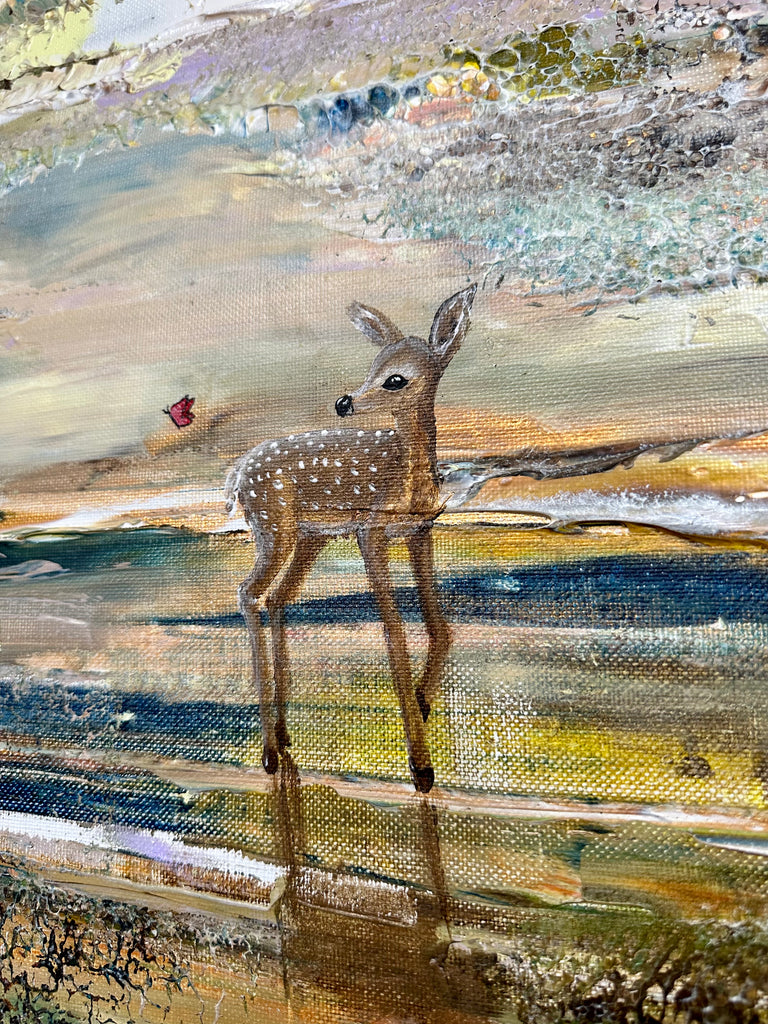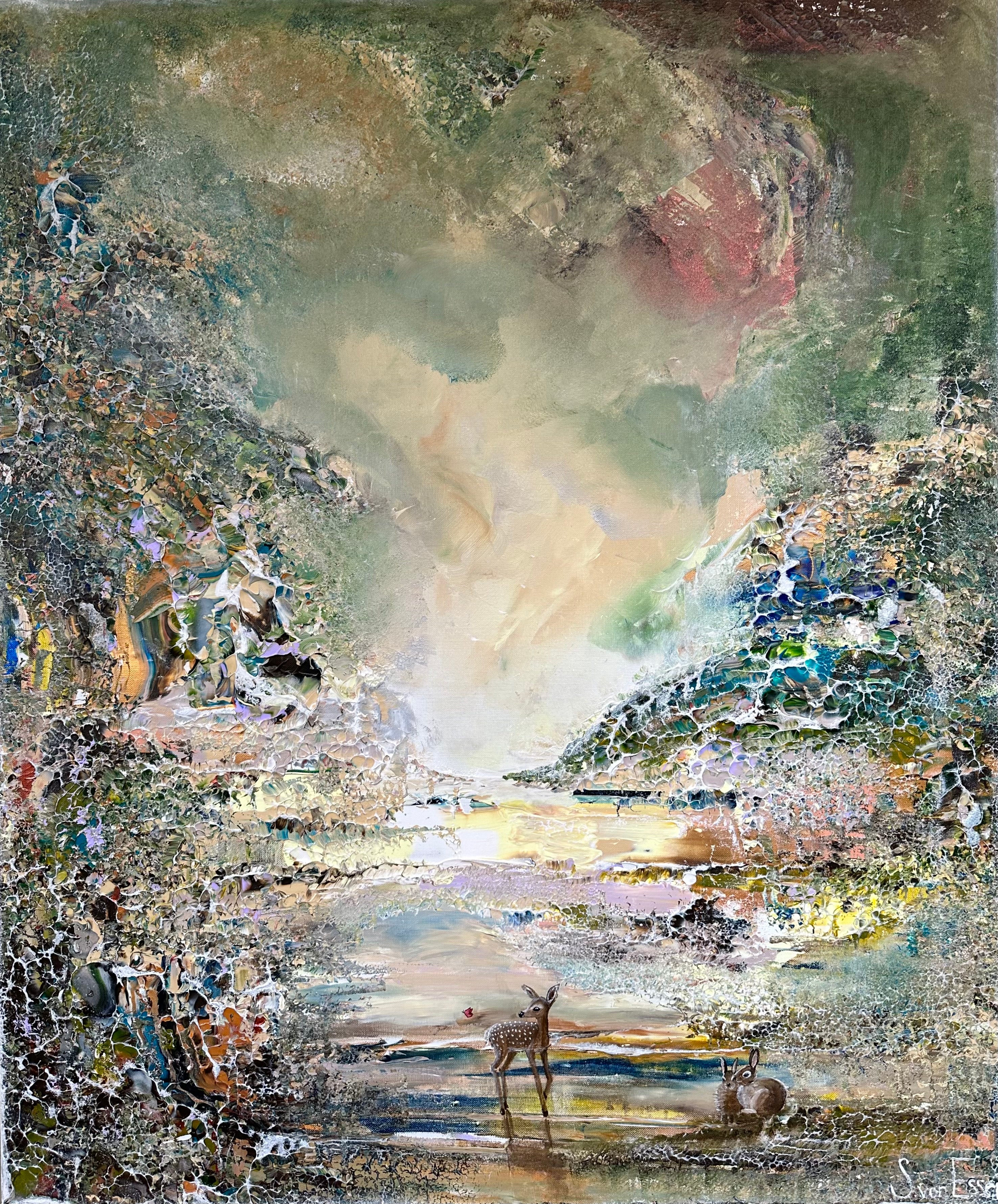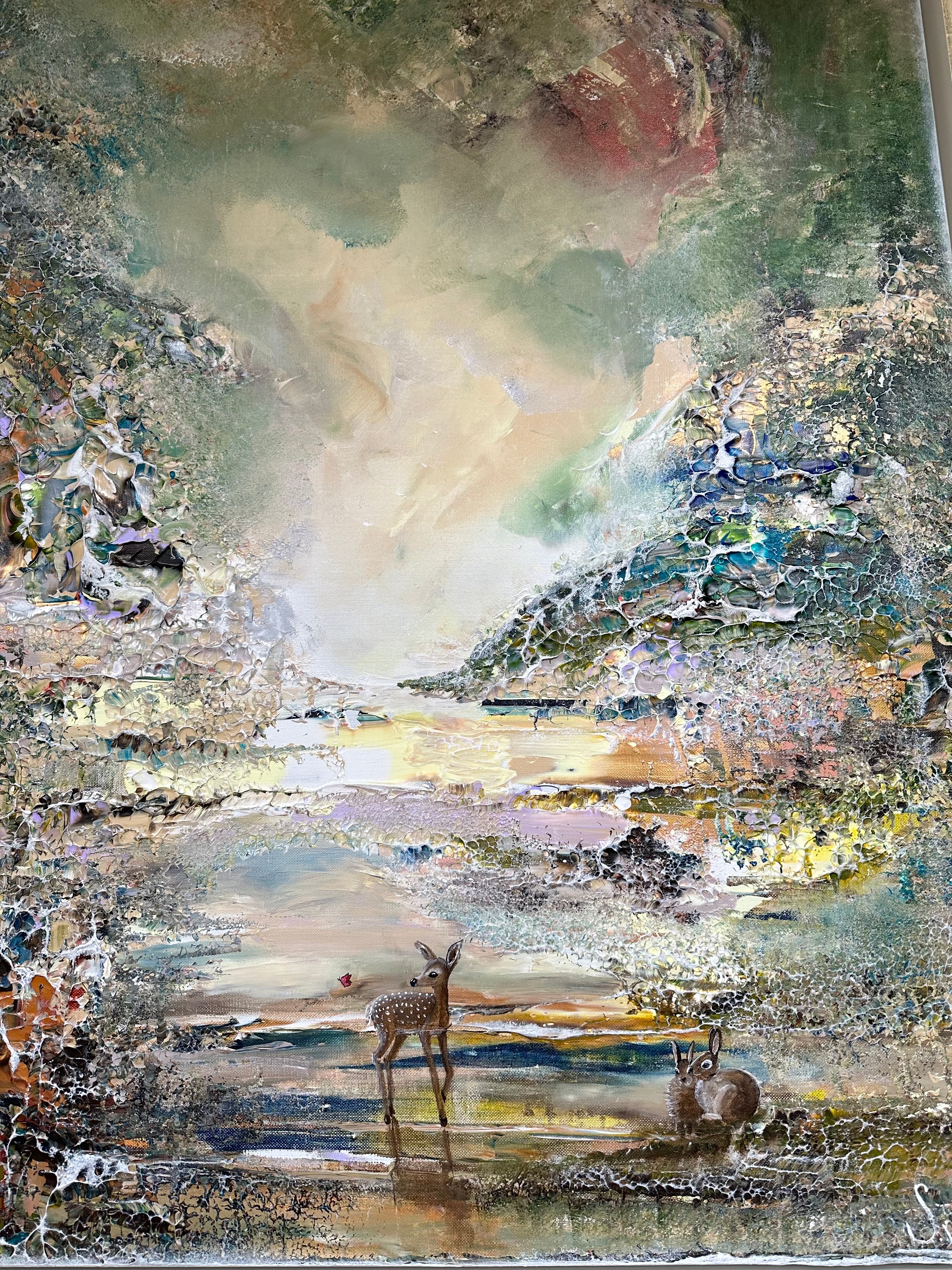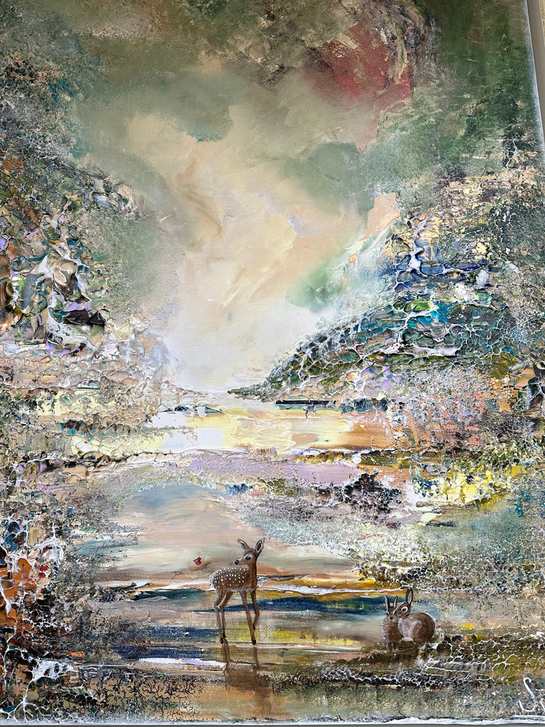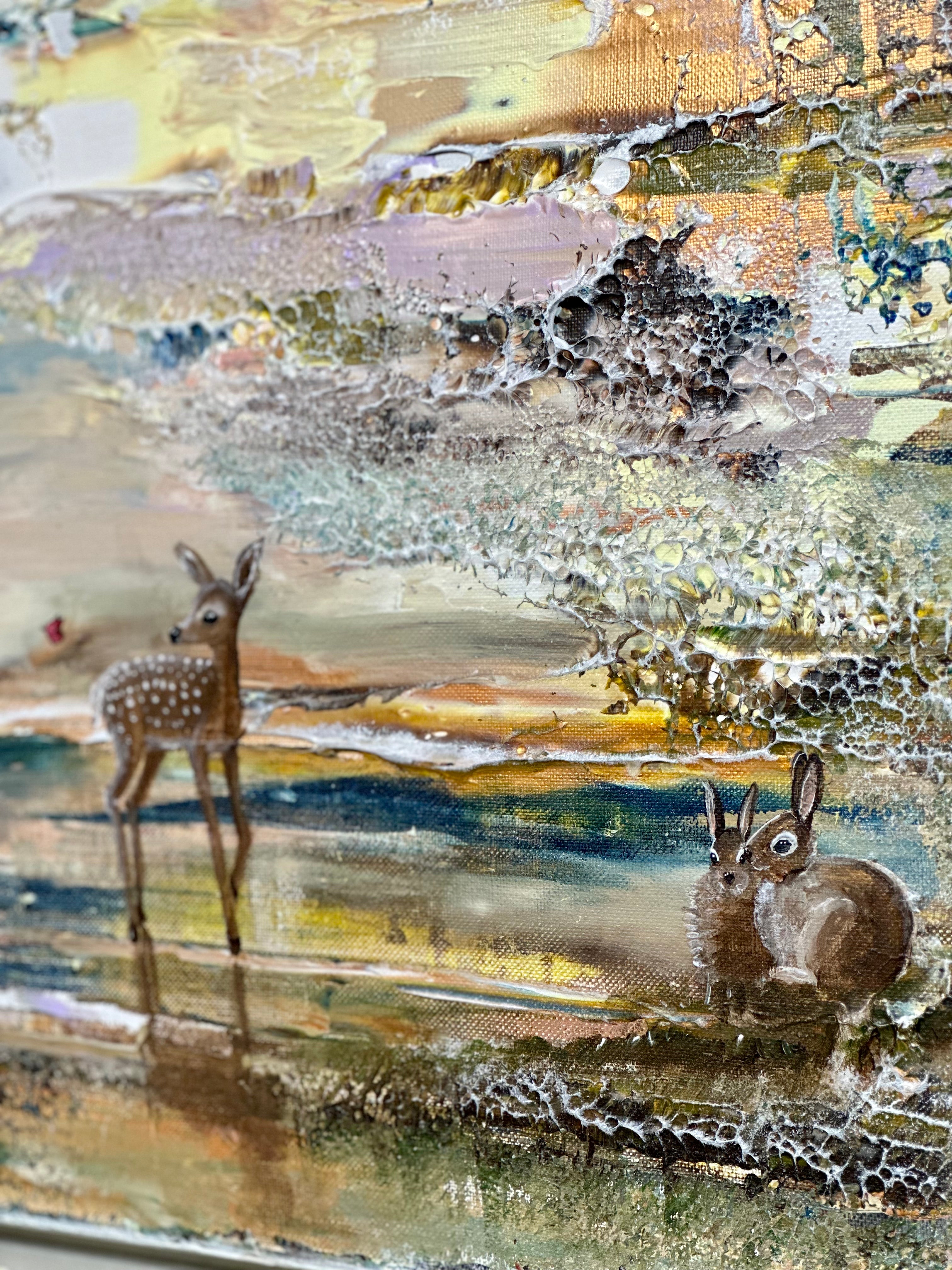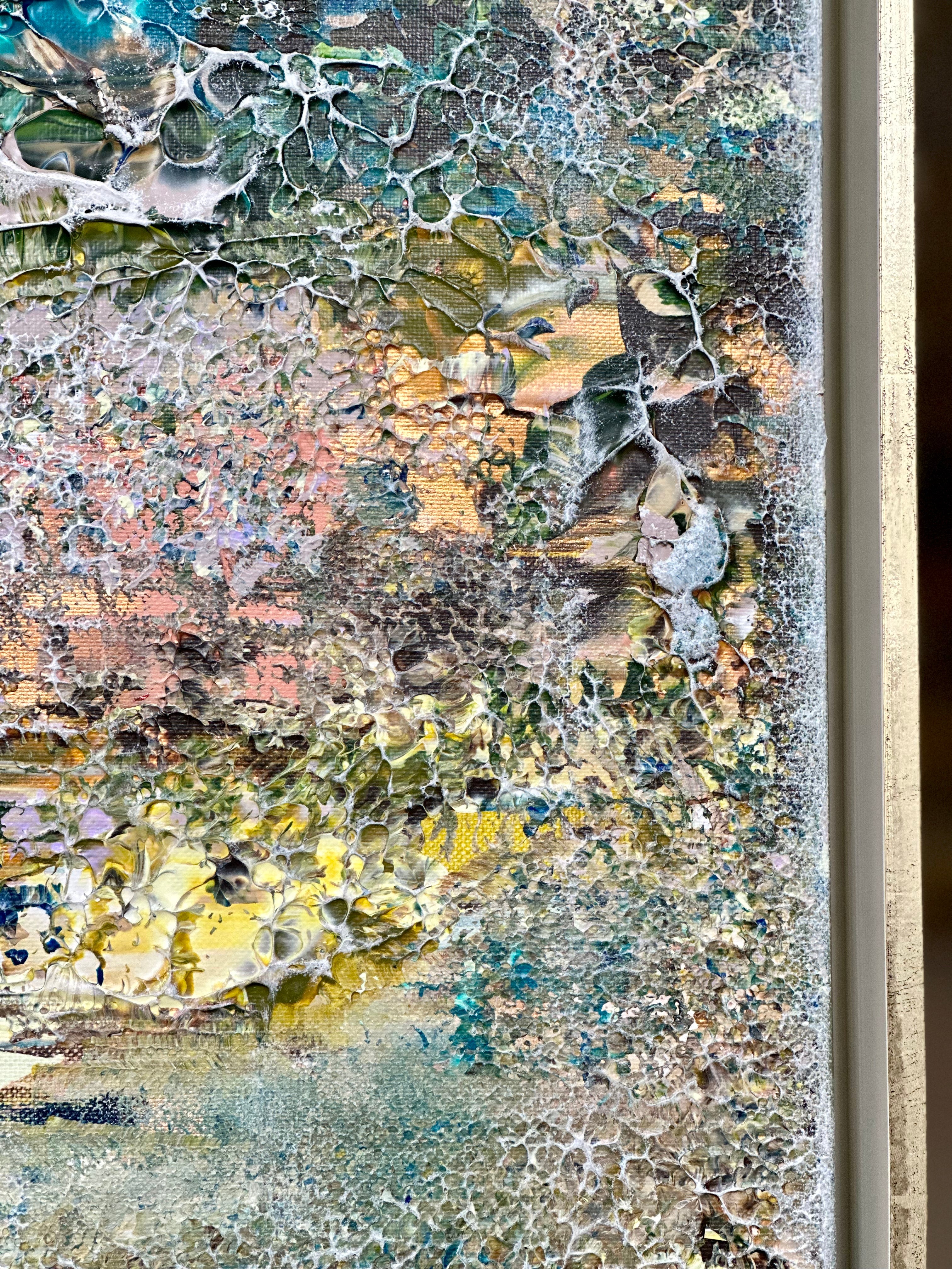 We offer worldwide shipping. The delivery is up to 6 weeks. A white and golden frame created by the artist, is included in the price.