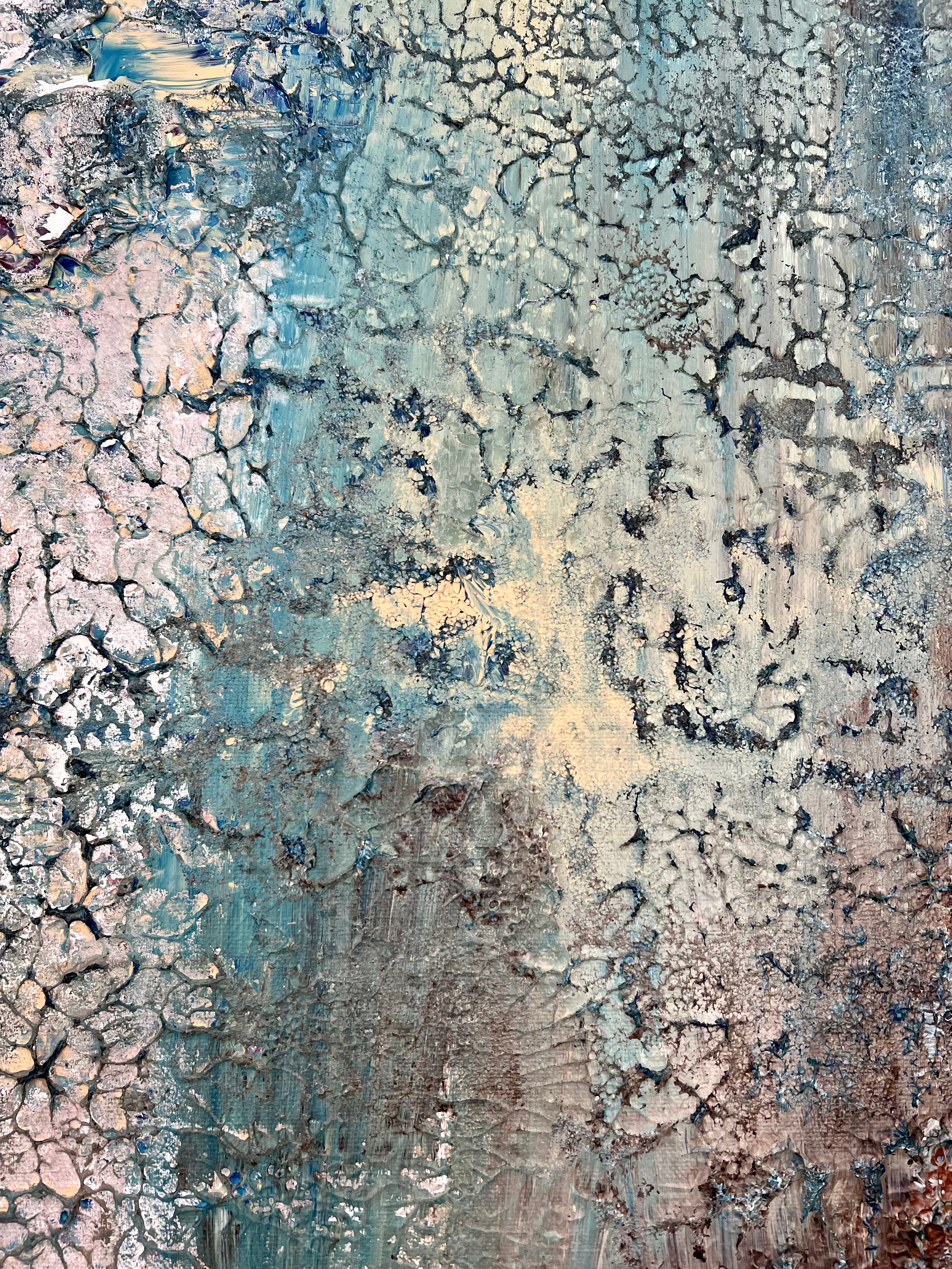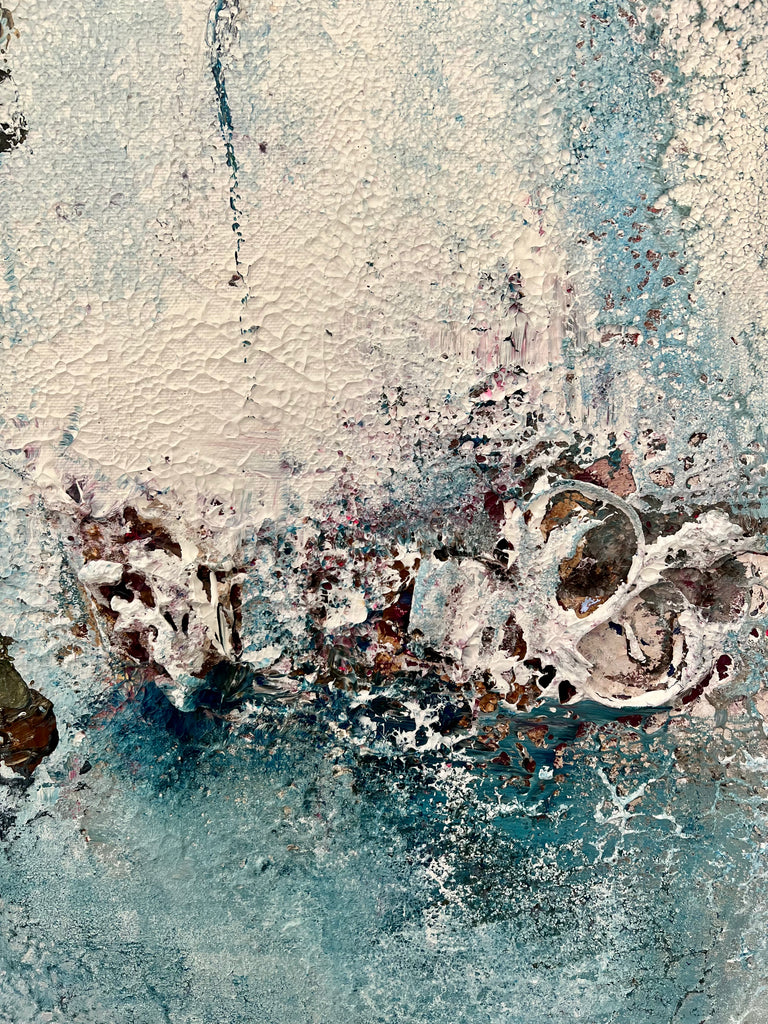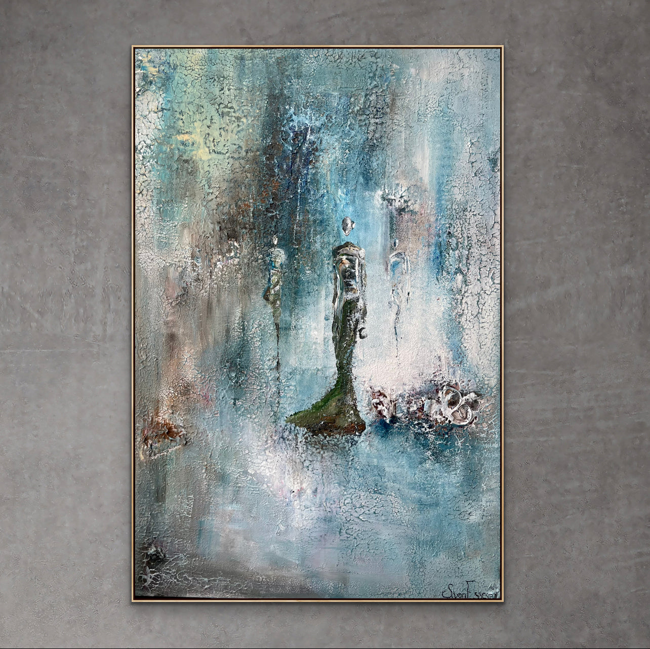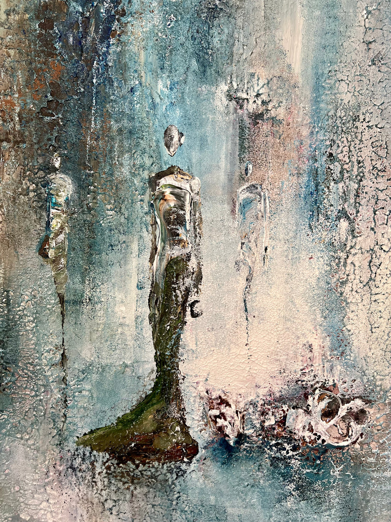 The colors used, goes in different blue and earthy scales, which gives the painting a serene impression. My inspiration to this painting comes from those late evening walks when the city is asleep and everything could happen. It is something special about walking around that time of the day and I have tried to capture exactly that moment.