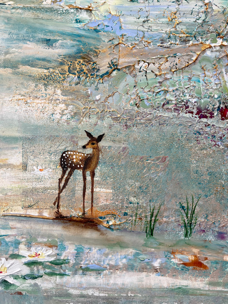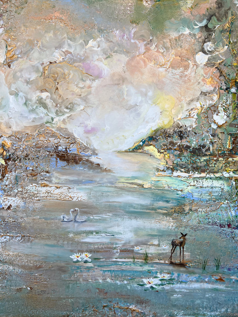 Spring Morning has a very harmonious feeling and I have used bright and calm colors with light brushstrokes to create that kind of atmosphere. To put a lot of effort into the light source and to truly give this painting depth has been an important part of the painting process.