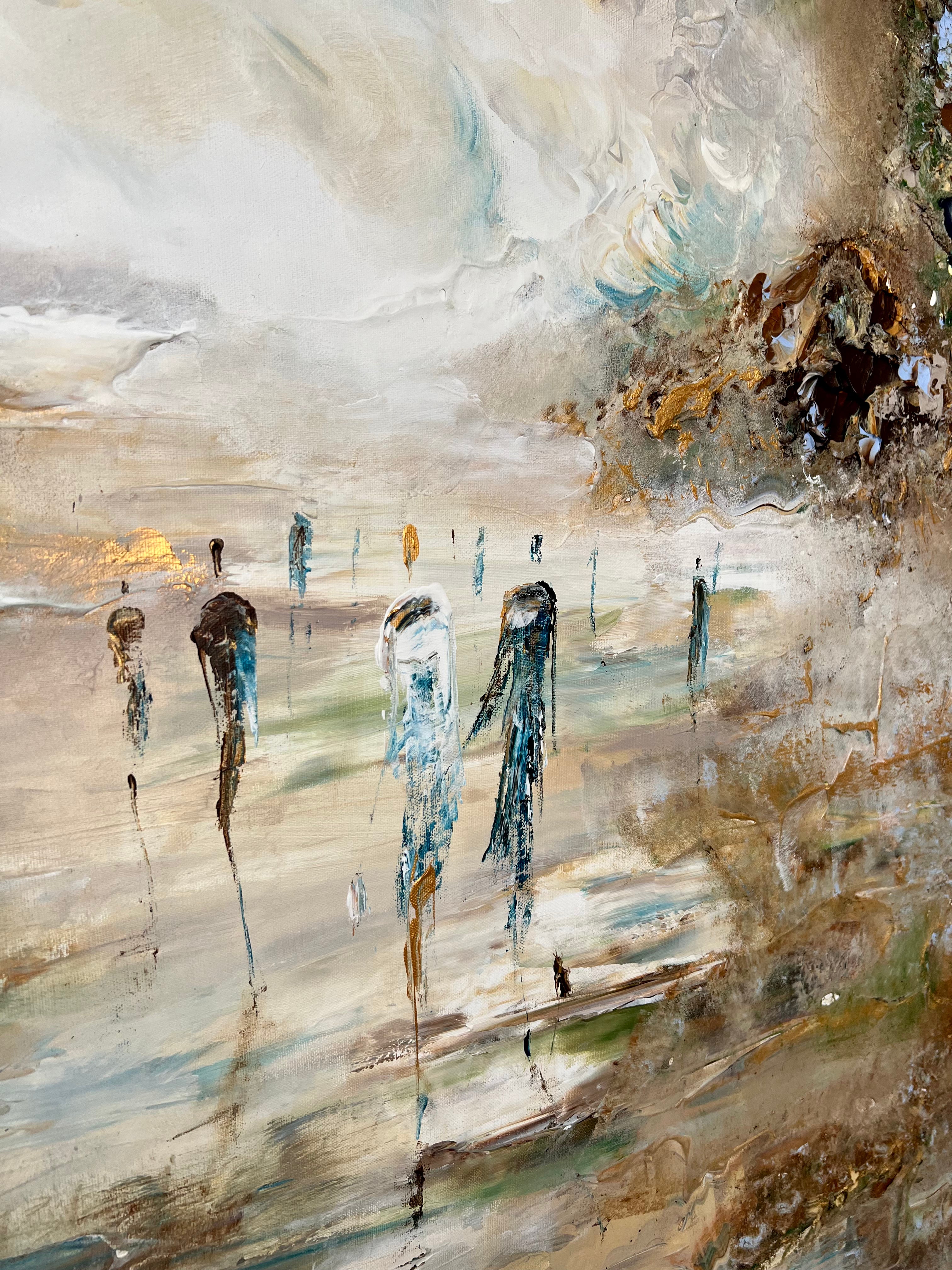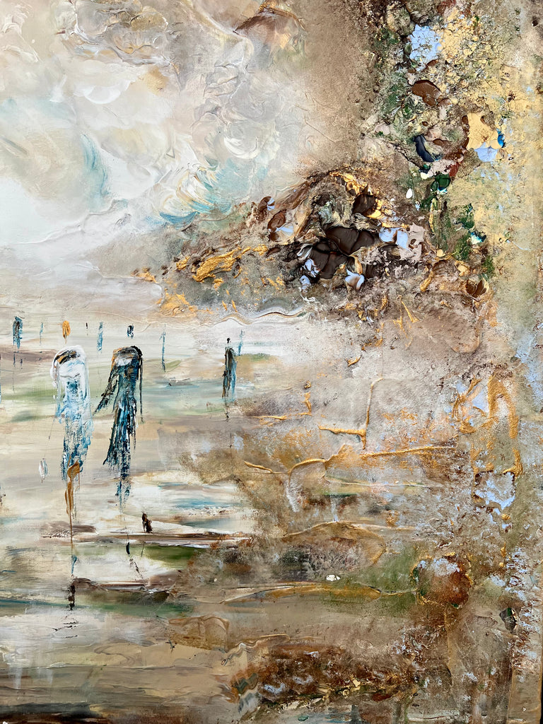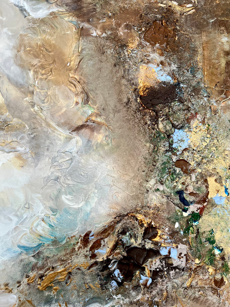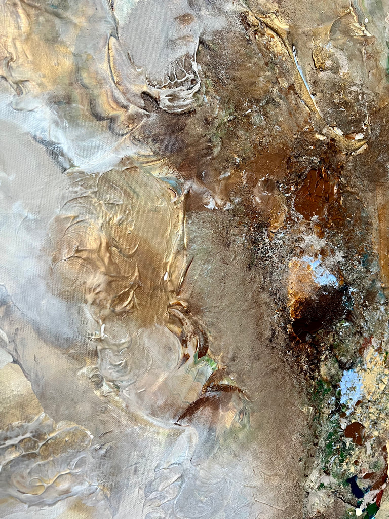 I have also put a lot of effort into the texture. There are thick layers of paint that has dried much longer than usual. This meant that I had to tear apart the color and it later resulted in a very interesting speckled texture.