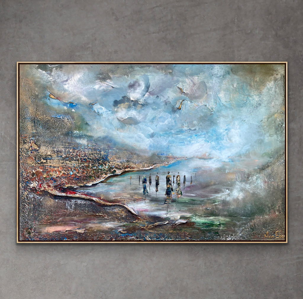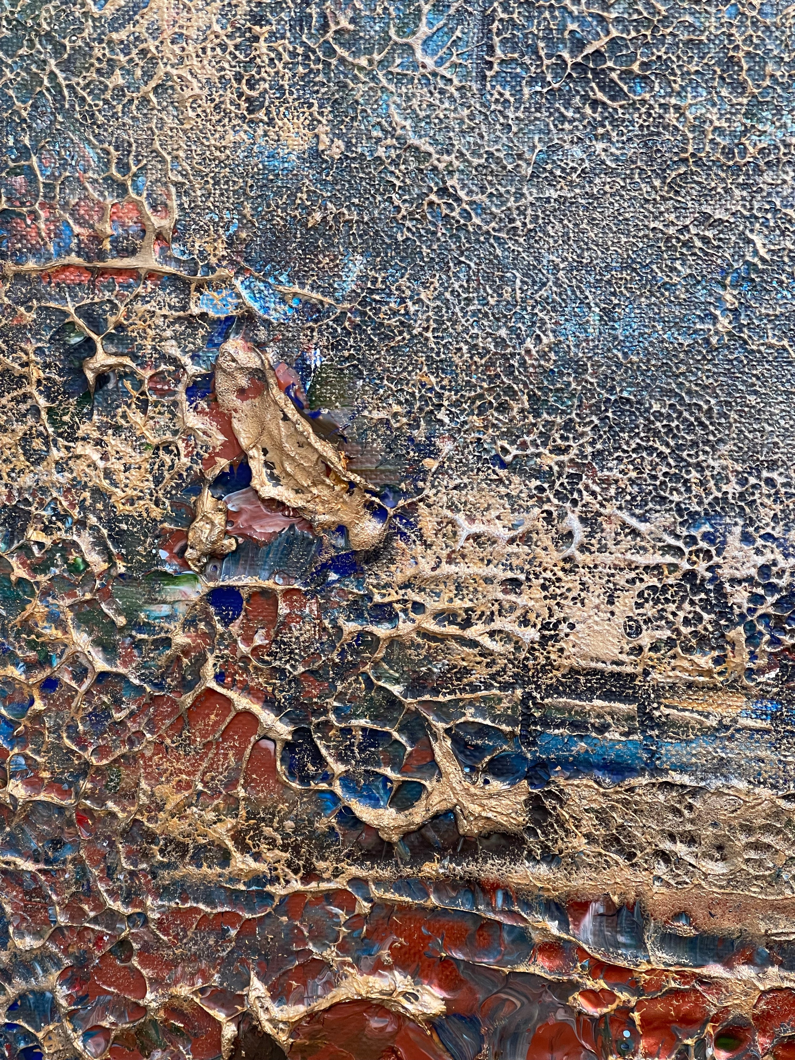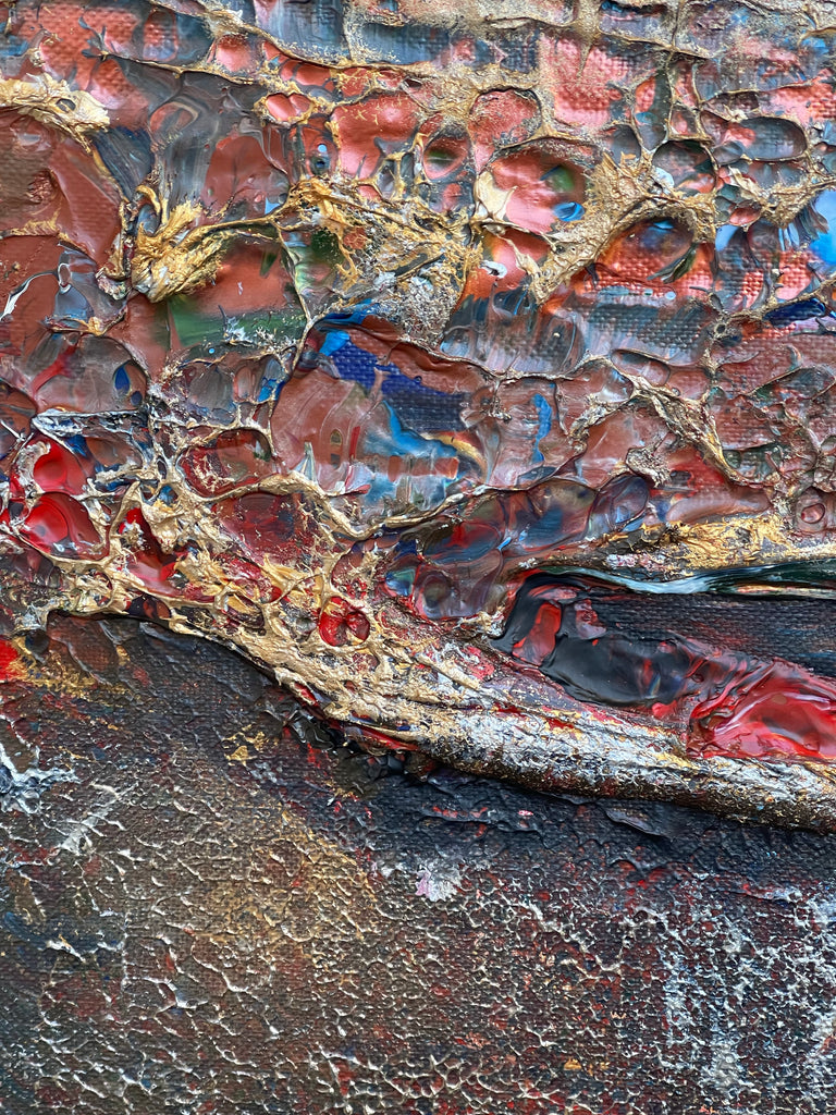 Ich mag besonders die sehr sehr dicken Farbschichten, die mit goldener Farbe bedeckt sind, um ein harmonischeres Gefühl zu erzeugen. Ich habe auch viel Liebe in die Menschen gesteckt, die alle sehr detailliert mit unterschiedlichen Mustern und Farben auf ihrer Kleidung sind.
