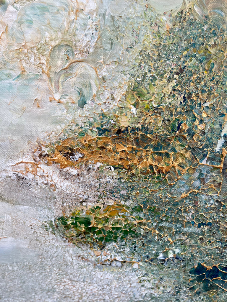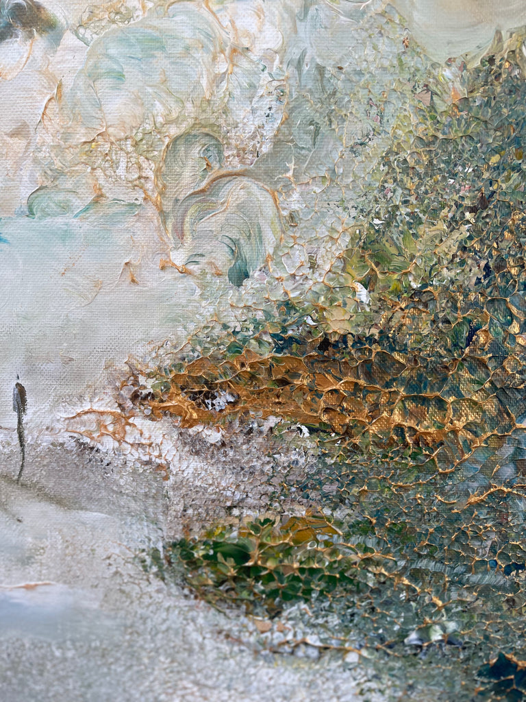 Der Himmel ist ziemlich dramatisch und die Lichtquelle ist in diesem Gemälde herausragend. Dies macht es ein bisschen mysteriös und erweckt die Fantasie, die ich mag.