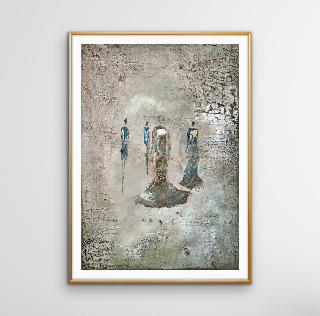 Como te he mostrado aquí en Instagram, he estado dibujando mucho para esta próxima exposición. Durante este proceso, quería capturar el alma de mis figuras, diseñar su ropa y darles una parte más grande de las pinturas. Esta es una pieza bastante única para mí, ya que es la primera que cumple con esta idea.