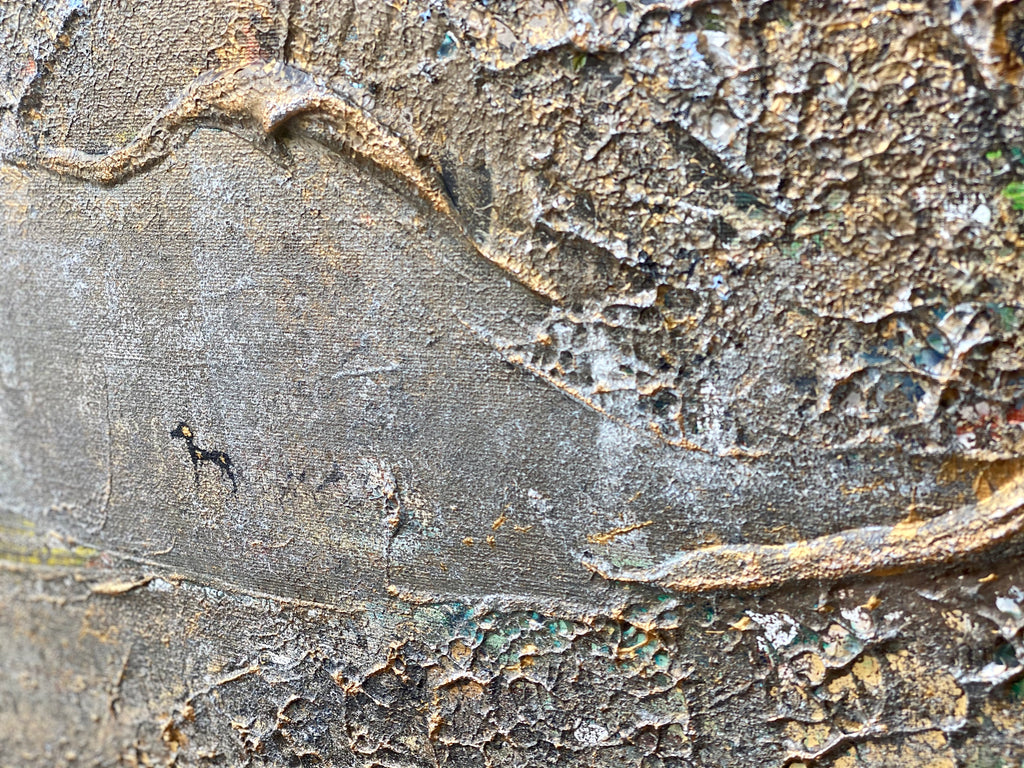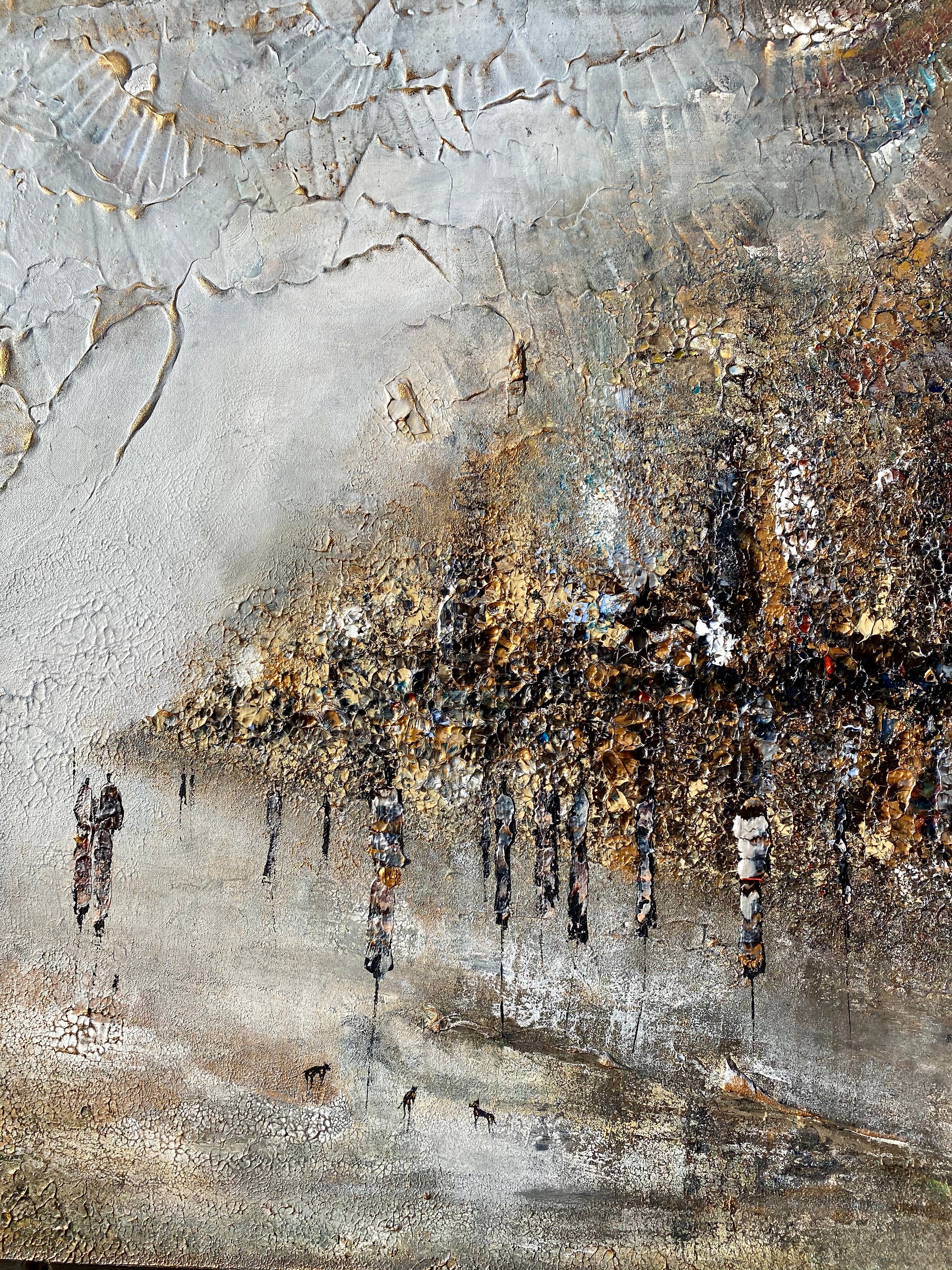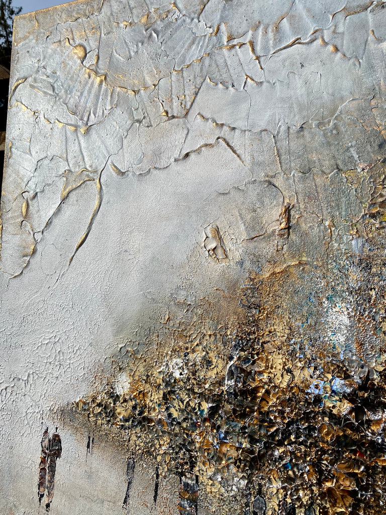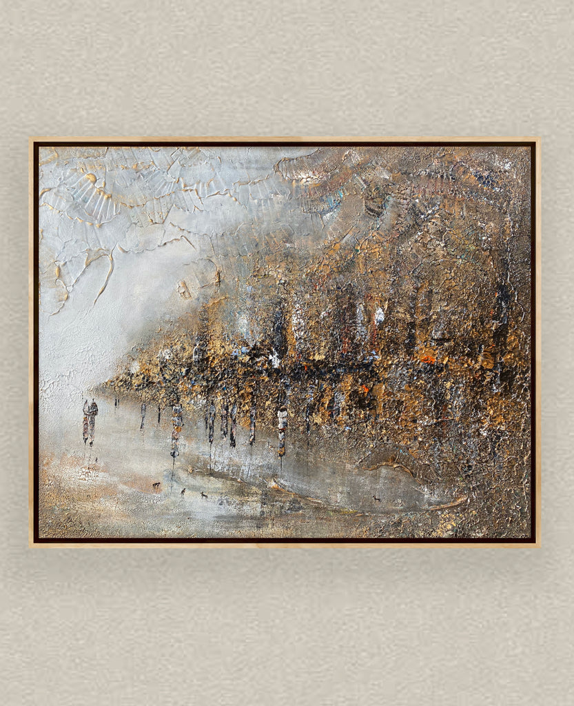 Inspirado por las calientes noches en Strandvägen. La pintura es un experimento de técnicas de nuevas olas que se pueden encontrar principalmente en la esquina izquierda de la pintura. Los detalles dorados capturan la luz en la pintura y le dan a la pintura una sensación nebulosa de calidez y sol. Tenga en cuenta las figuras de estilo en la pintura que llevan accesorios de Louis Vuitton y Hermes.