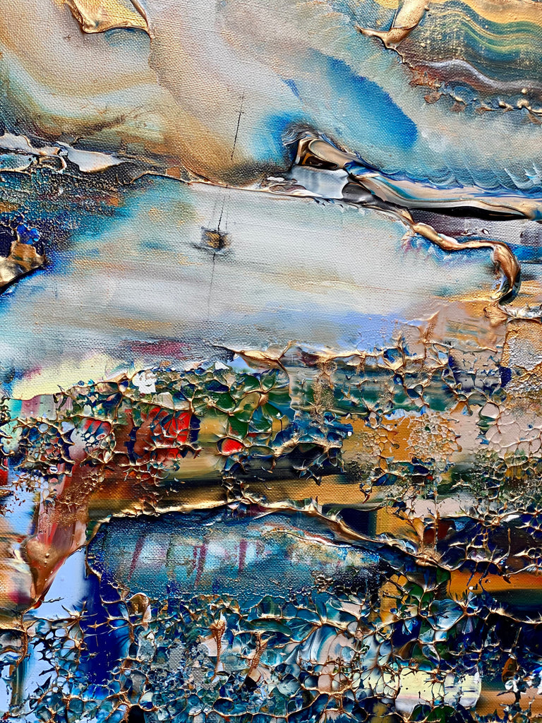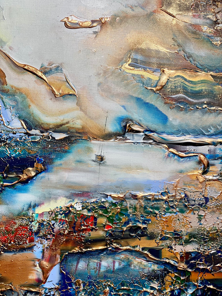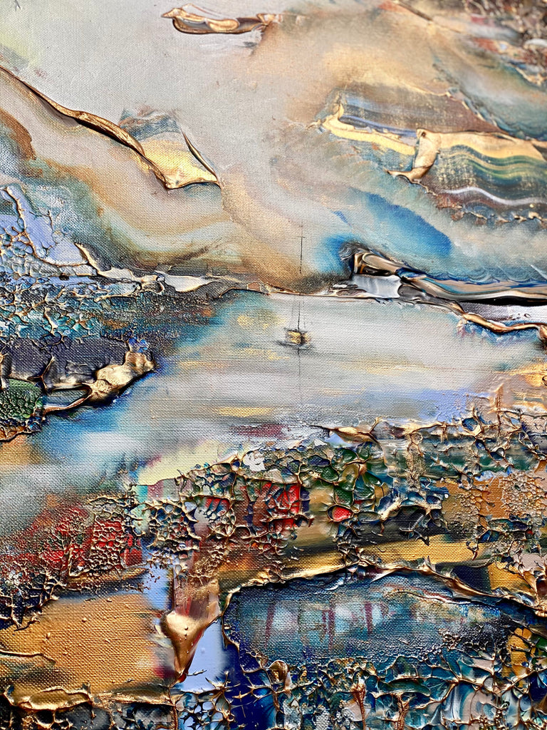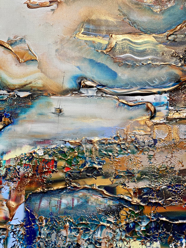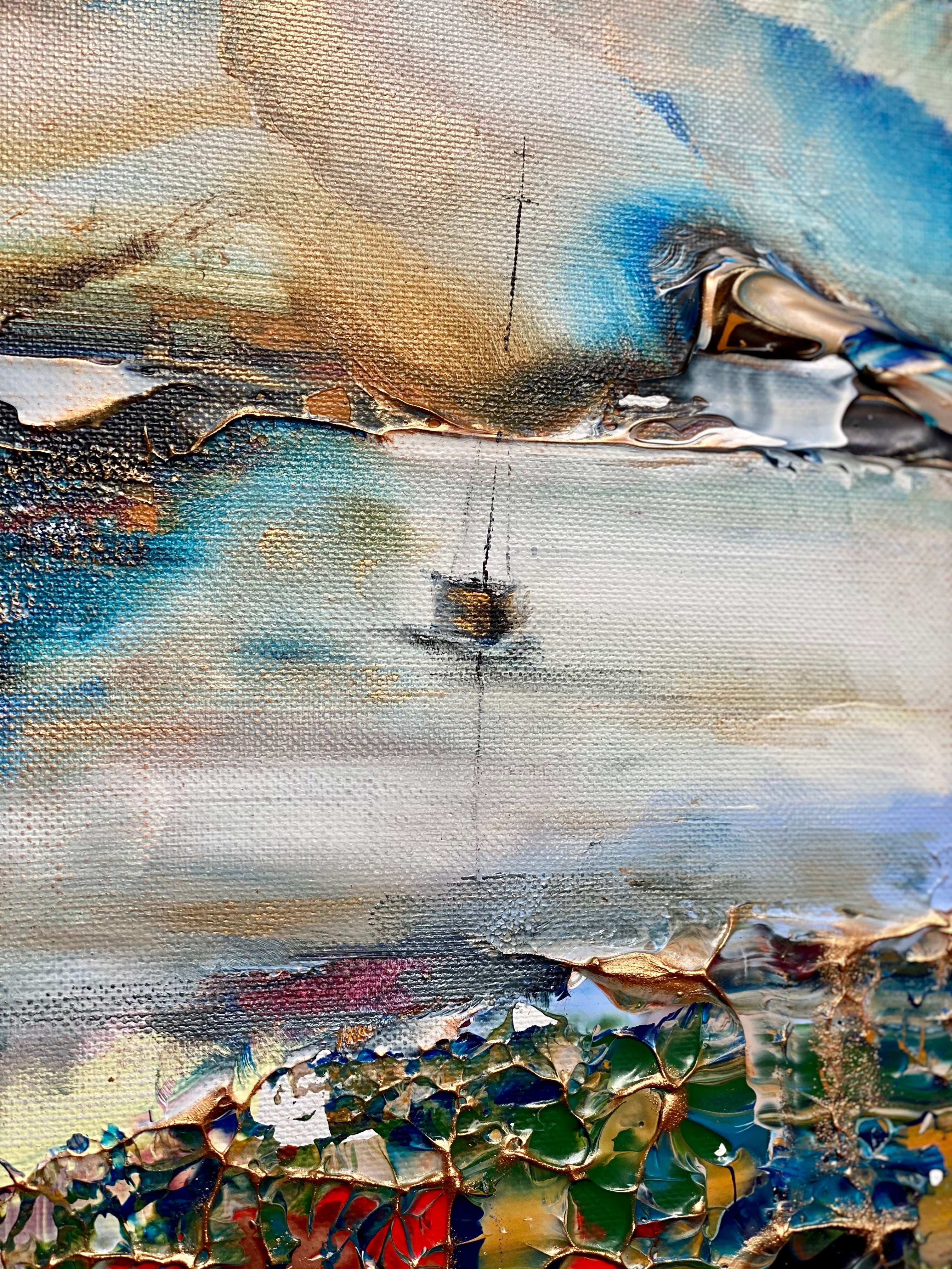 Inspiraatiolla kauniista Hasseluddenista Tukholmassa. Pelasi ja tutkittiin valolla, varjoilla ja heijastuksella tässä maalauksessa. Huomaa pieni purjevene keskellä.