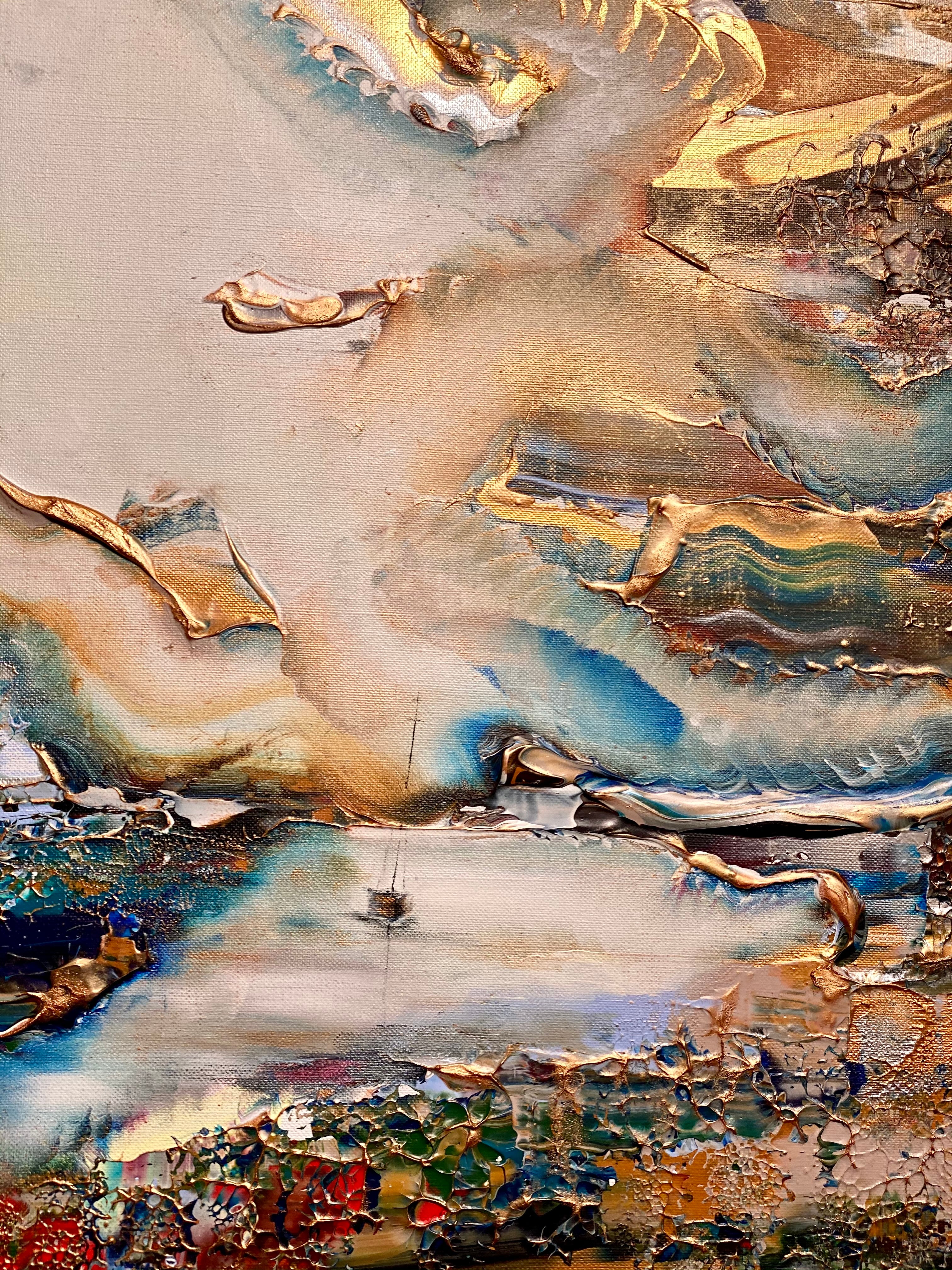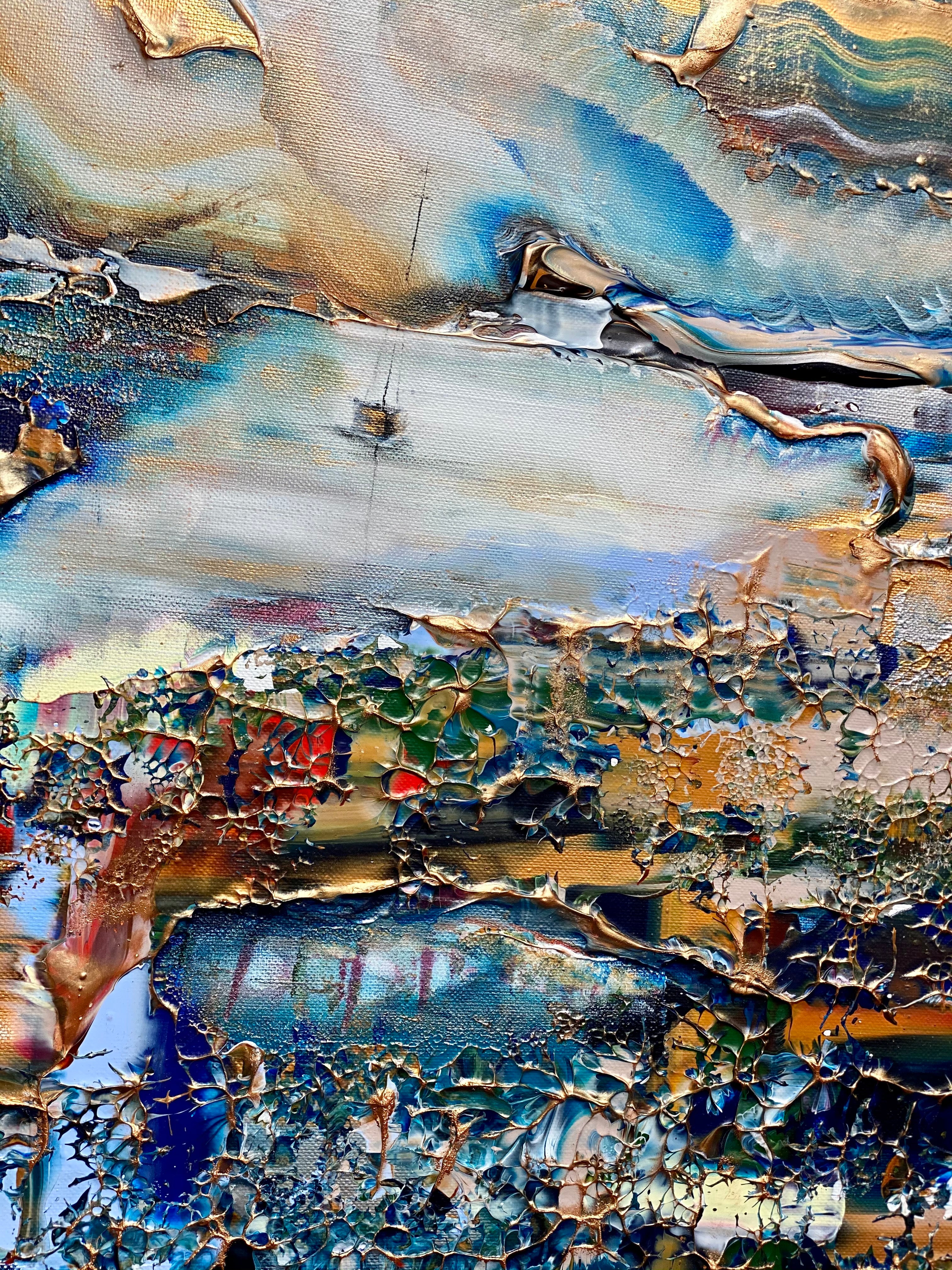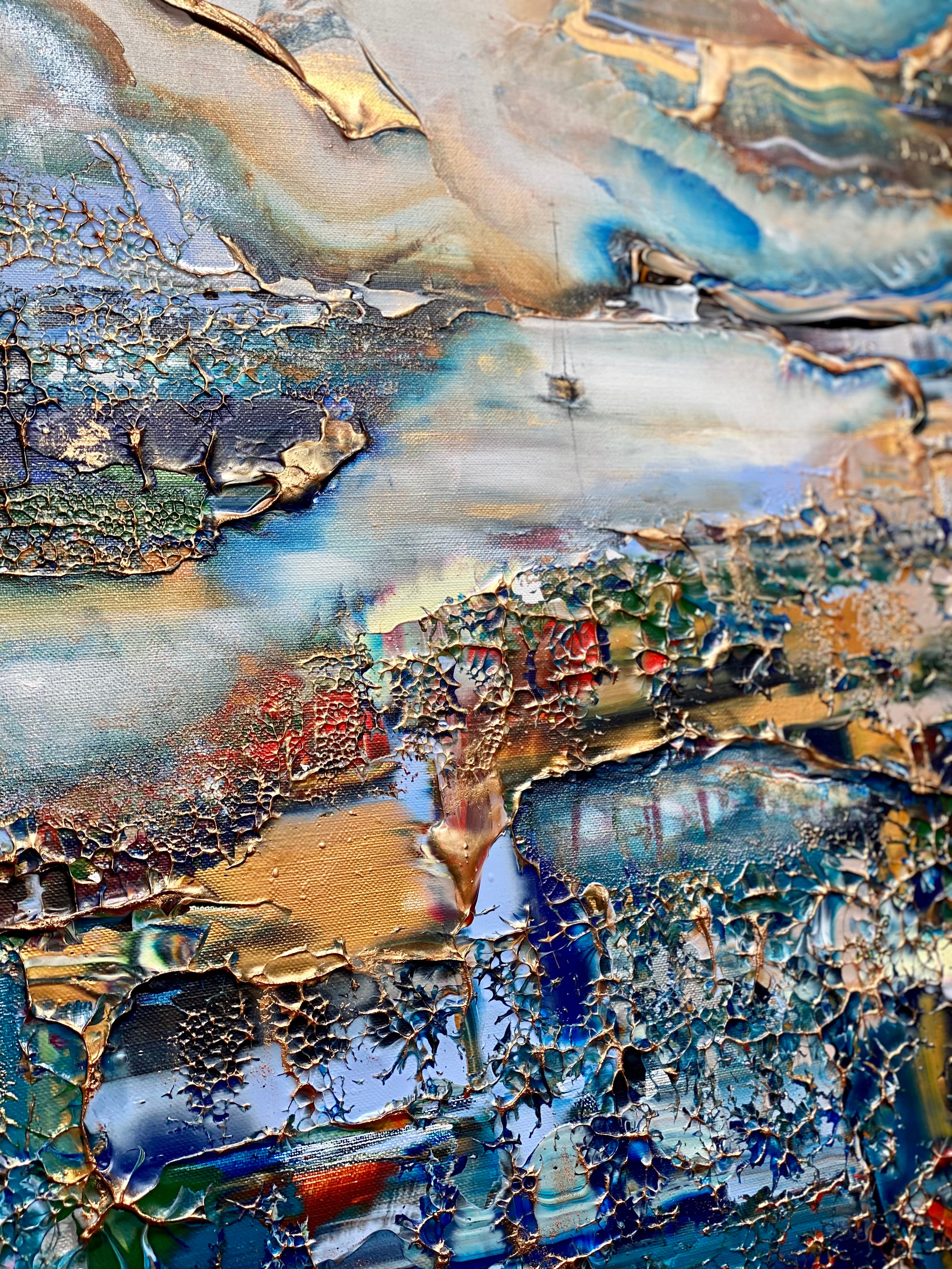 Inspiraatiolla kauniista Hasseluddenista Tukholmassa. Pelasi ja tutkittiin valolla, varjoilla ja heijastuksella tässä maalauksessa. Huomaa pieni purjevene keskellä.