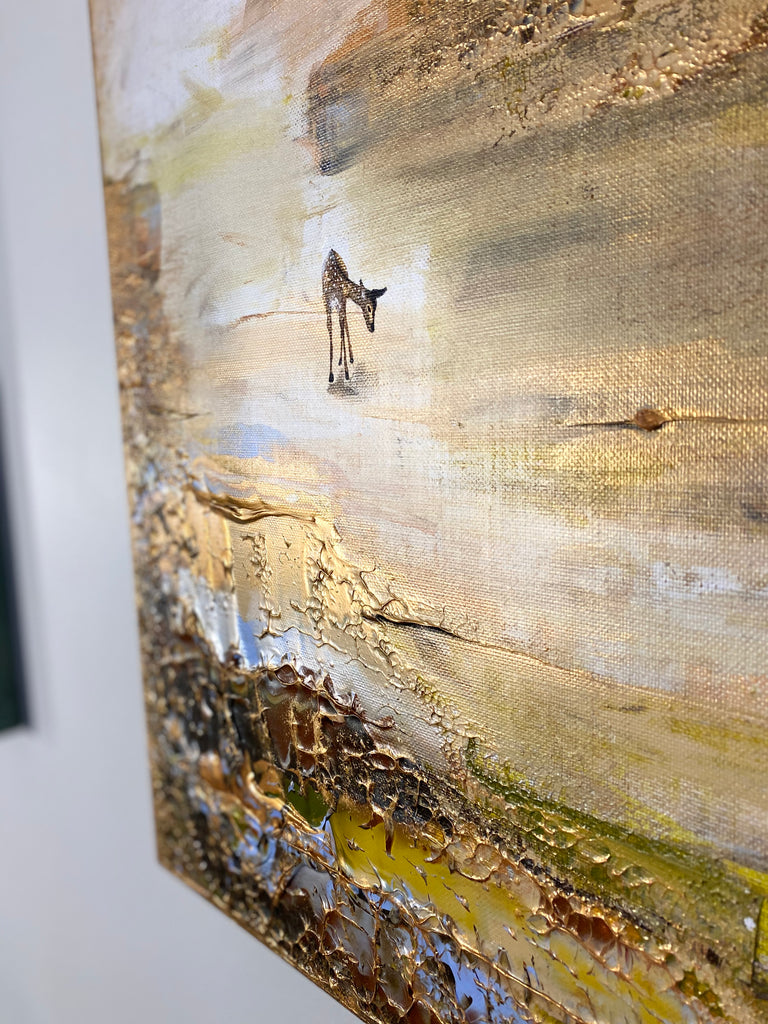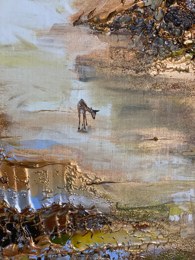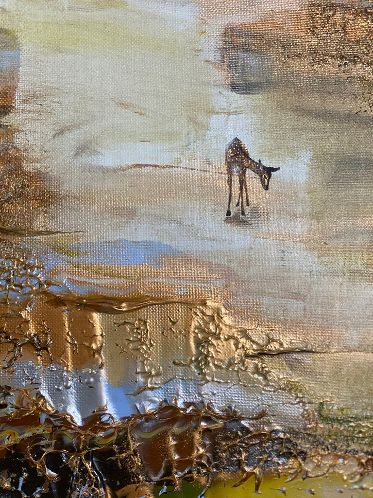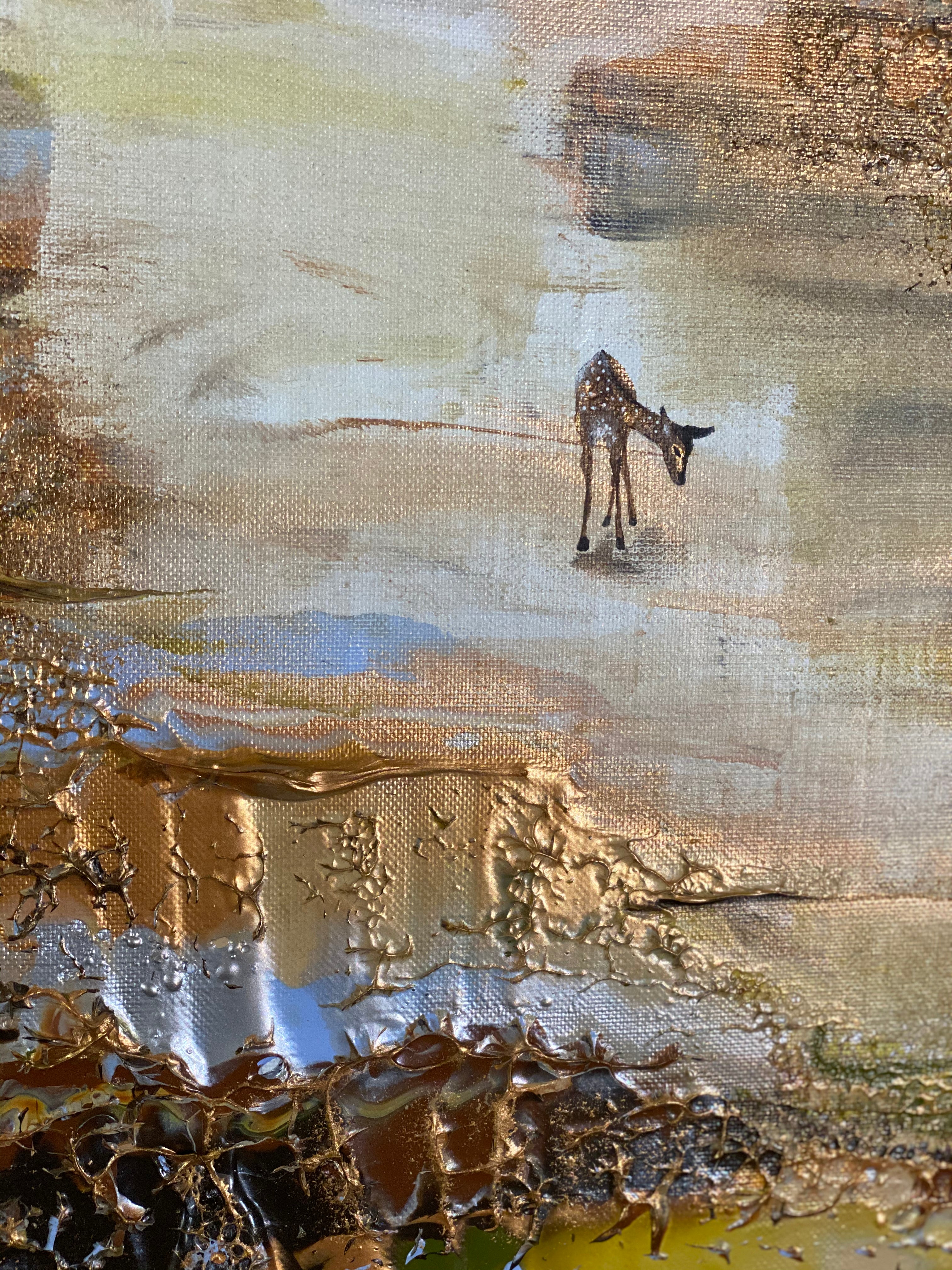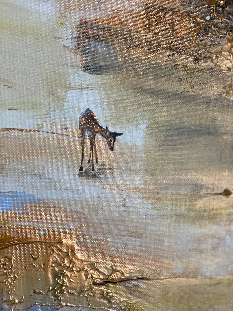 Bambi Ladugårdsgärdellä lämmin syksypäivä. Koska olin pieni, olen pelannut ja harjoittanut Gärden kauniiden kenttien yli. Maalaus on maalattu paljon kultaa ja ruskehtavia sävyjä, mikä antaa maalaukselle lämpimän hehkua.
