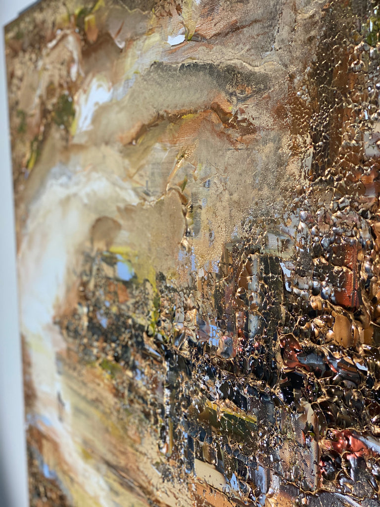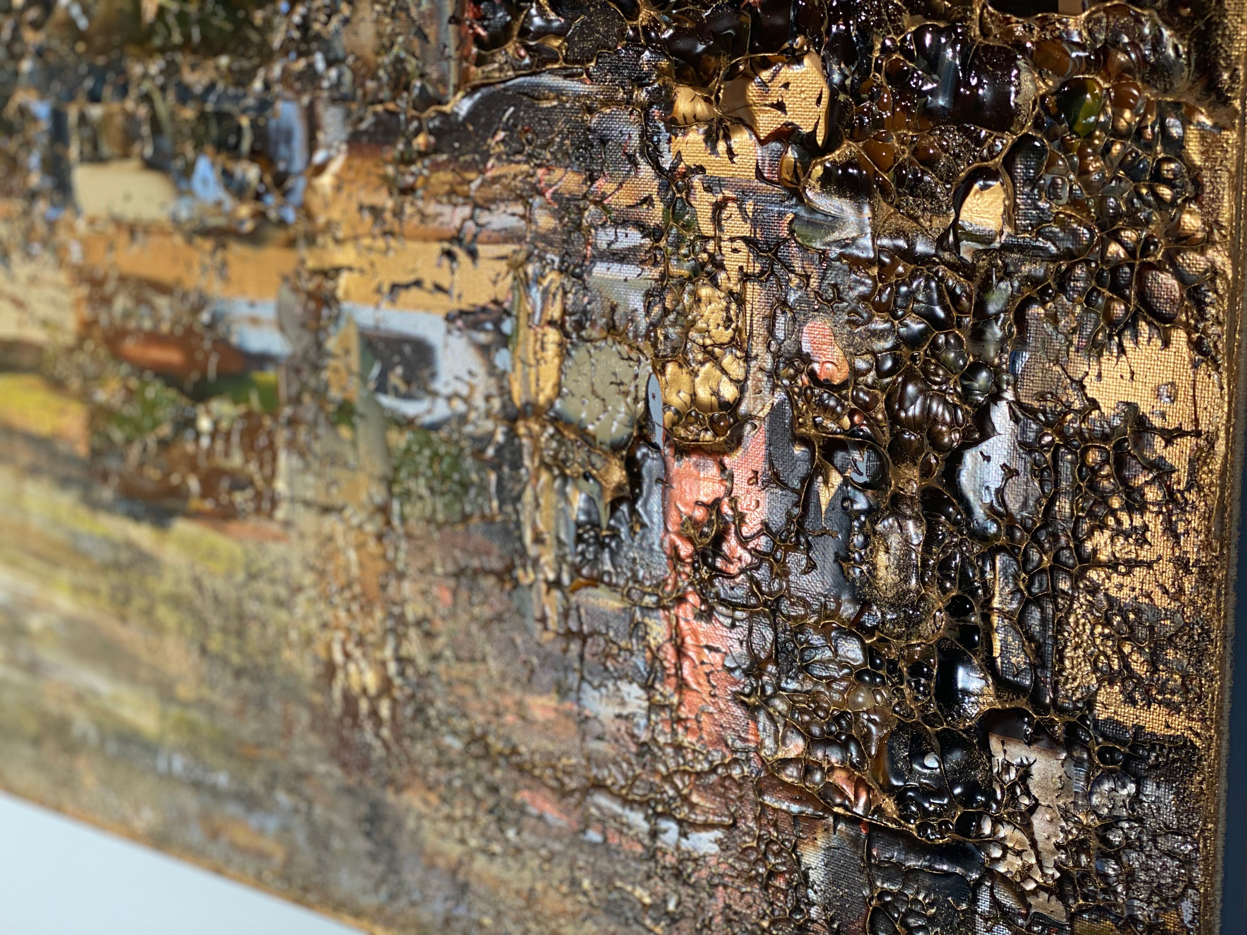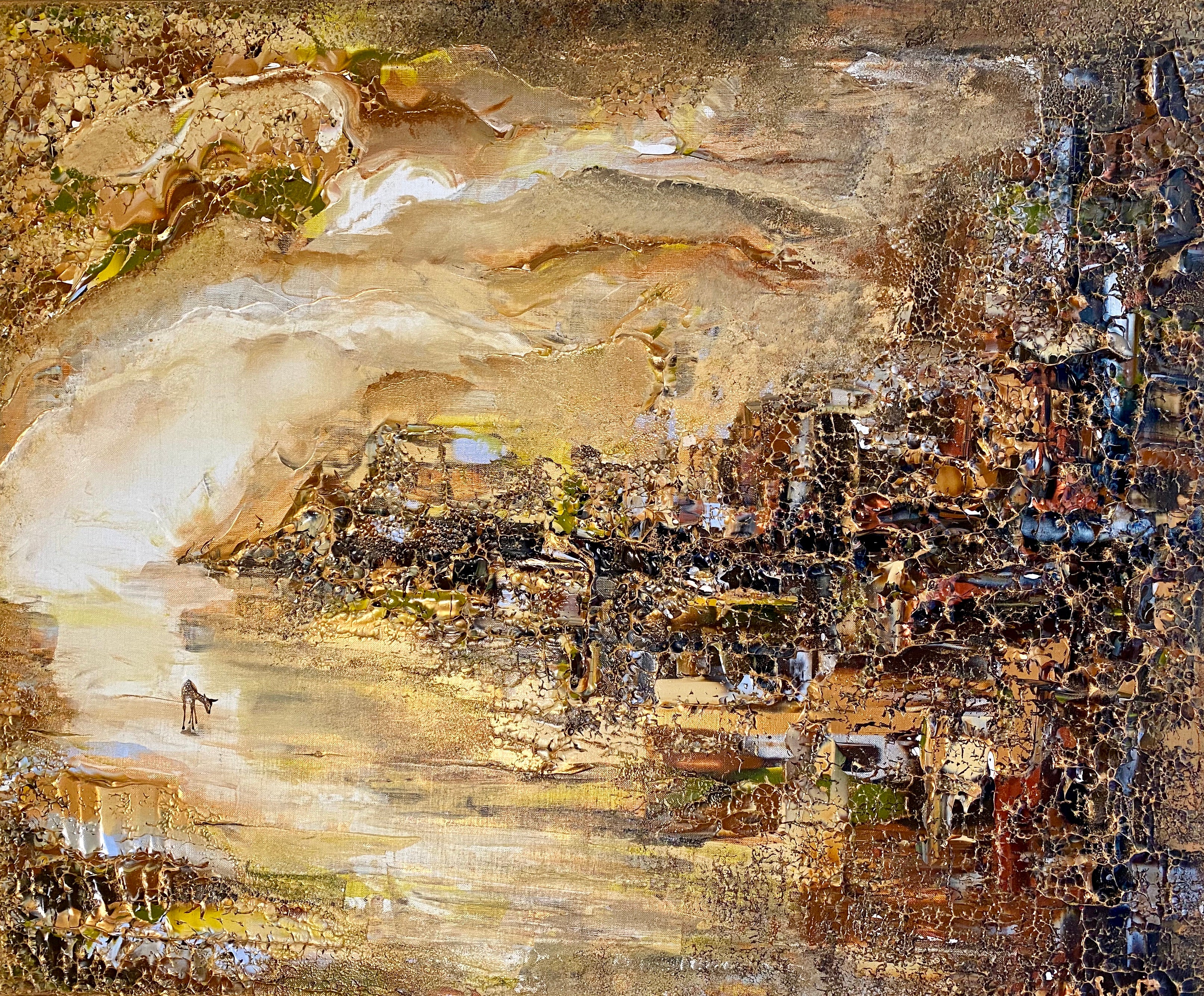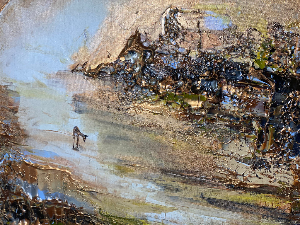 Bambi Ladugårdsgärdellä lämmin syksypäivä. Koska olin pieni, olen pelannut ja harjoittanut Gärden kauniiden kenttien yli. Maalaus on maalattu paljon kultaa ja ruskehtavia sävyjä, mikä antaa maalaukselle lämpimän hehkua.