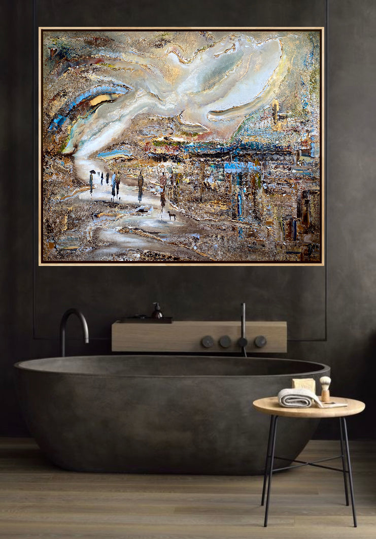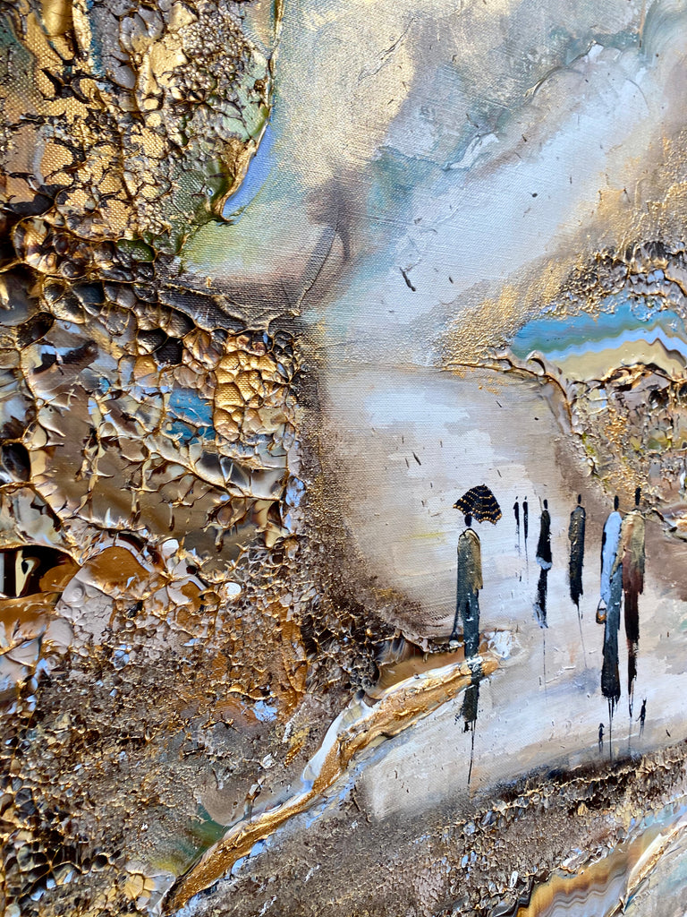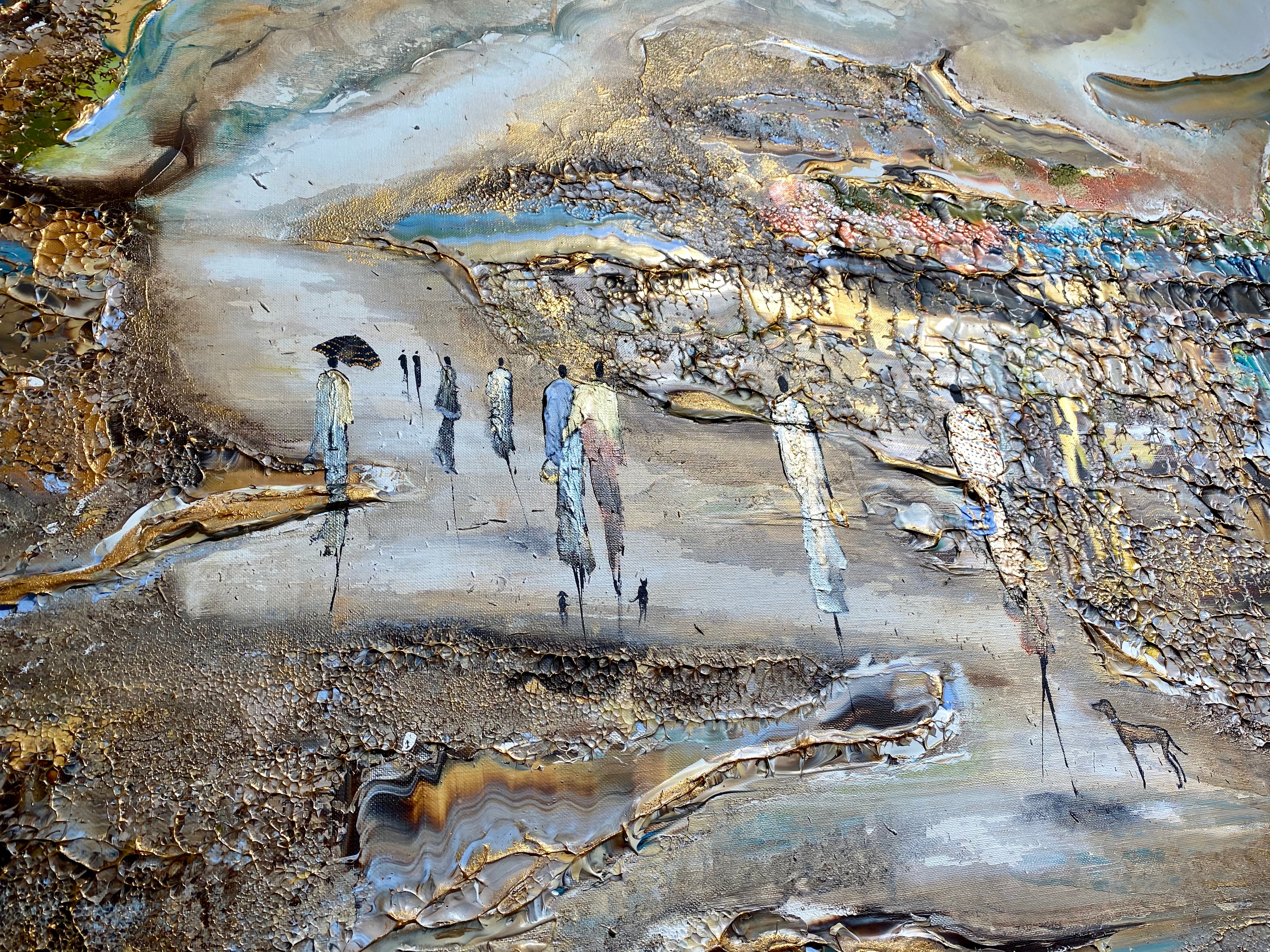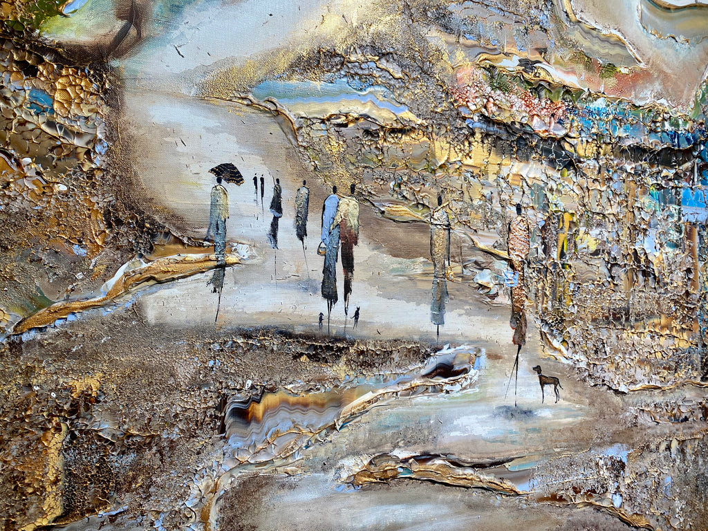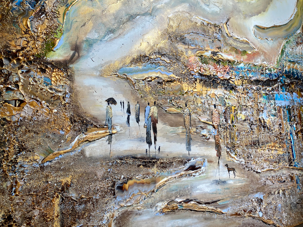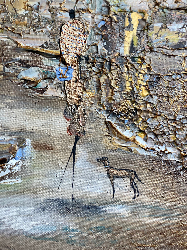 Royal Walksin innoittamana ranta -alueella lähellä kuninkaallista palatsia. Tätä maalausta varten olen keskittynyt hahmojen luomiseen hienolla ja tyylikkäästi, mikä antaa heille niin paljon luonnetta. Olen myös kokeillut valonlähdettä, joka tulee maalauksen eri osista. Viimeiseksi, tämä on täysin uusi koko, joka on uusi suosikkini- sekoitus tavallisten suurten ja valtavien välillä.