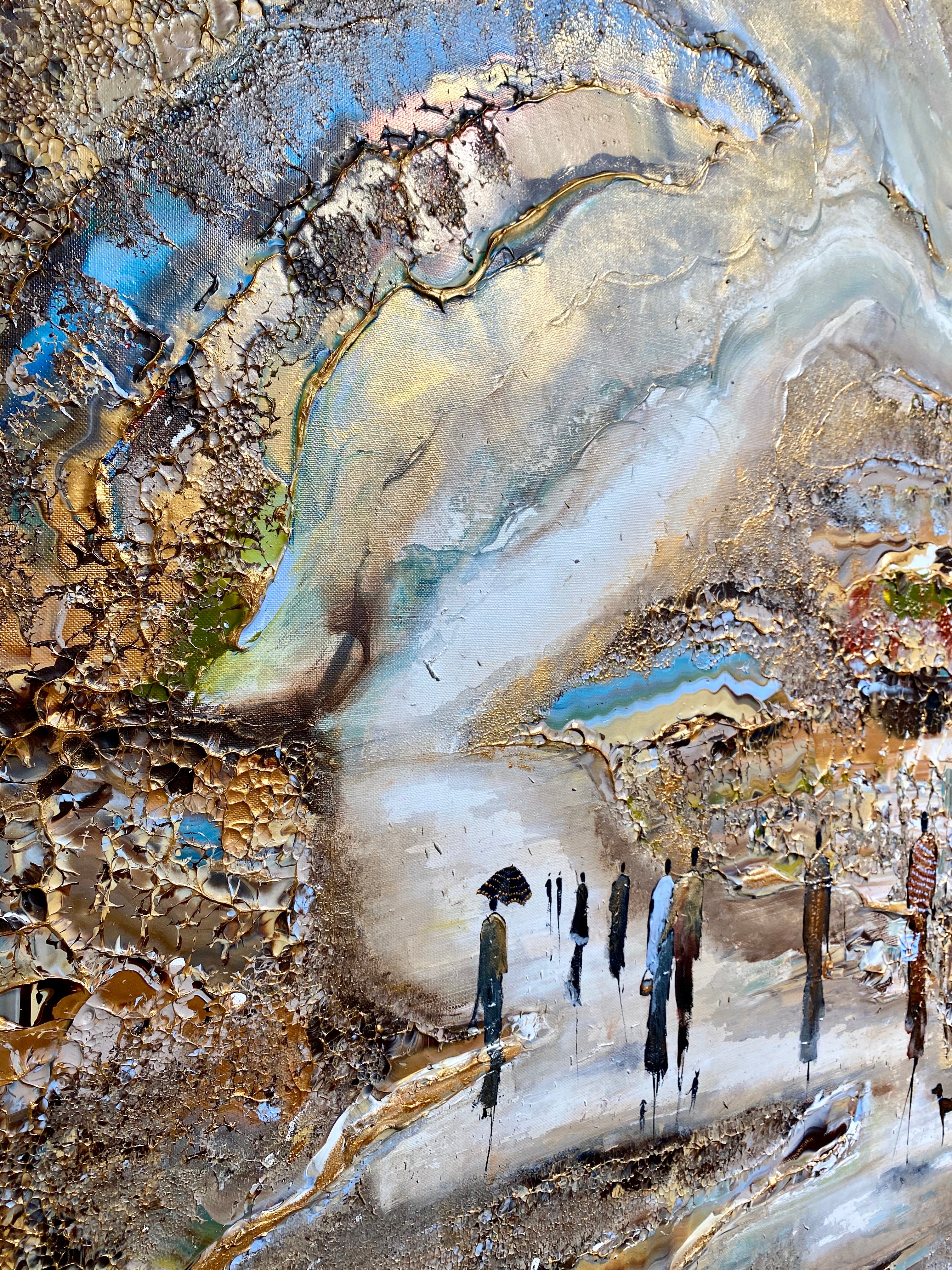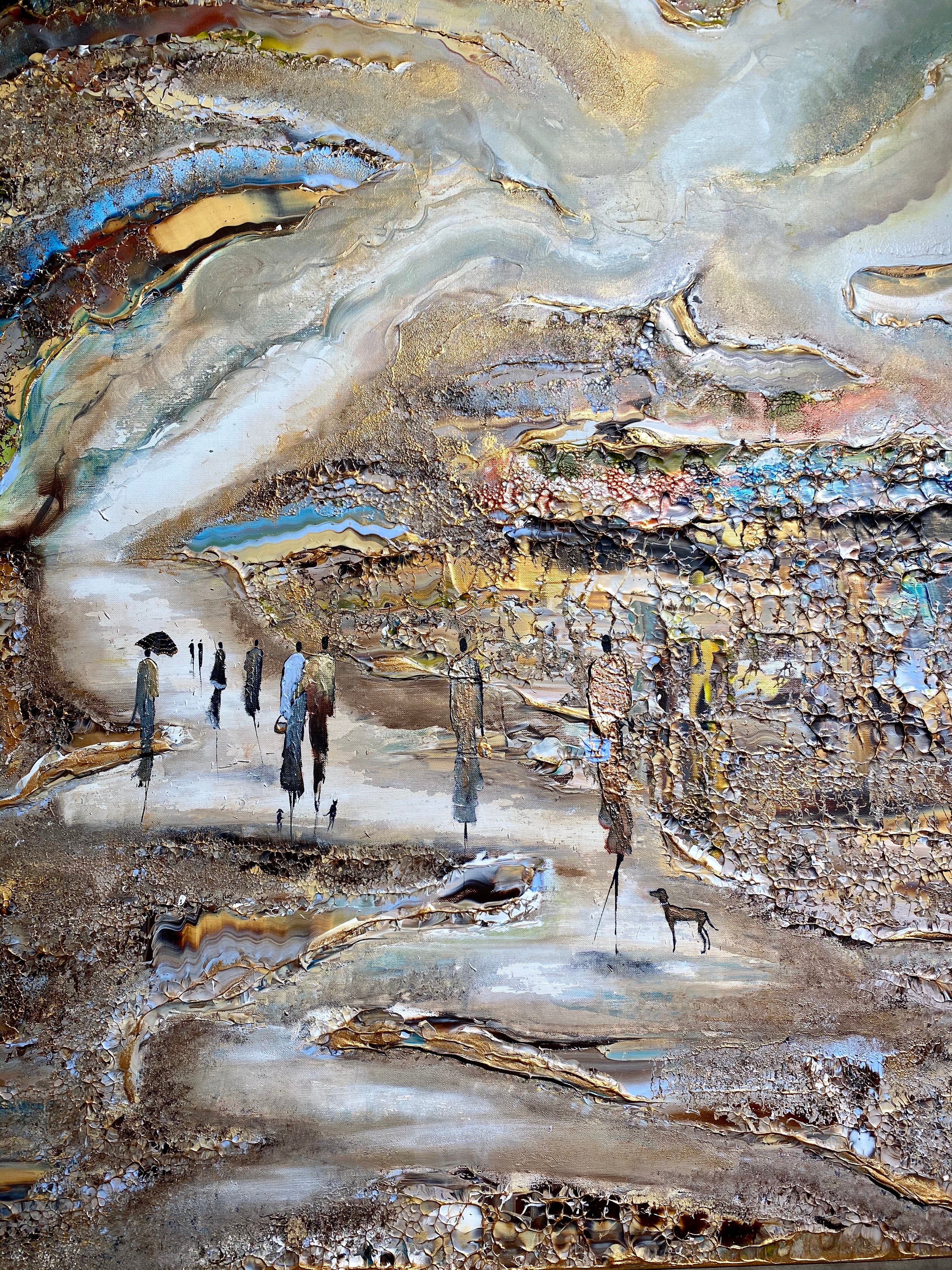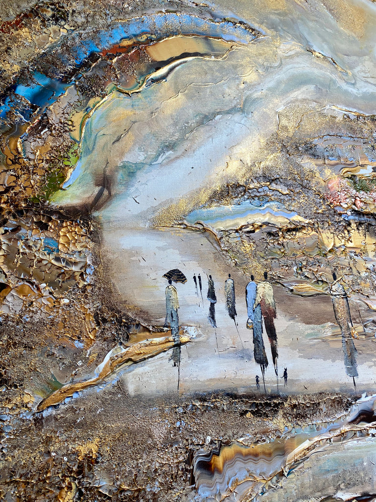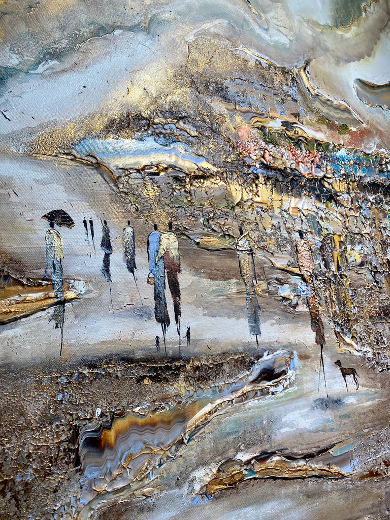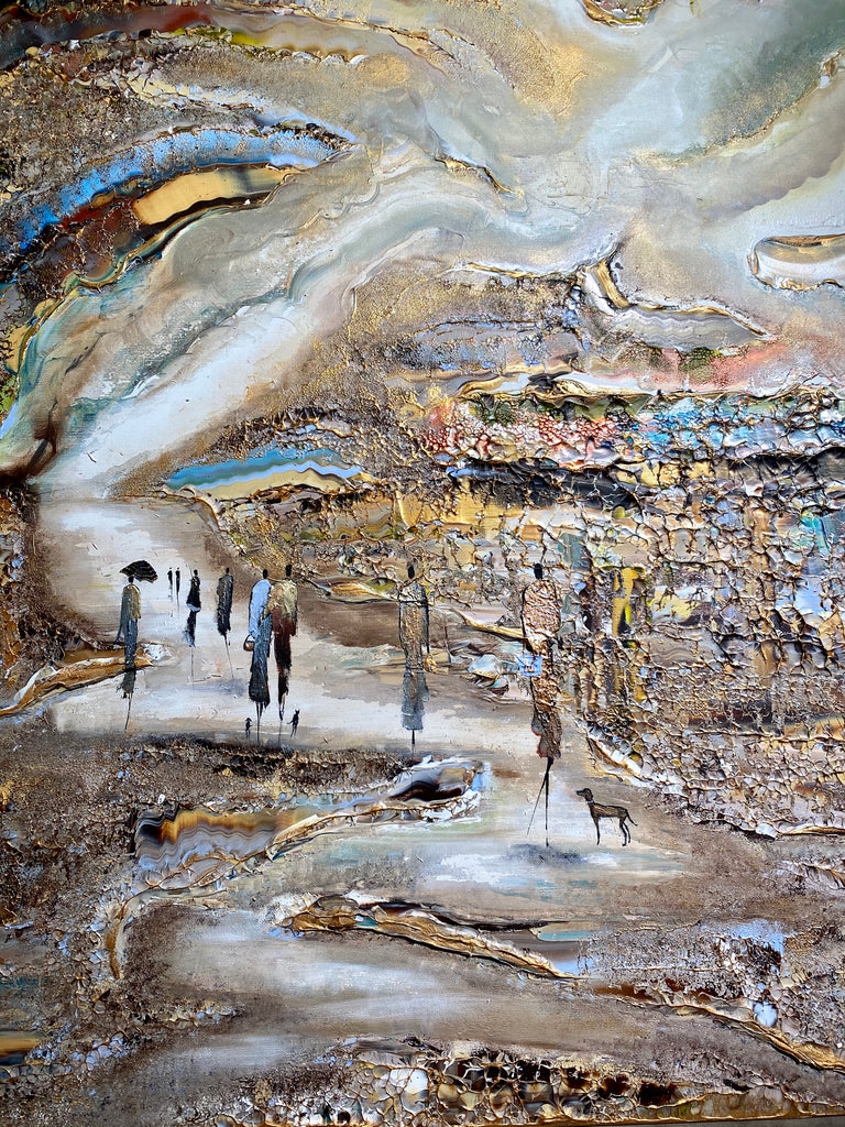 Royal Walksin innoittamana ranta -alueella lähellä kuninkaallista palatsia. Tätä maalausta varten olen keskittynyt hahmojen luomiseen hienolla ja tyylikkäästi, mikä antaa heille niin paljon luonnetta. Olen myös kokeillut valonlähdettä, joka tulee maalauksen eri osista. Viimeiseksi, tämä on täysin uusi koko, joka on uusi suosikkini- sekoitus tavallisten suurten ja valtavien välillä.