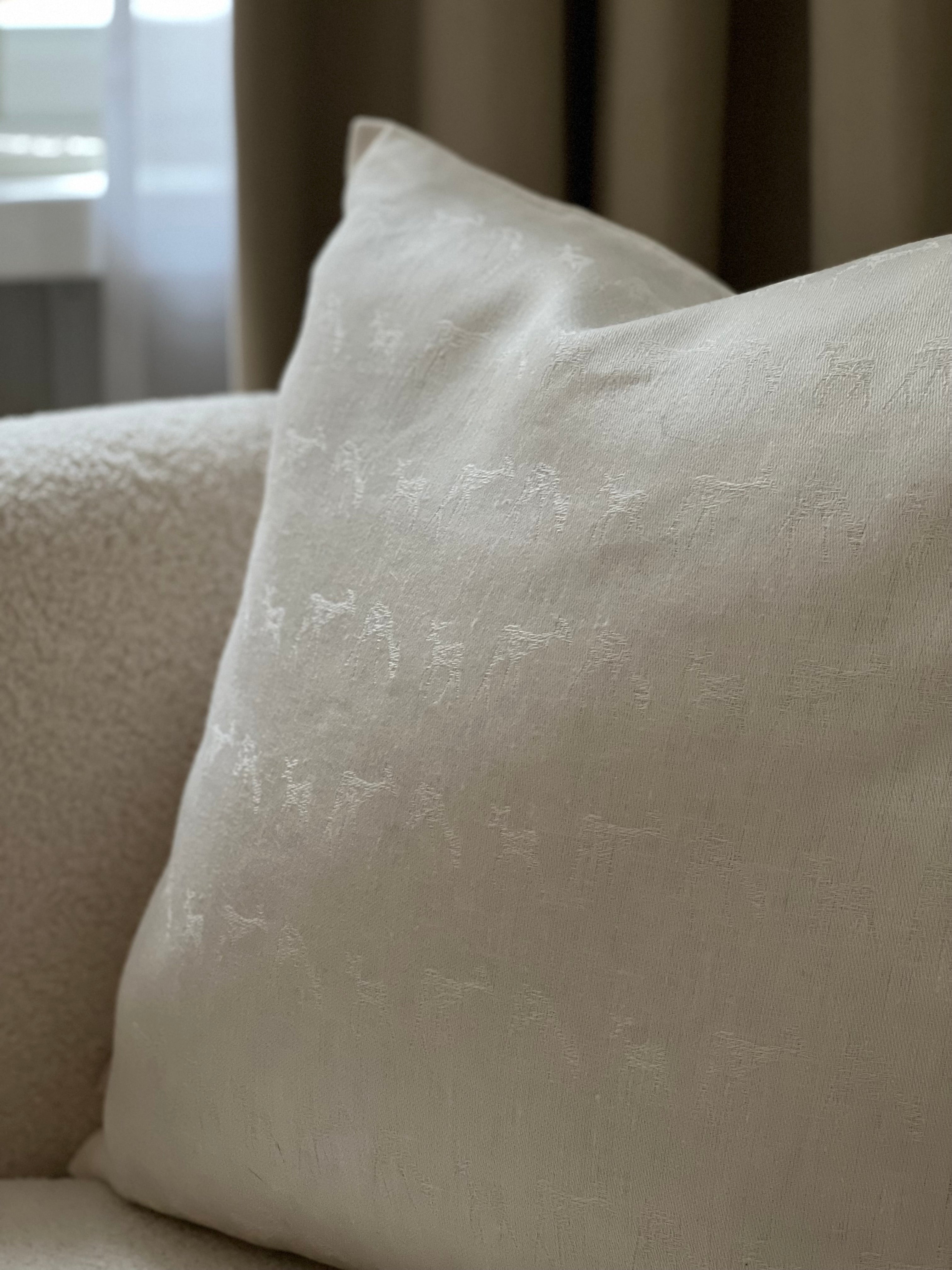 -Ma vision avec cette collection est de créer un oreiller de longue durée et intemporel de la plus haute qualité. Un détail intérieur unique qui enrichira n'importe quelle pièce ou meuble pour les années à venir. J'aime particulièrement la façon dont la lumière se reflète dans les tissus en fonction de l'heure de la journée, ce qui donne vie aux cerfs et scintille.