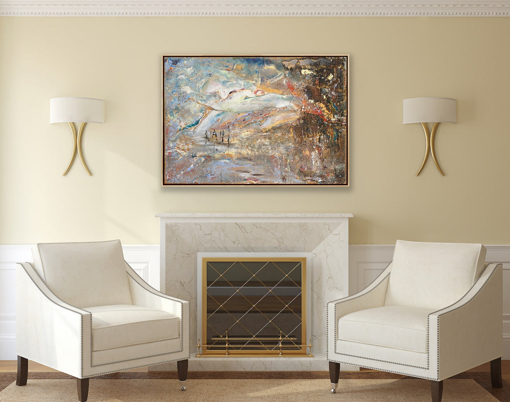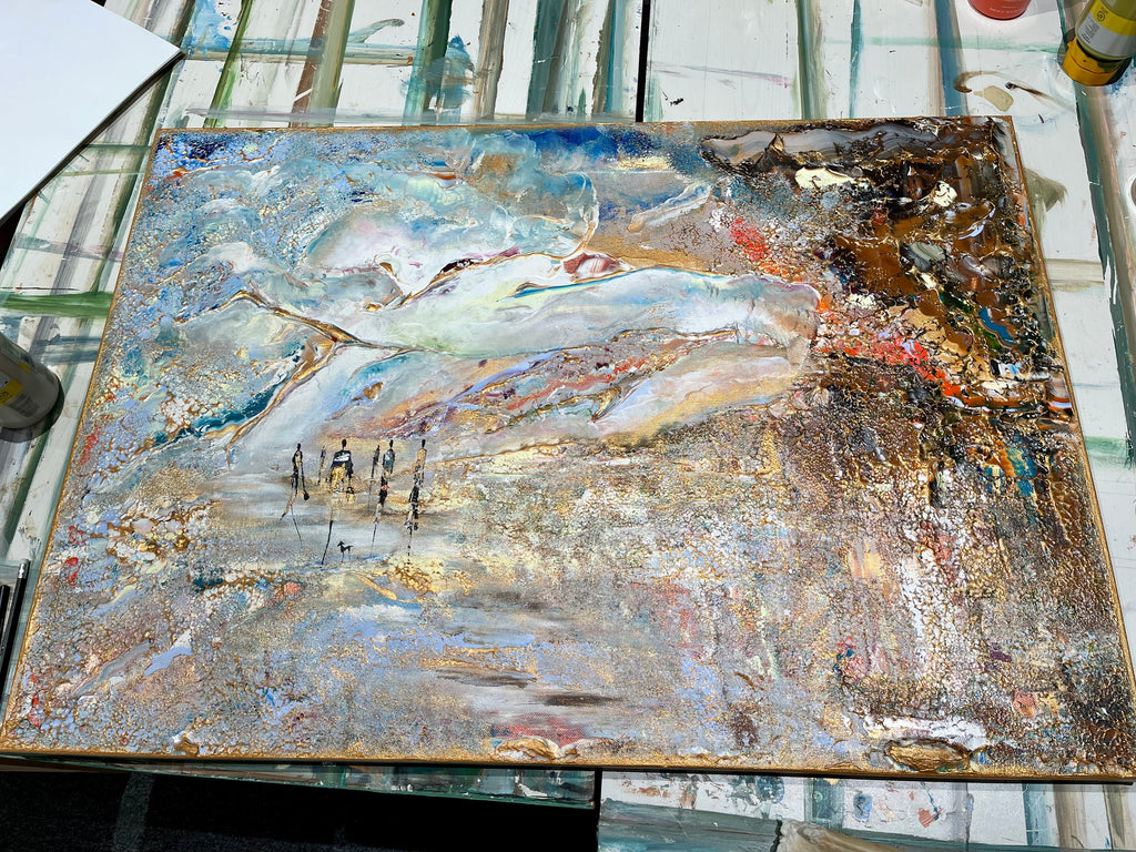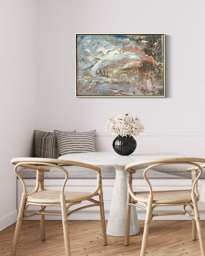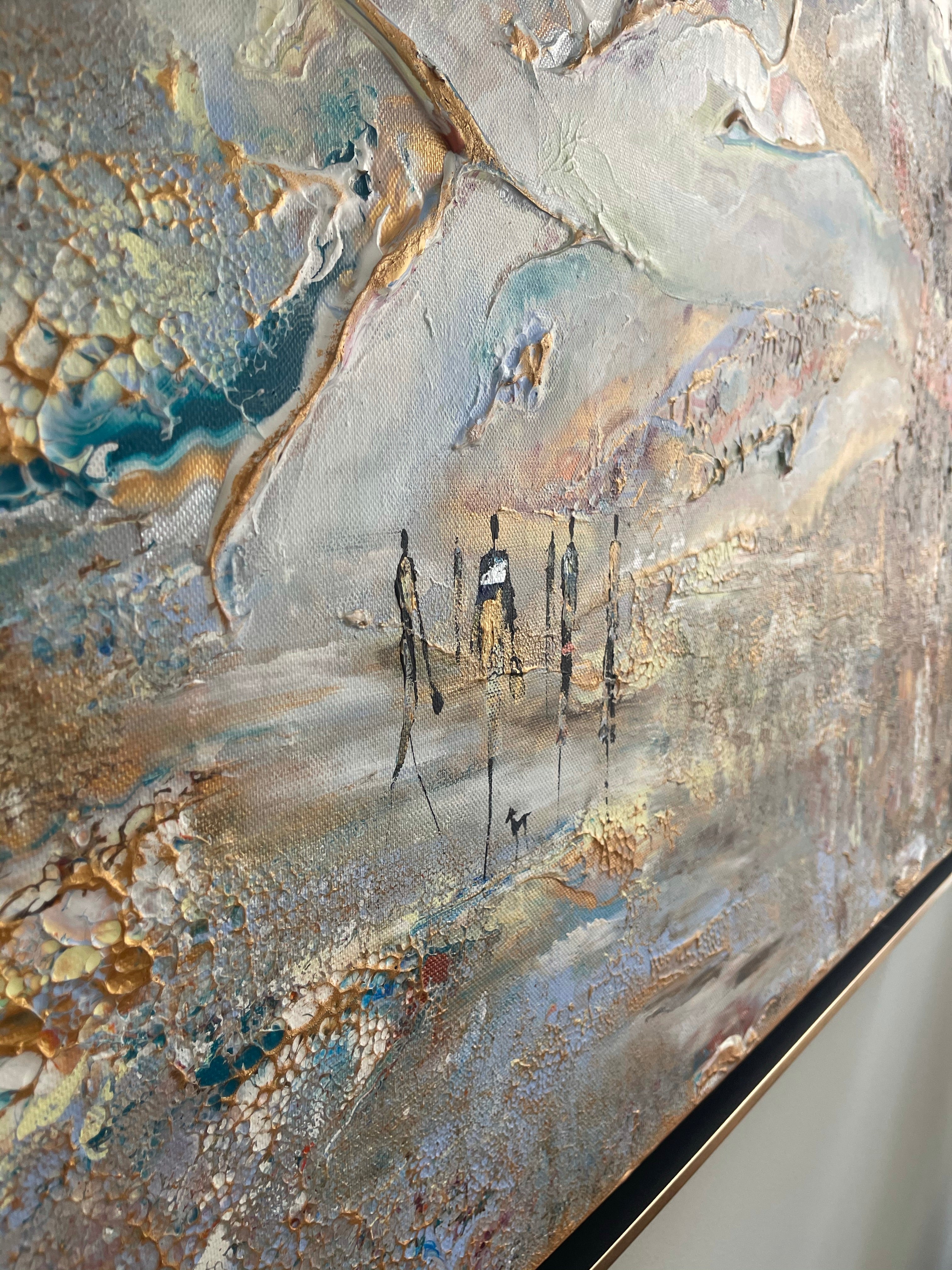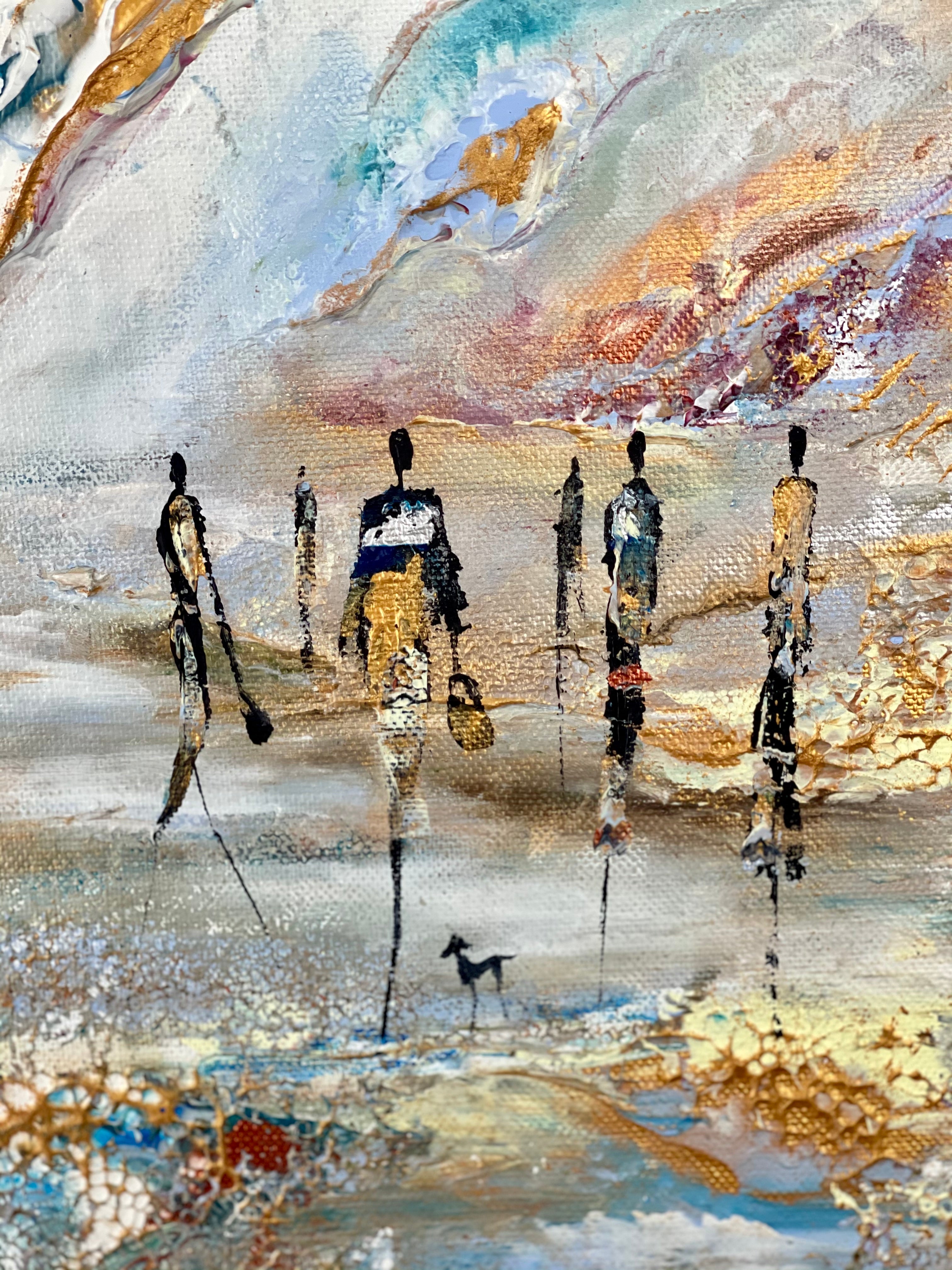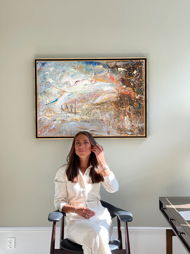 Inoltre, Junibacken, situato su Djurgården, è un posto incantevole in cui di solito vado a trovare un po 'di ispirazione, lasciando che i miei sogni si scatenino. La composizione del dipinto e i gesti, passeggiando su un campo o su una strada dovrebbe simboleggiare proprio questo.