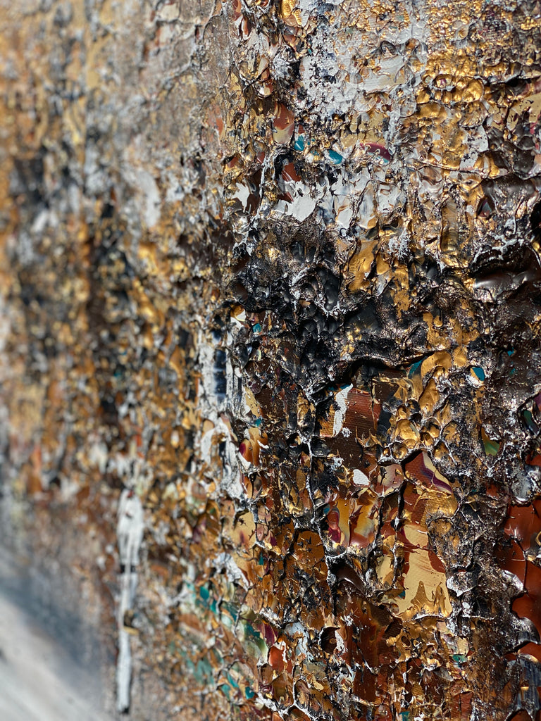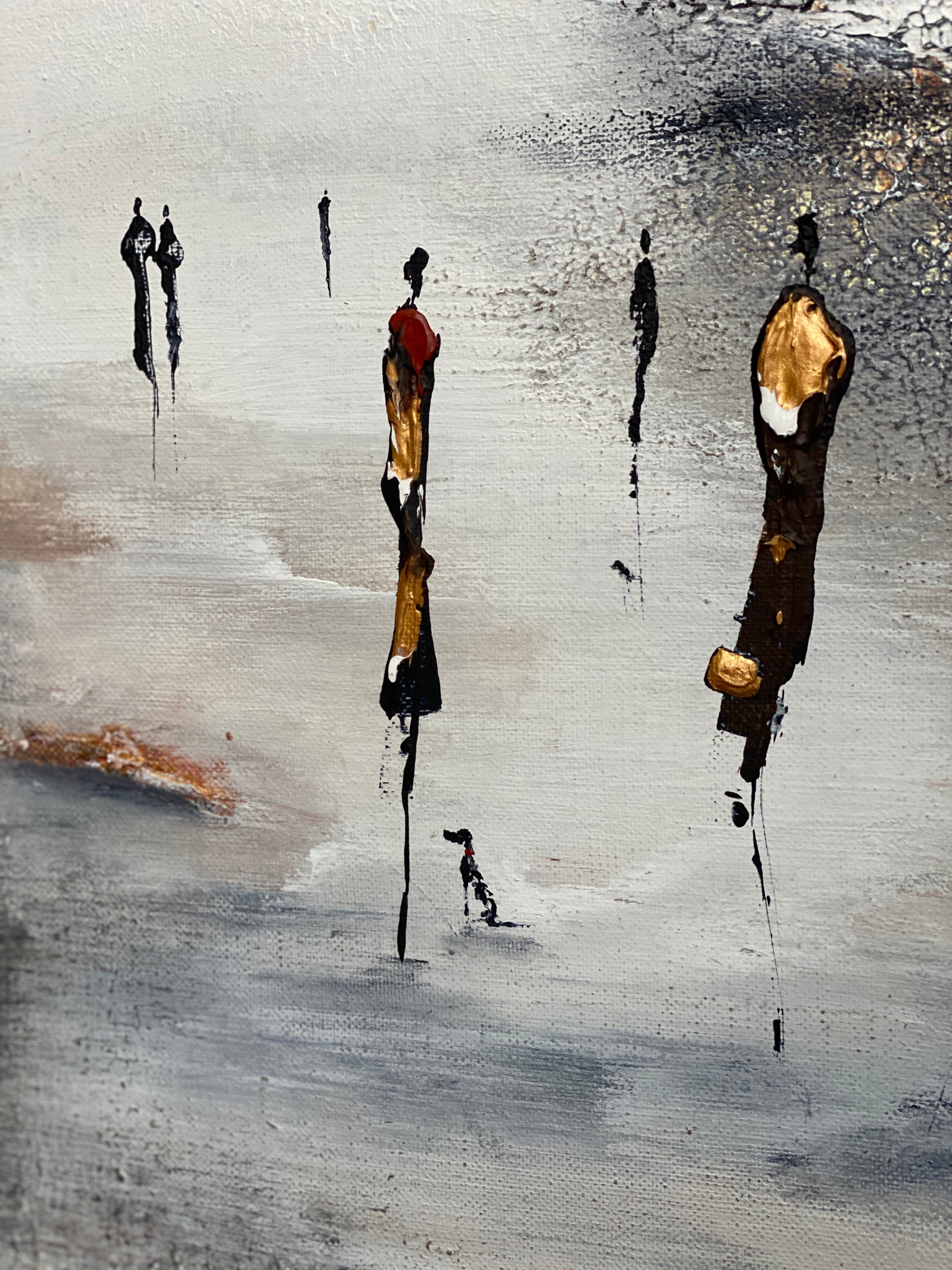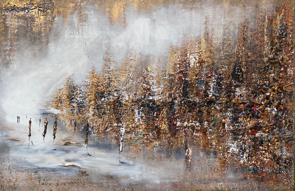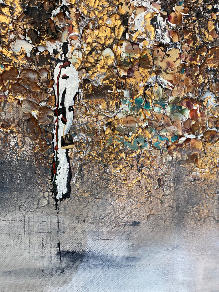 La bella "Strömkajen" vicino al Grand Hotel di Stoccolma è uno dei miei preferiti. Adoro le combinazioni di colori di argento oro e rame che insieme crea una lucentezza calda. Molti molti strati uno sopra l'altro creano una nuova dimensione del dipinto che lo rende ruvido e robusto. All'interno di questo dipinto ho lavorato molto con i piccoli dettagli, come la borsa Louis Vuitton e il cappotto Gucci che dà alla pittura una storia.