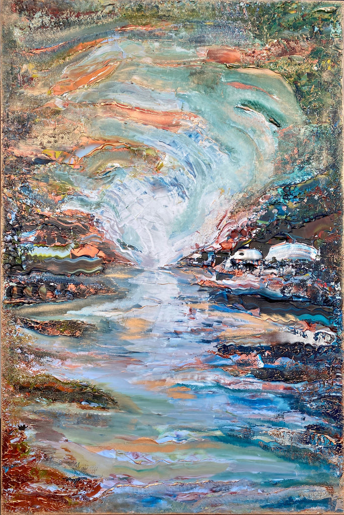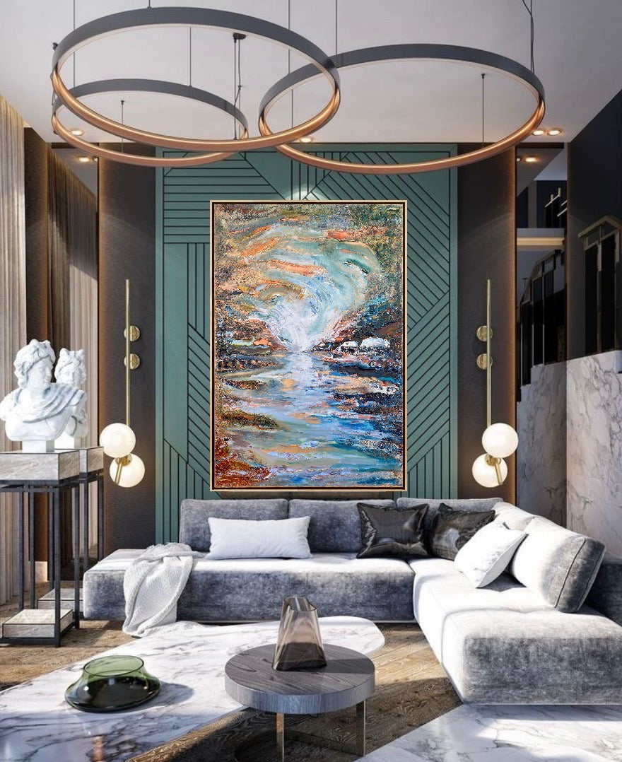I dette maleriet har jeg jobbet mye med lyset og refleksjonen i vannet for å skape en harmonisk stemning.