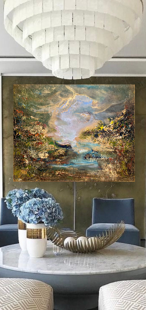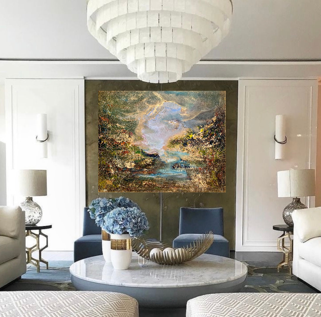 Jeg har virkelig prøvd å skape et syn på et vakkert uberørt landskap av elver og grøntområder siden det er mitt favorittsted som får meg til å føle meg rolig og glad.