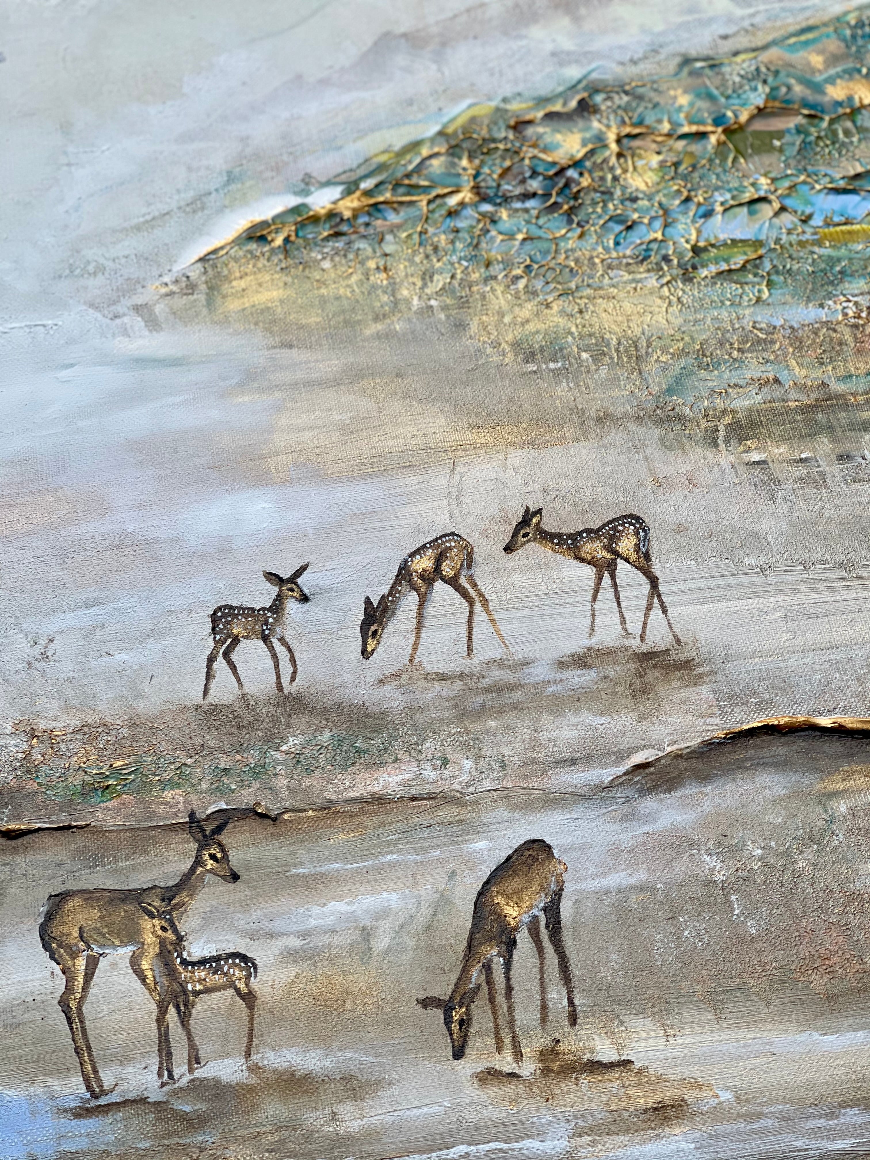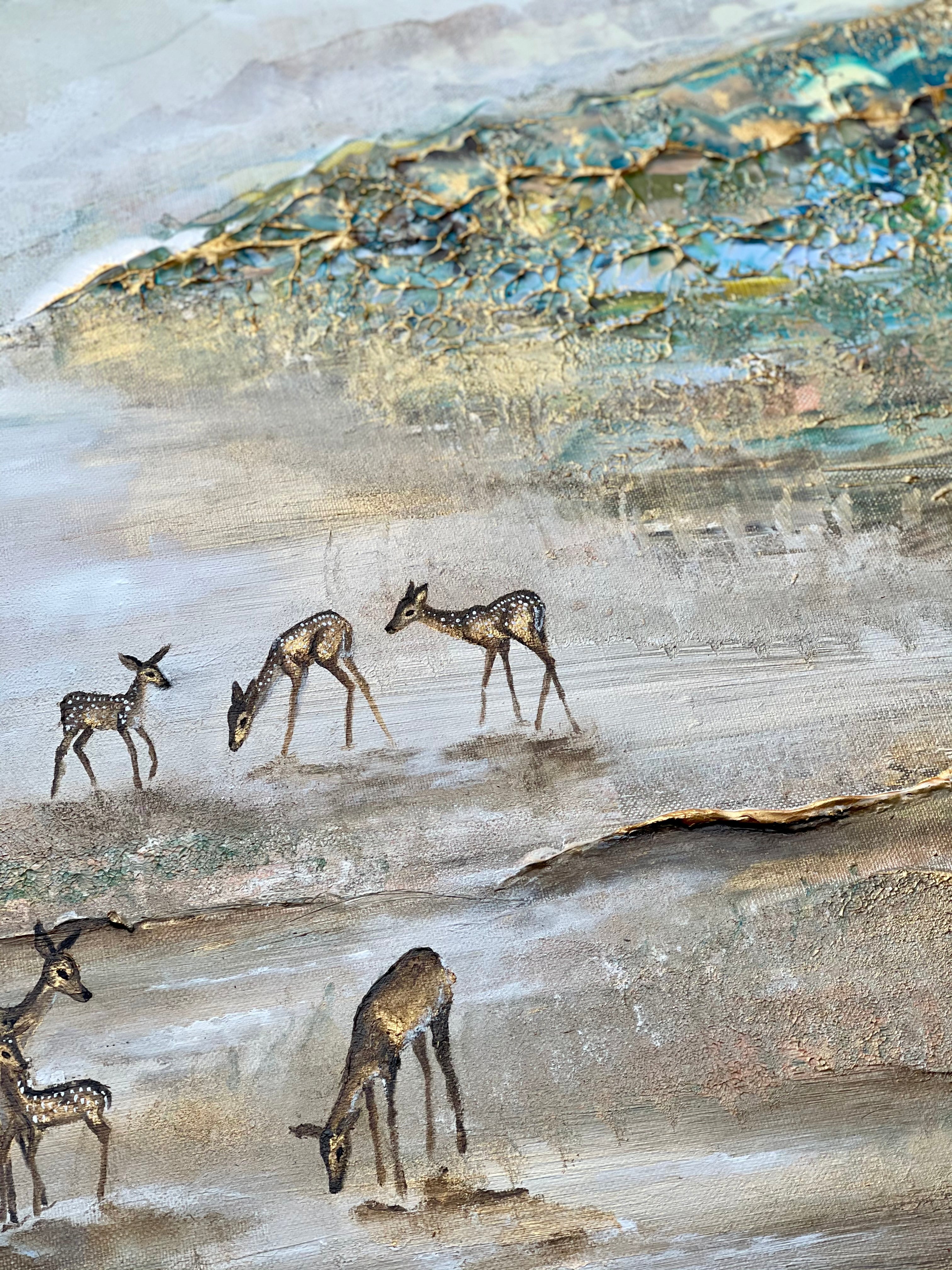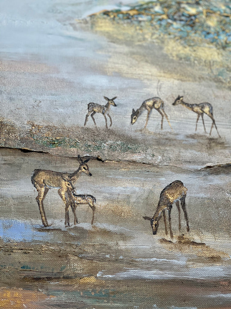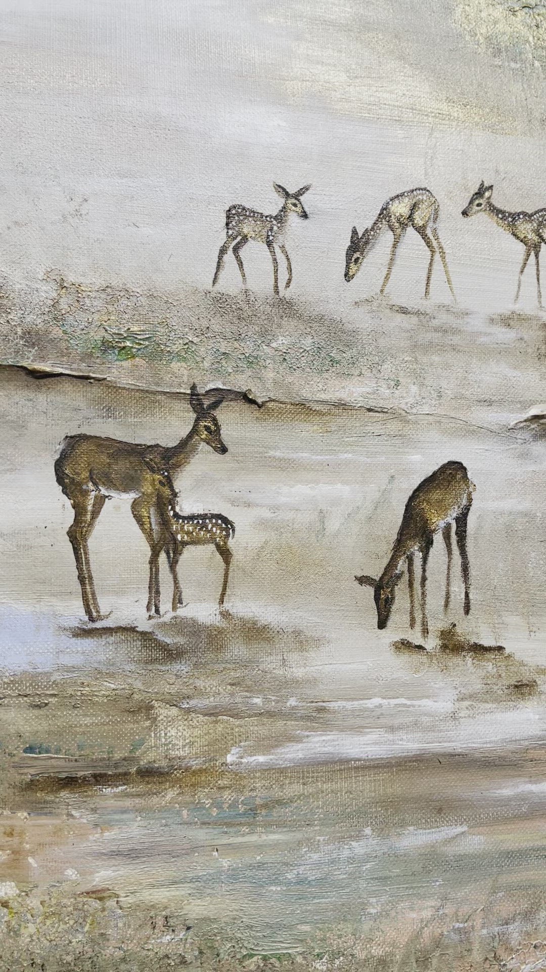 Inspirert av det vakre miljøet på Solhaga, Åkersberga. Det er noe spesielt med hjort og deres ro. Jeg elsker å male dem og synes de bringer så mye harmoni til maleriene mine. Hva tror du?🦌