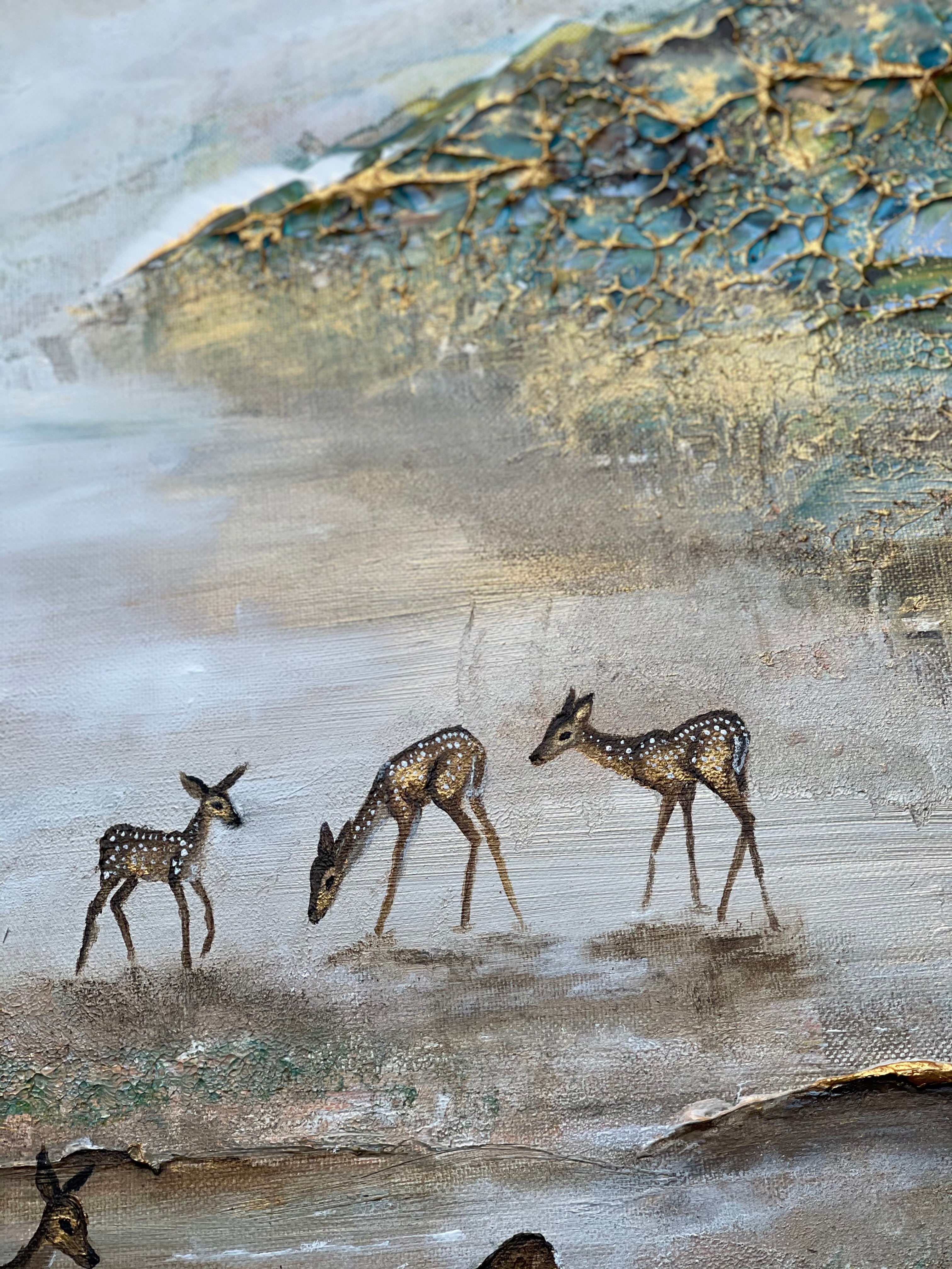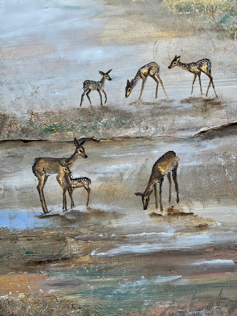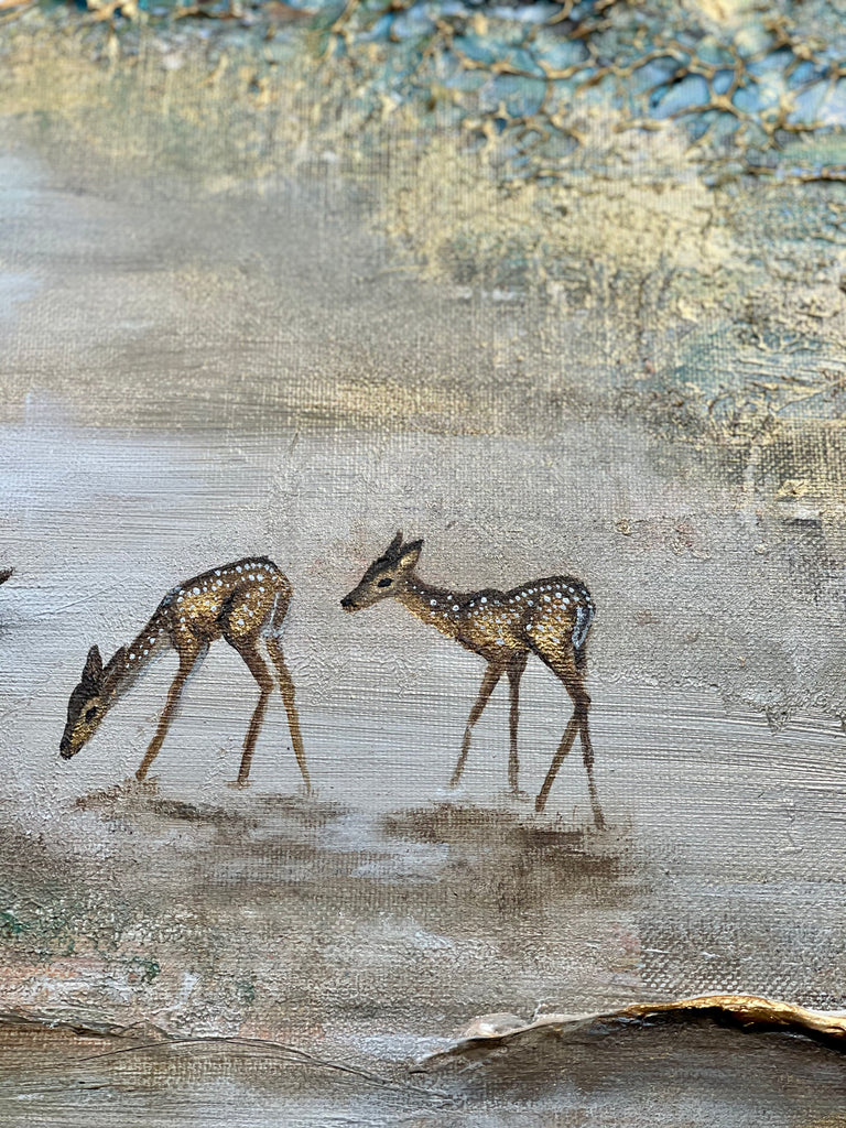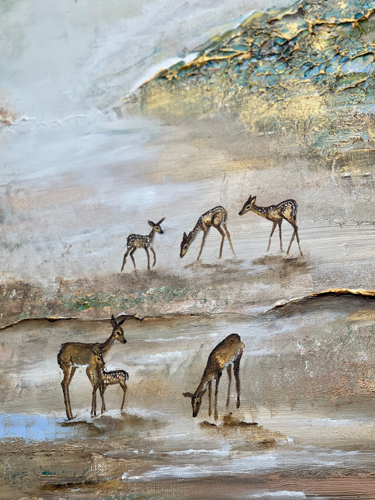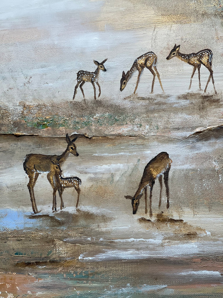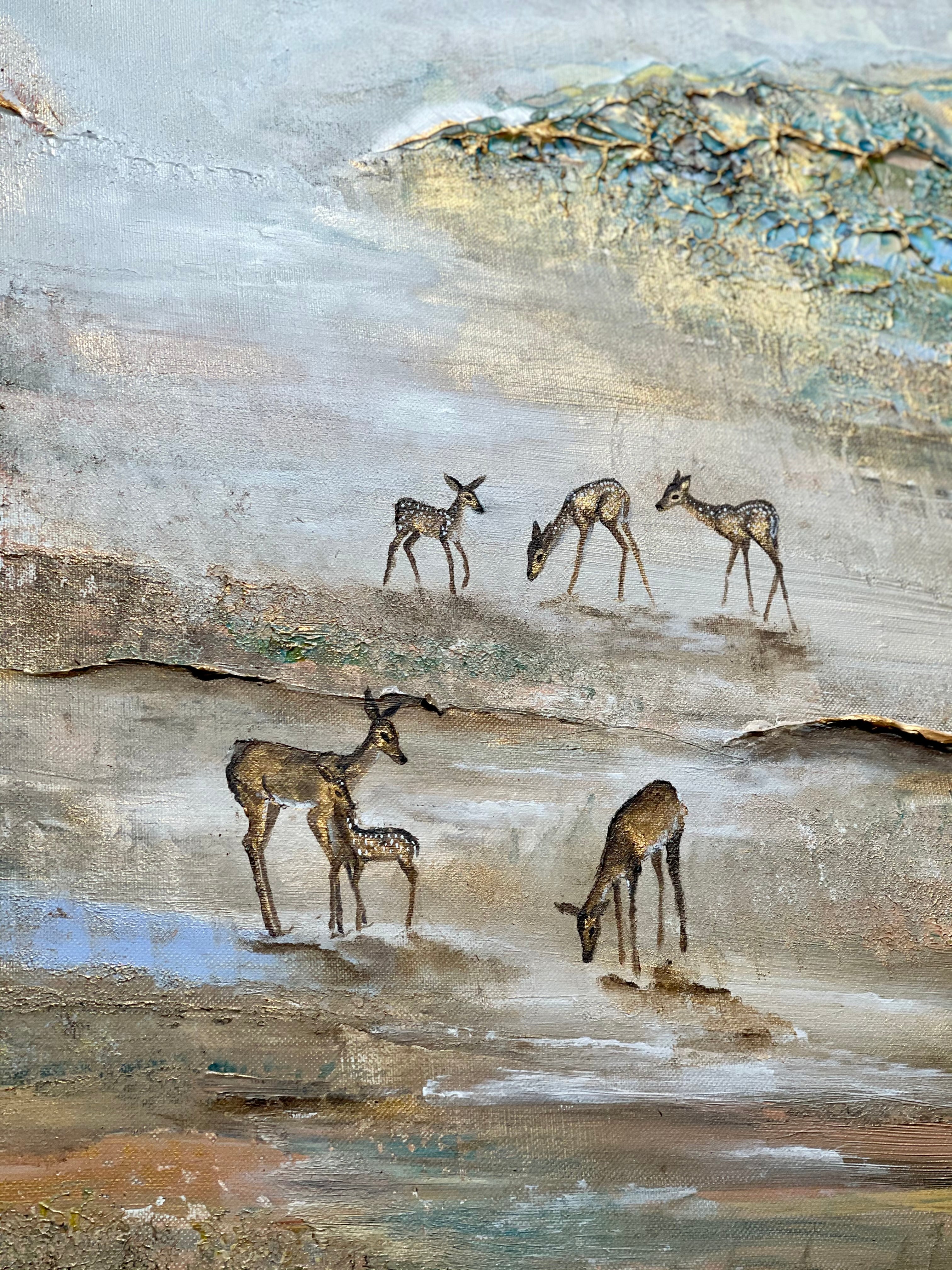 Inspirert av det vakre miljøet på Solhaga, Åkersberga. Det er noe spesielt med hjort og deres ro. Jeg elsker å male dem og synes de bringer så mye harmoni til maleriene mine. Hva tror du?🦌