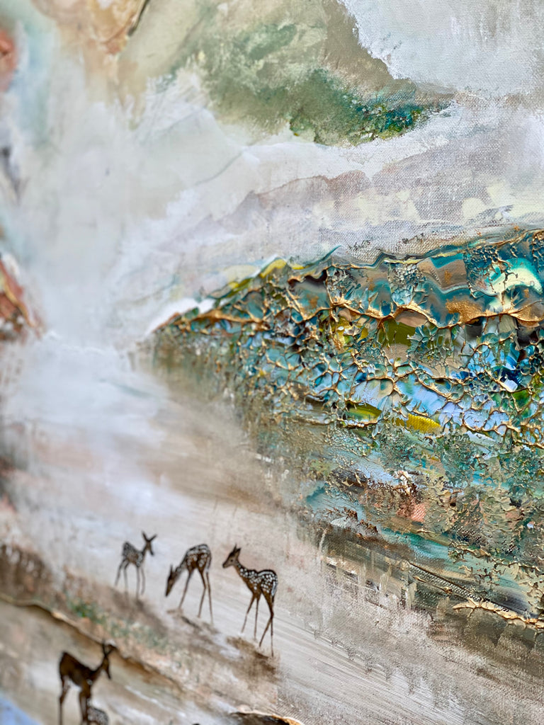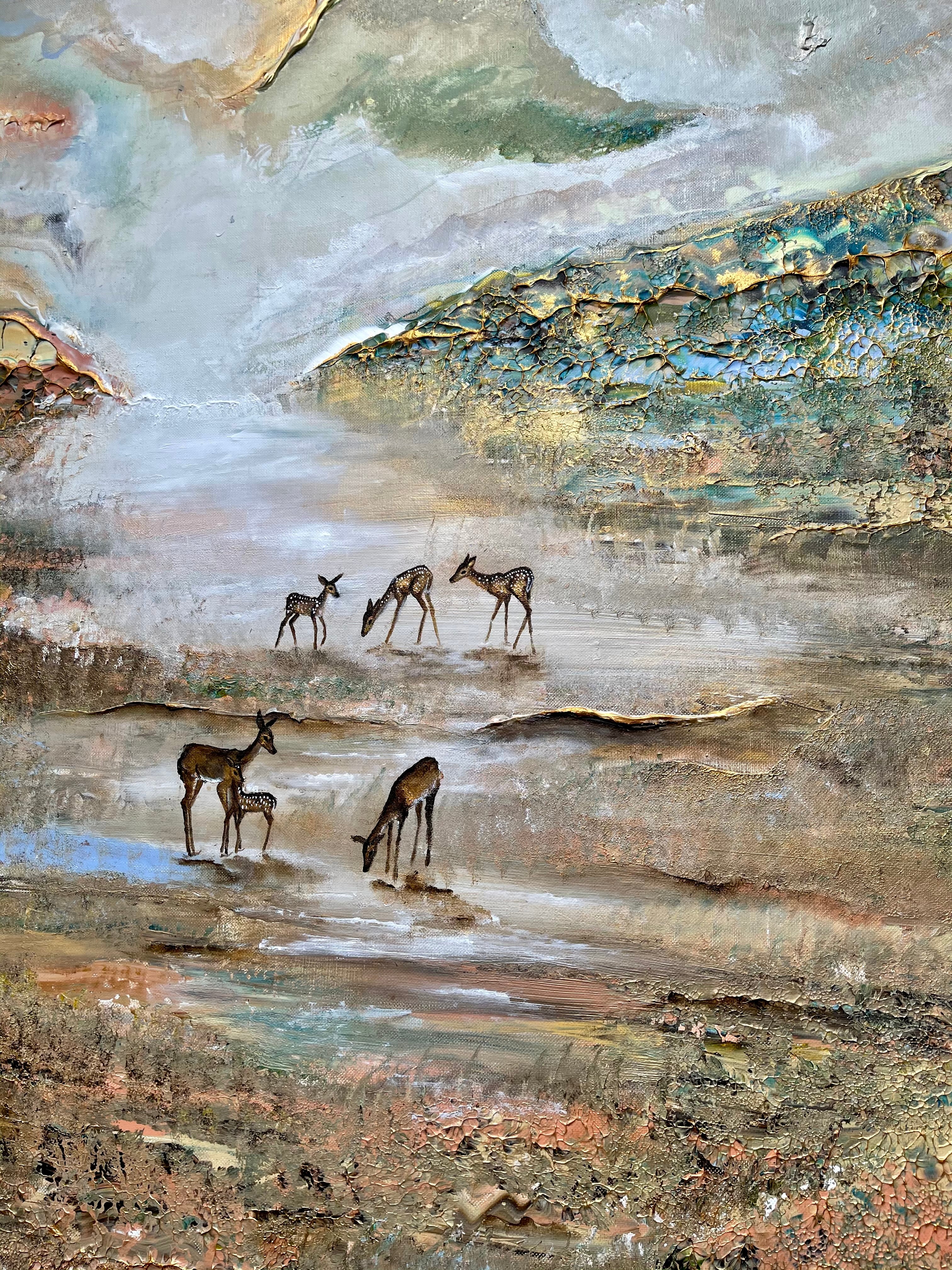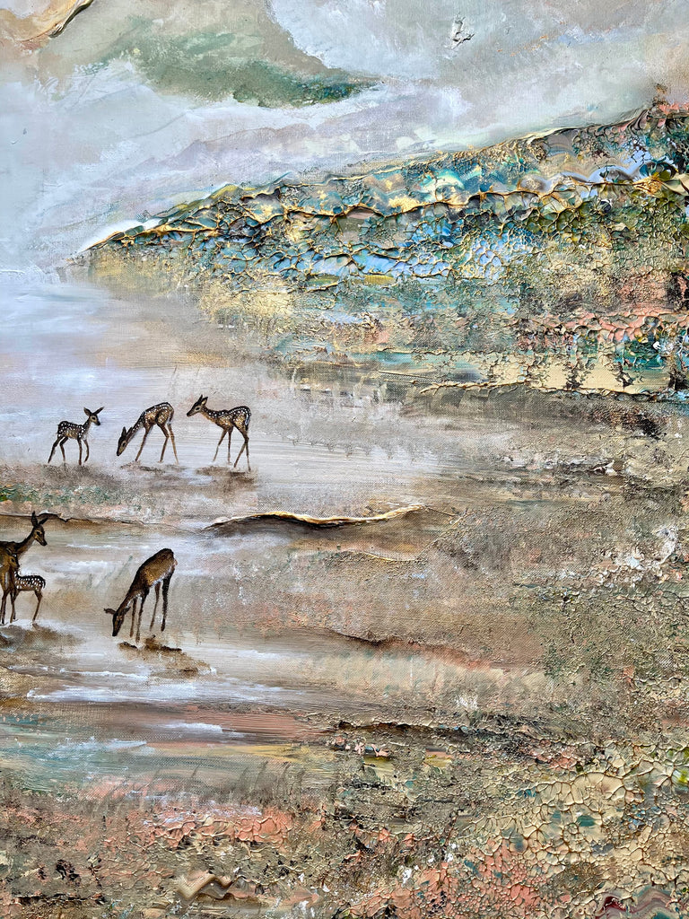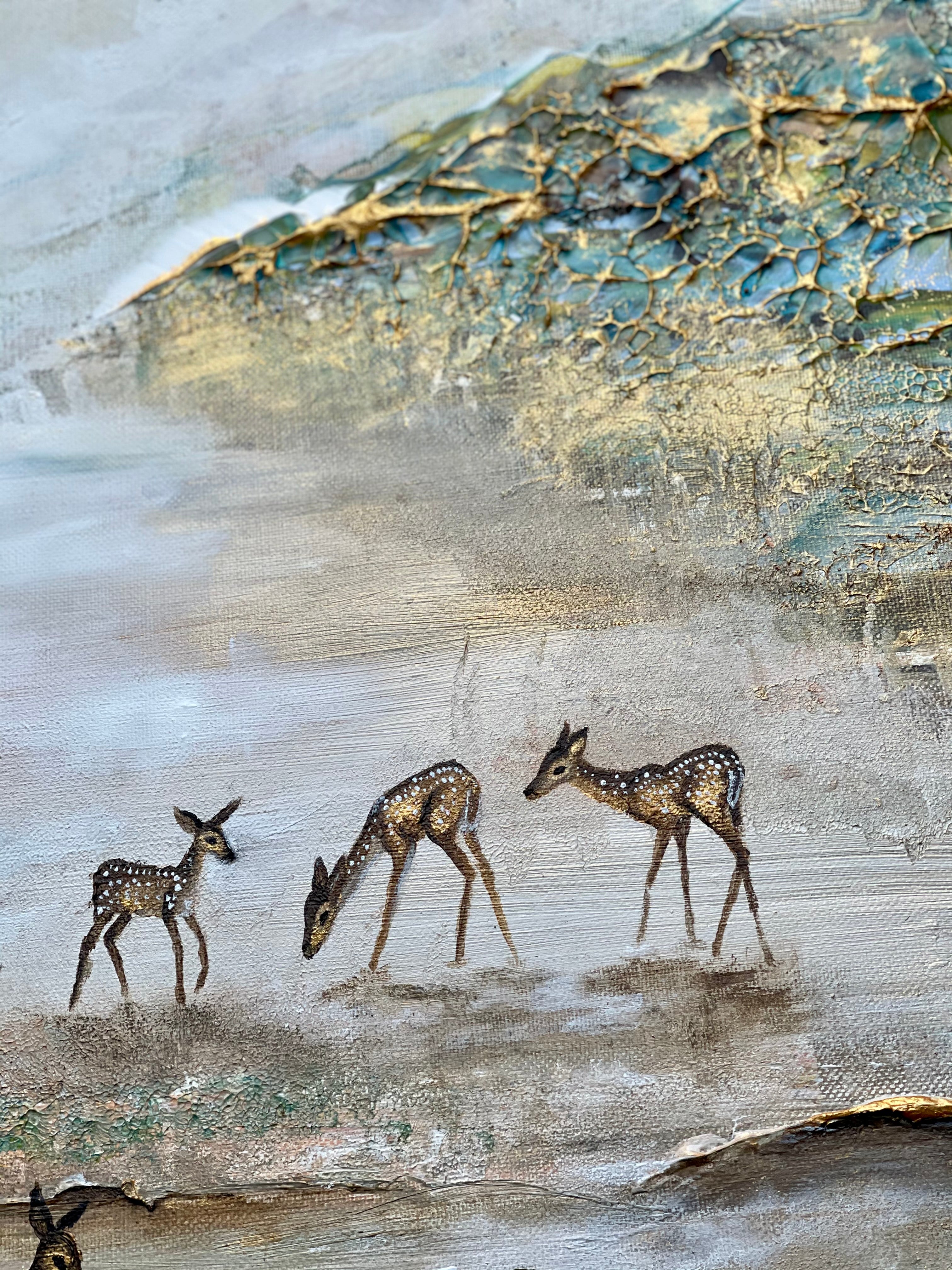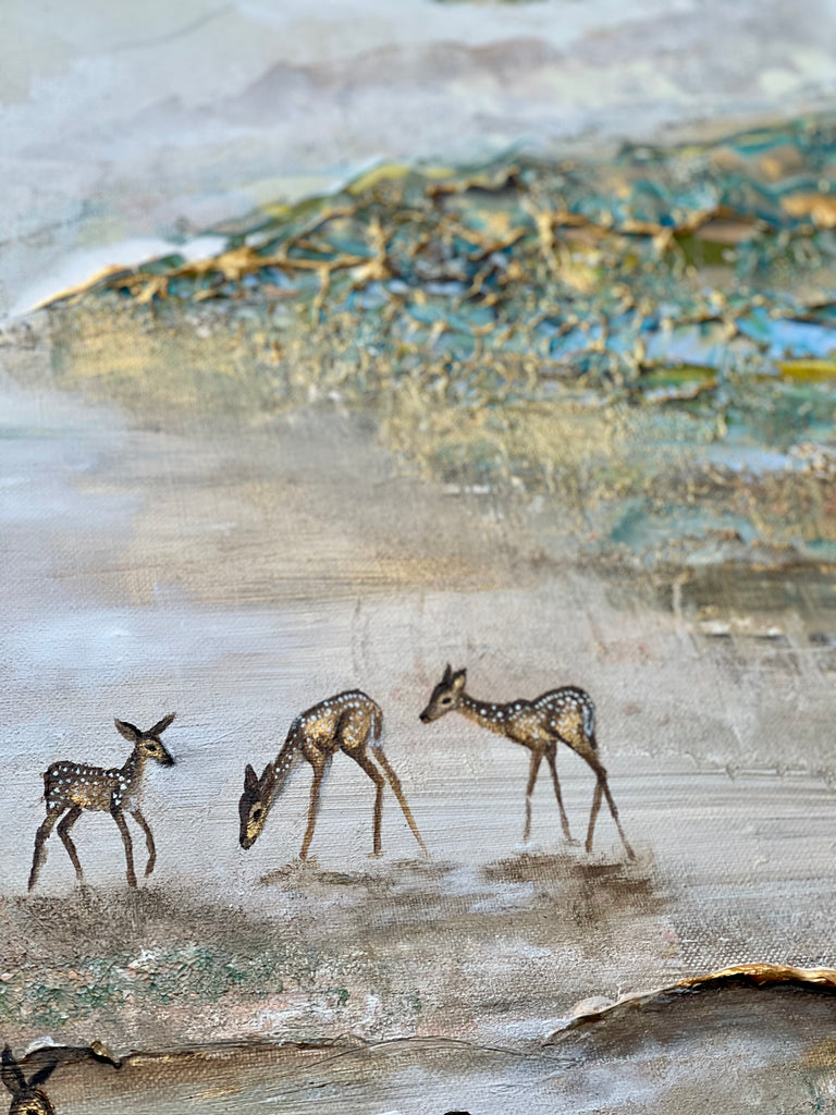 Inspirert av det vakre miljøet på Solhaga, Åkersberga. Det er noe spesielt med hjort og deres ro. Jeg elsker å male dem og synes de bringer så mye harmoni til maleriene mine. Hva tror du?🦌