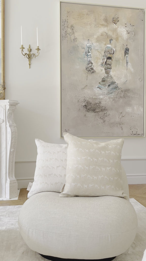 -Syn med denne samlingen er å lage en langvarig, tidløs pute av høyeste kvalitet. En unik interiørdetalj som vil berike ethvert rom eller møbler i mange år fremover. Jeg elsker spesielt hvordan lyset reflekterer i stoffene, avhengig av tiden på dagen, slik at hjorten kommer til liv og skimmer.