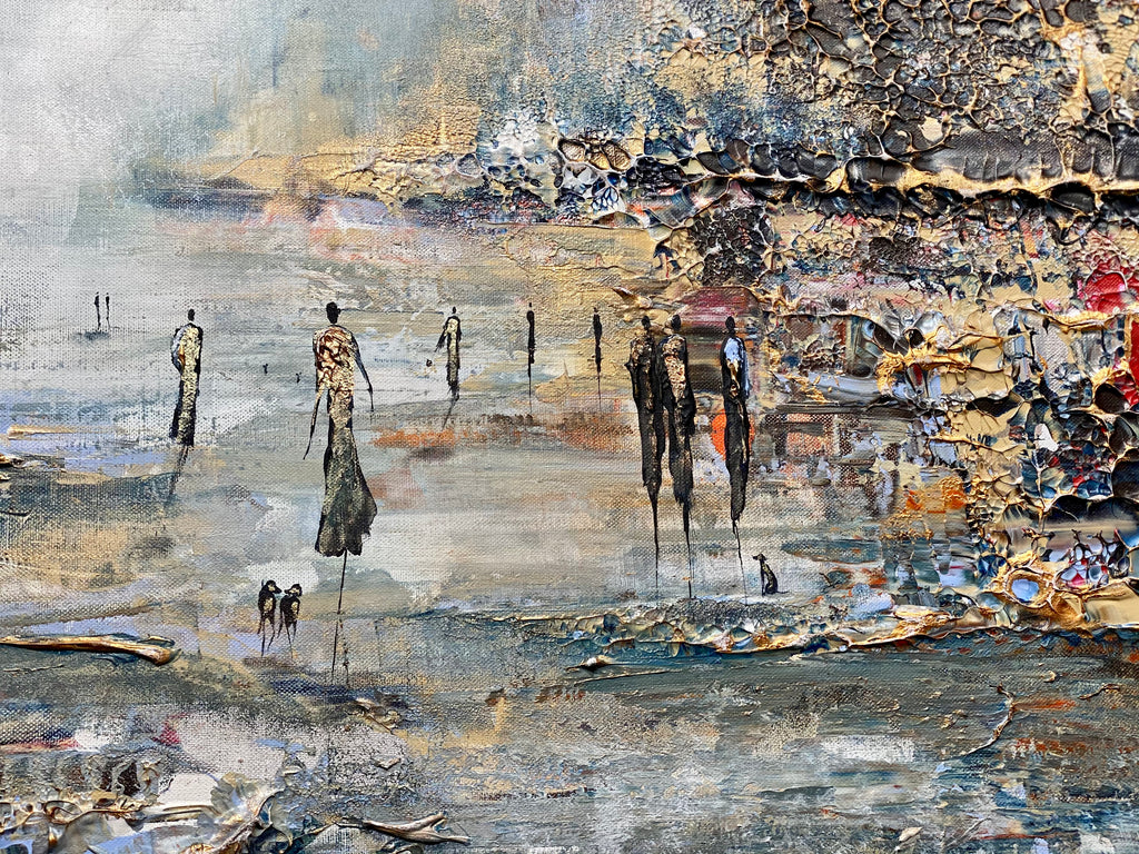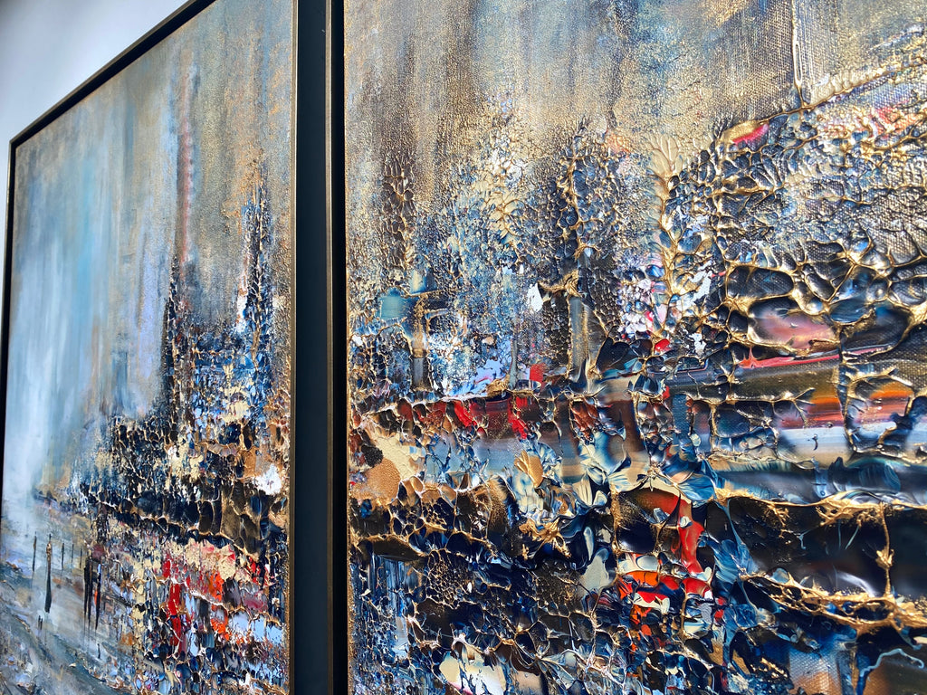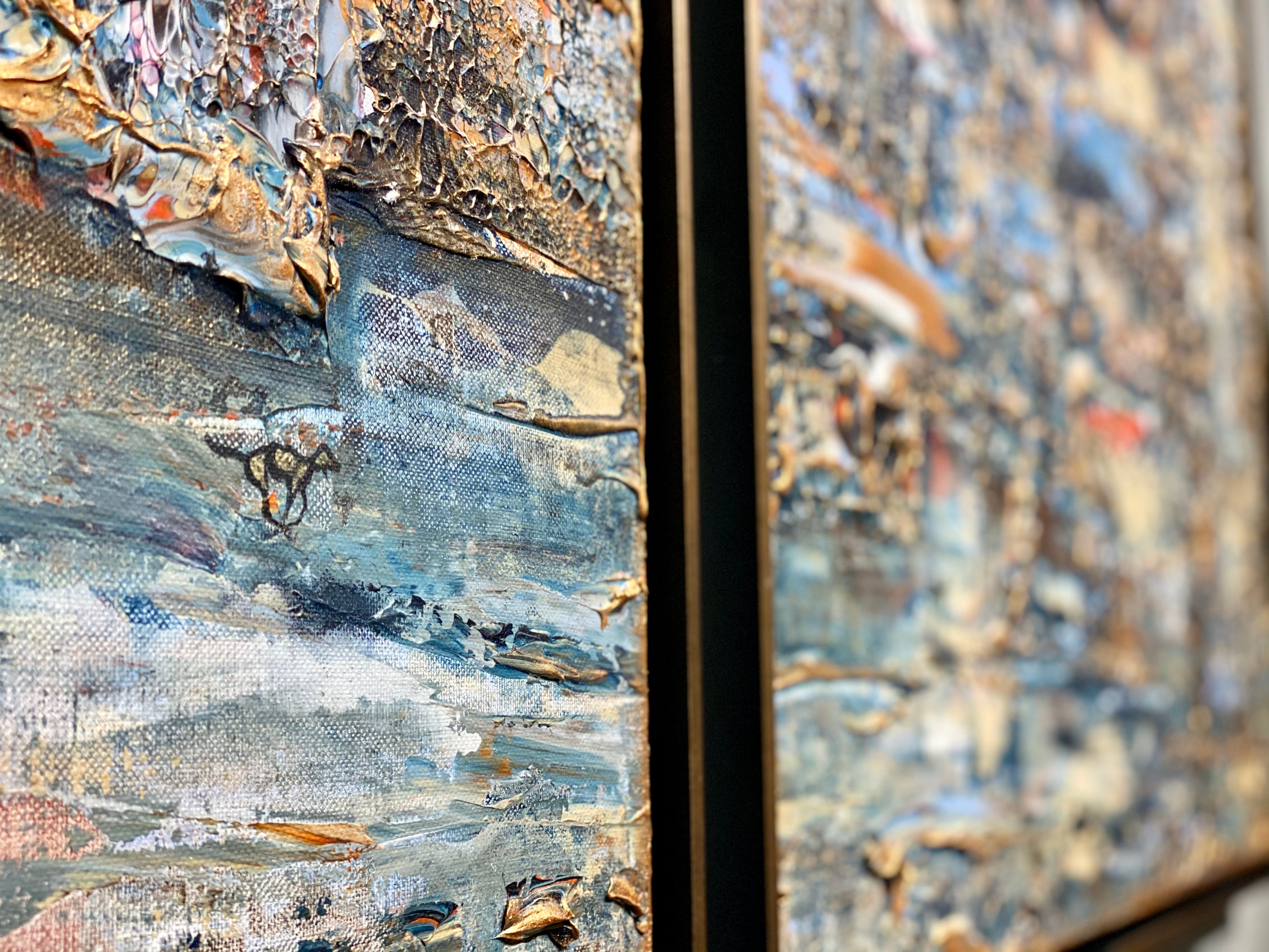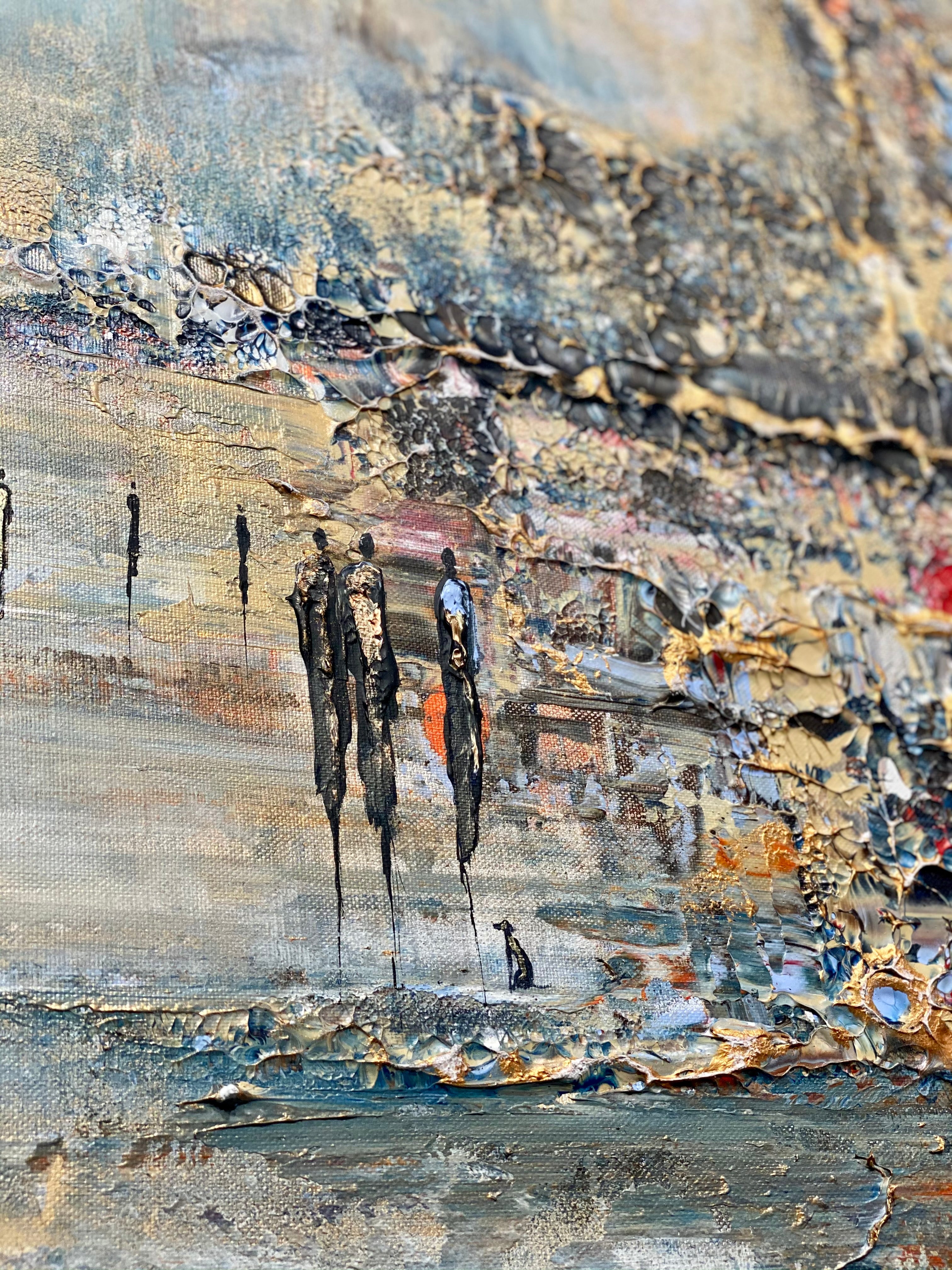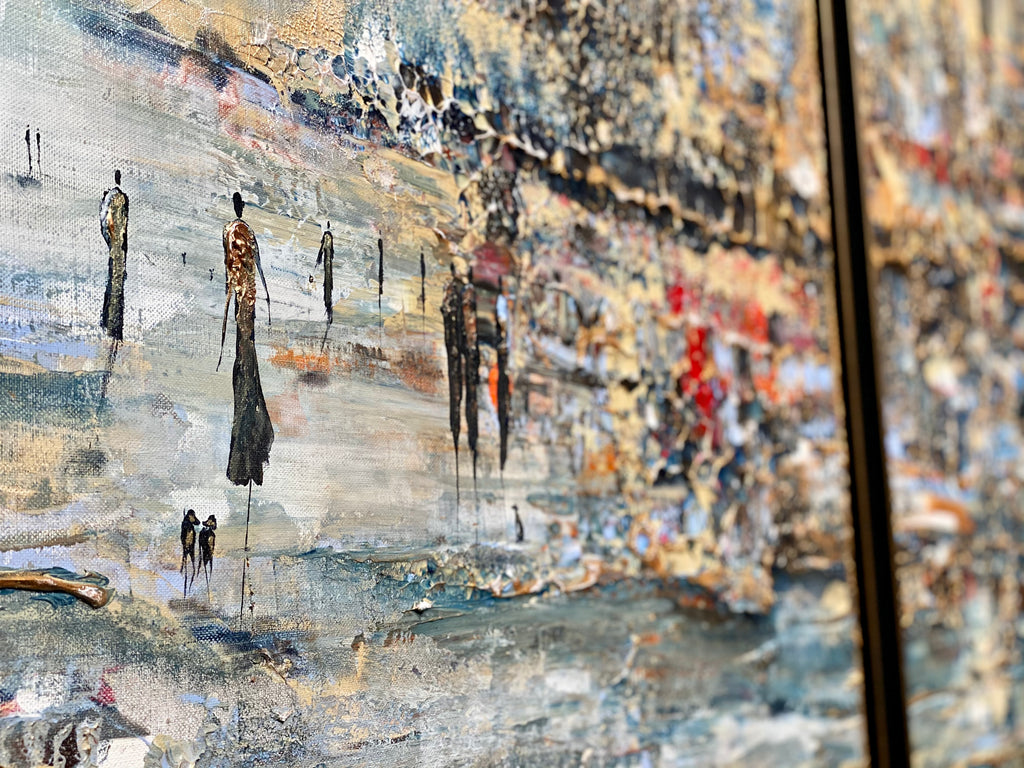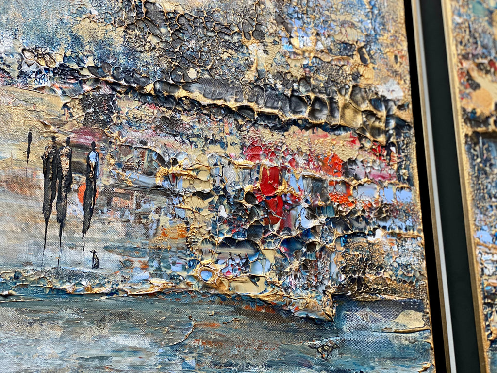Inspirasjonen blir samlet inn fra Nobelgatan i Stockholm hvor jeg vanligvis går med hundene mine. Jeg elsker spesielt hundene som løper etter hverandre midt i maleriet.