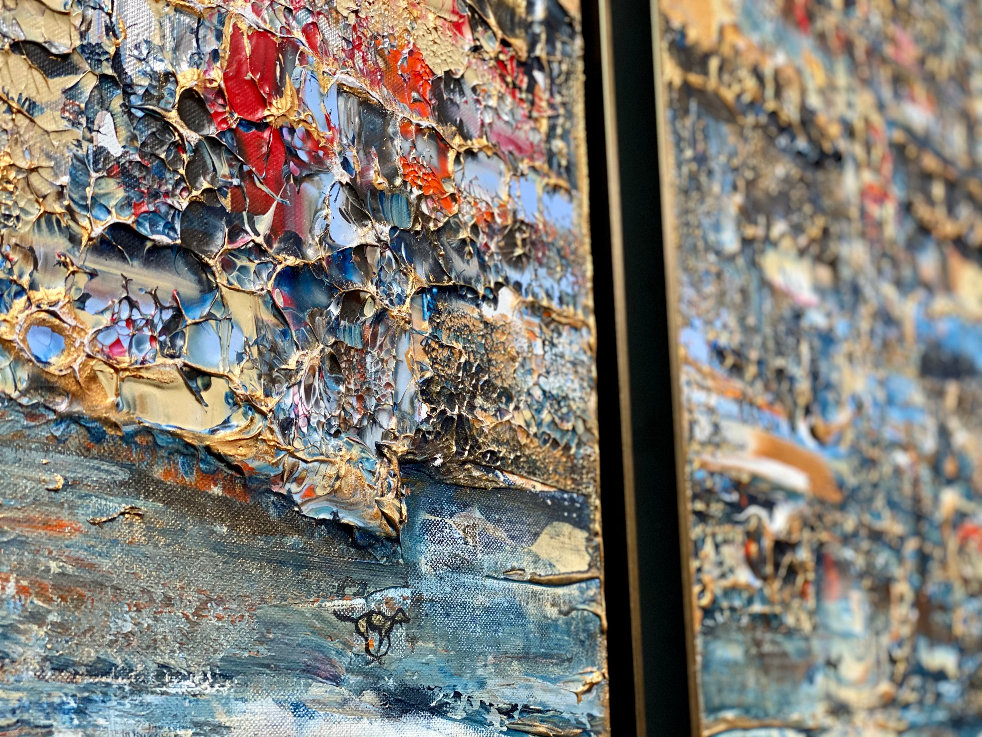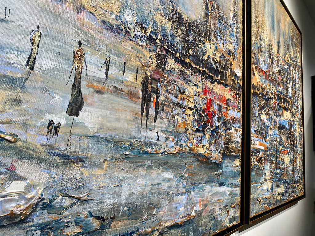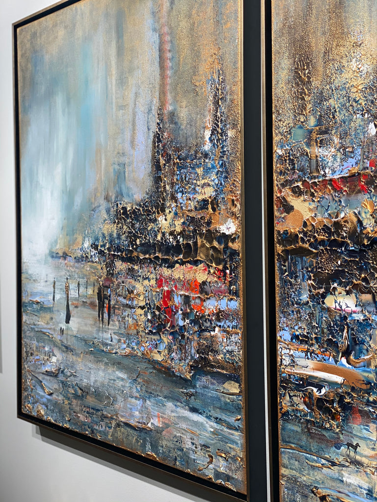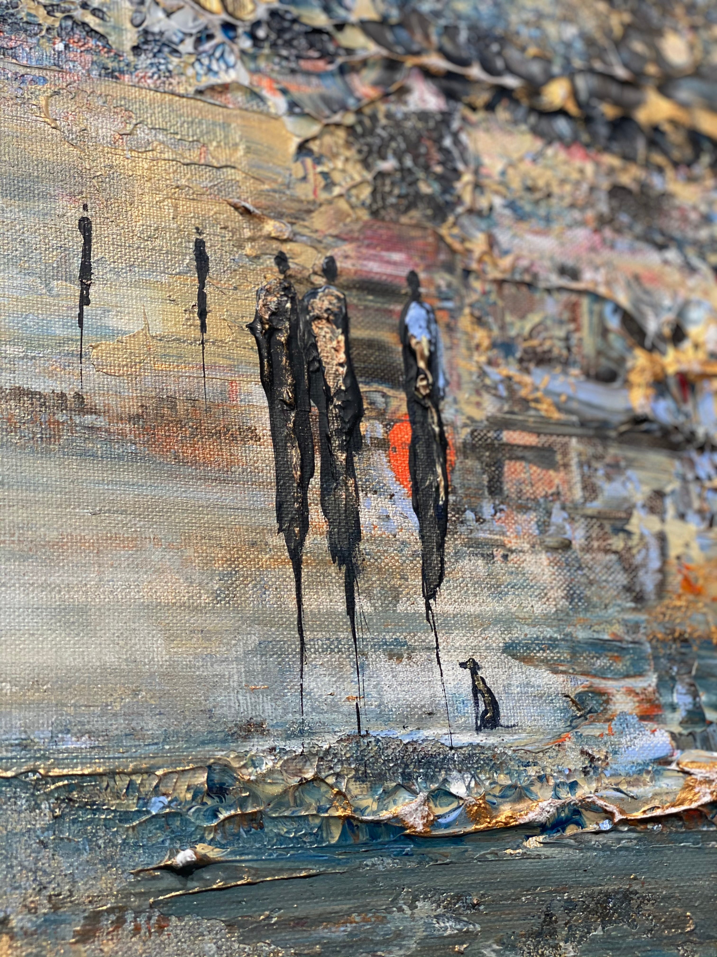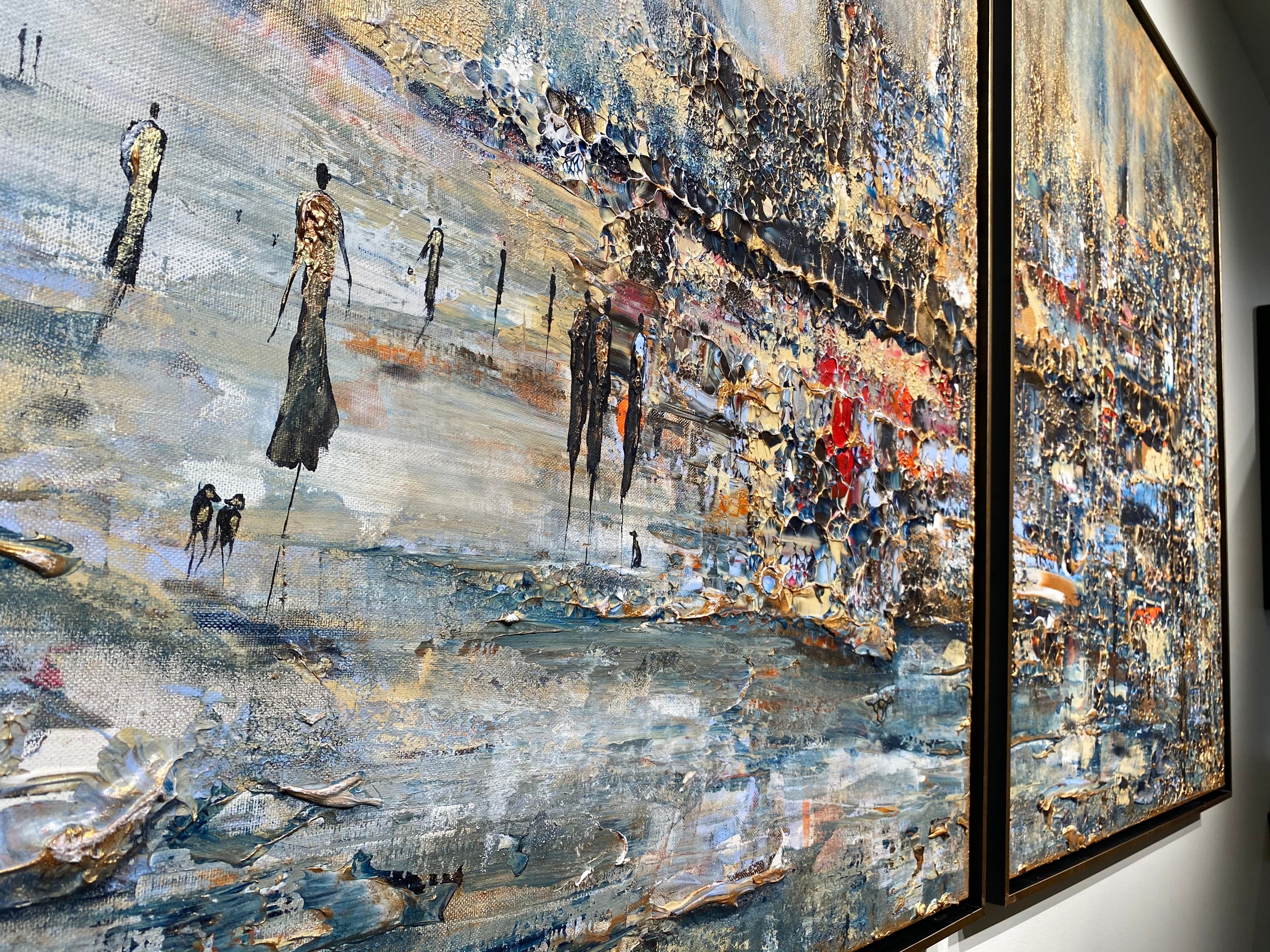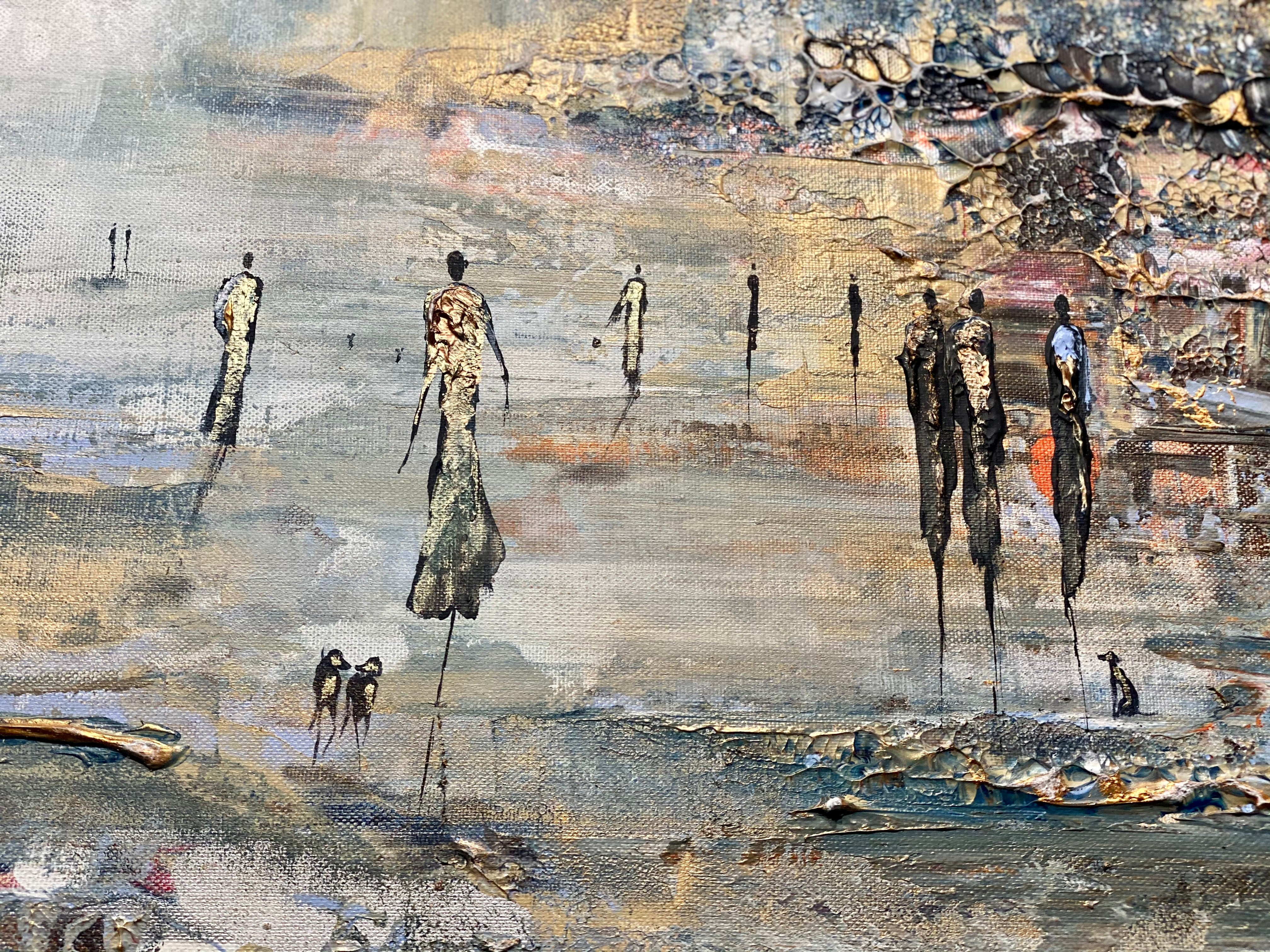 Inspirasjonen blir samlet inn fra Nobelgatan i Stockholm hvor jeg vanligvis går med hundene mine. Jeg elsker spesielt hundene som løper etter hverandre midt i maleriet.