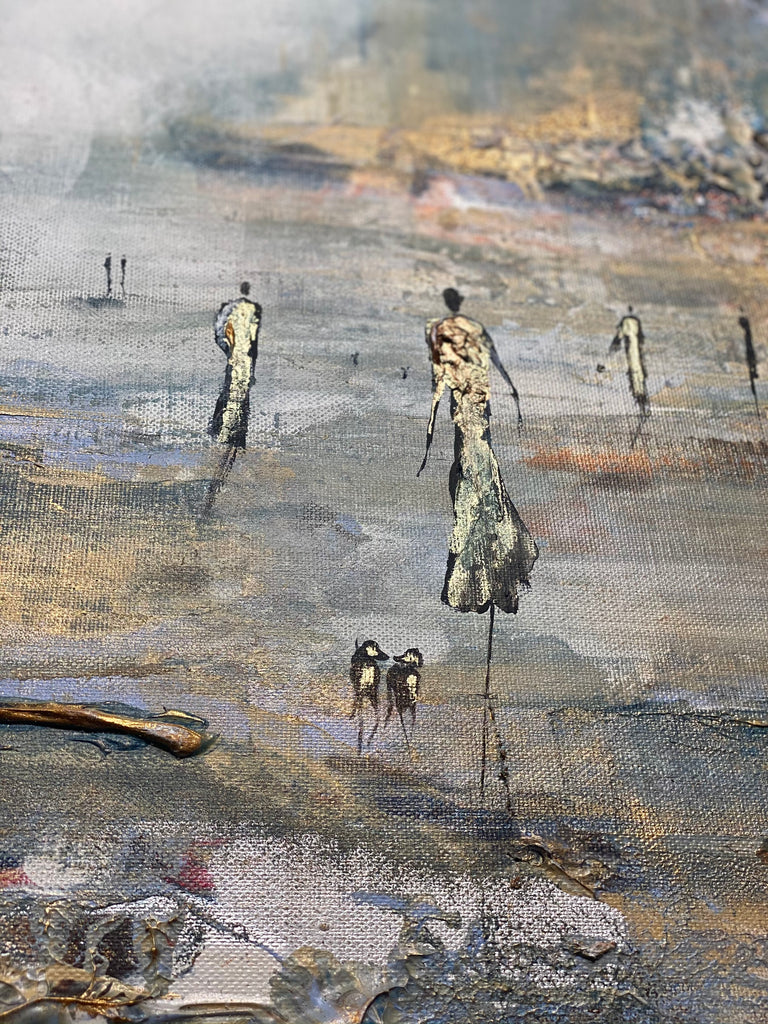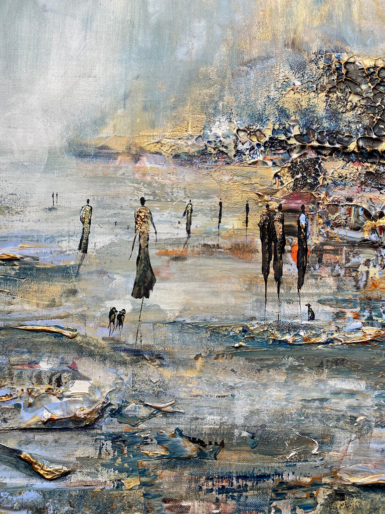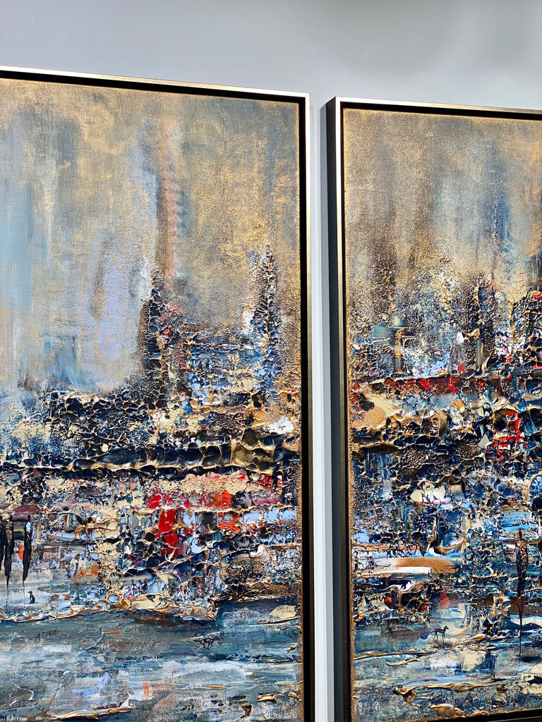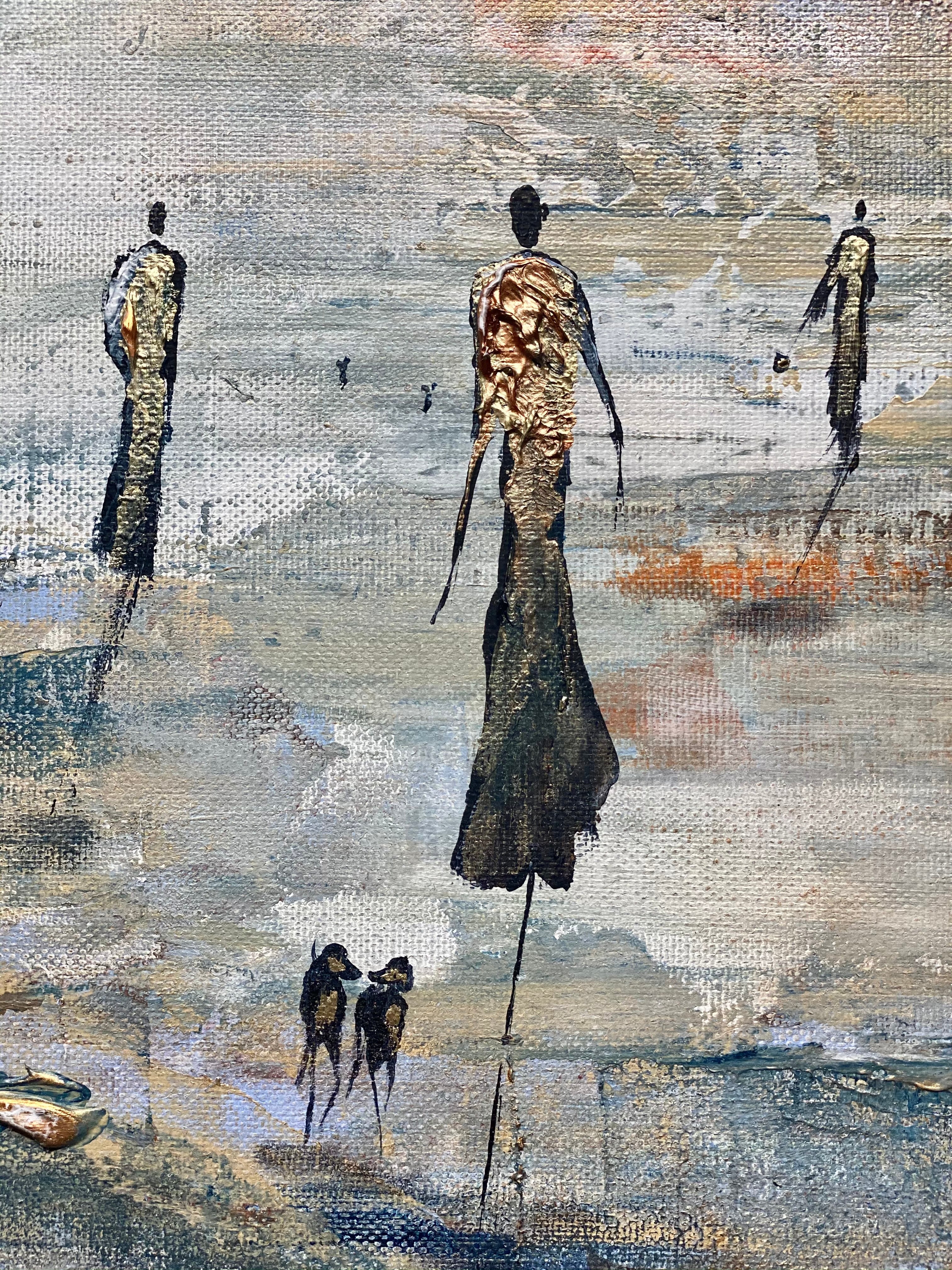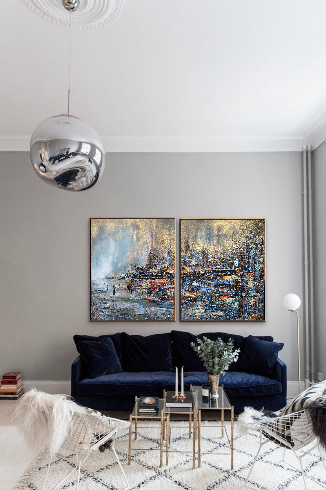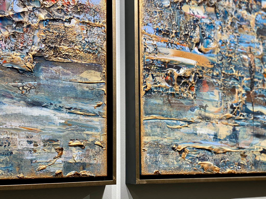 Inspirasjonen blir samlet inn fra Nobelgatan i Stockholm hvor jeg vanligvis går med hundene mine. Jeg elsker spesielt hundene som løper etter hverandre midt i maleriet.