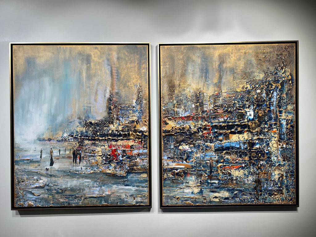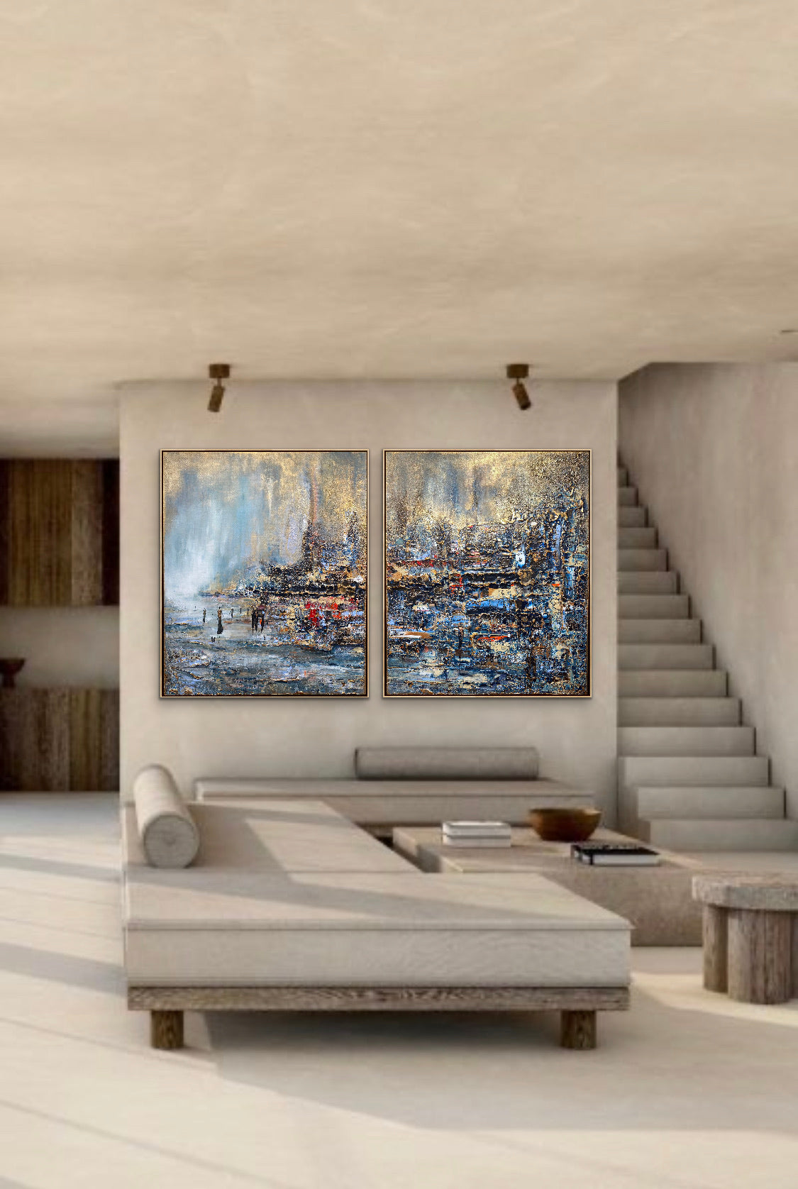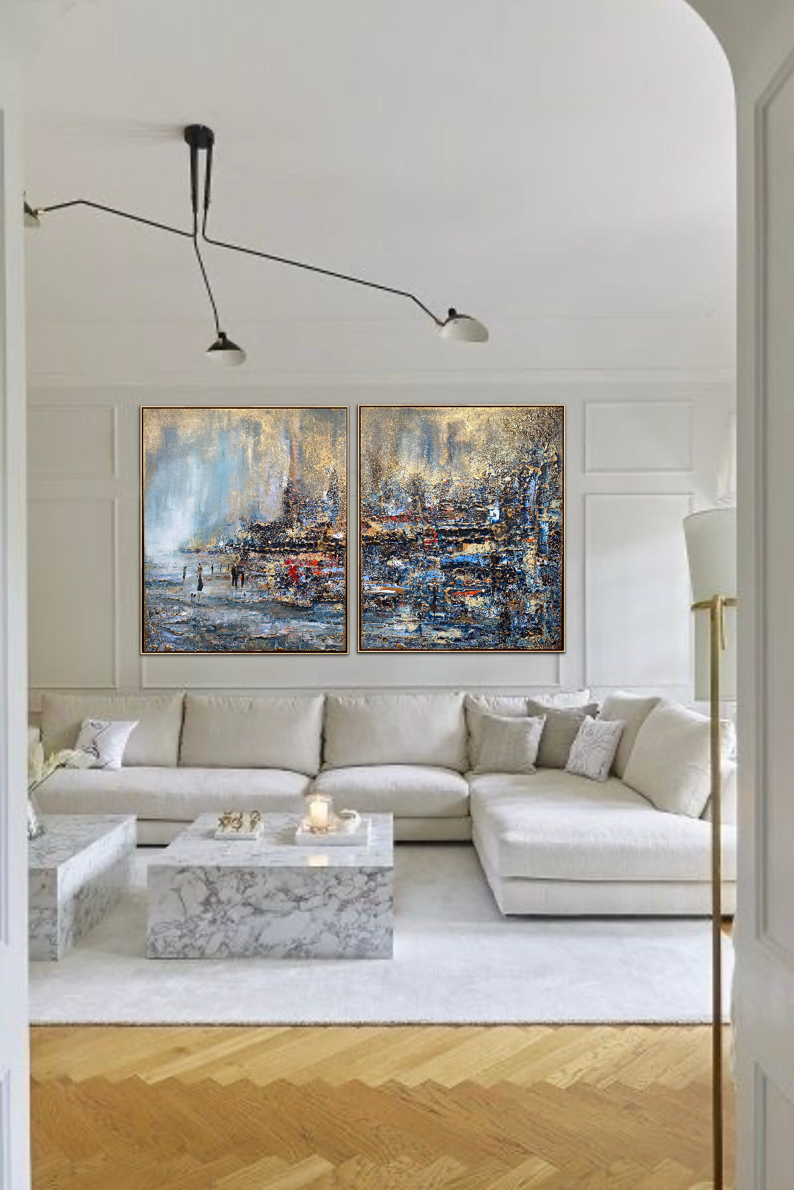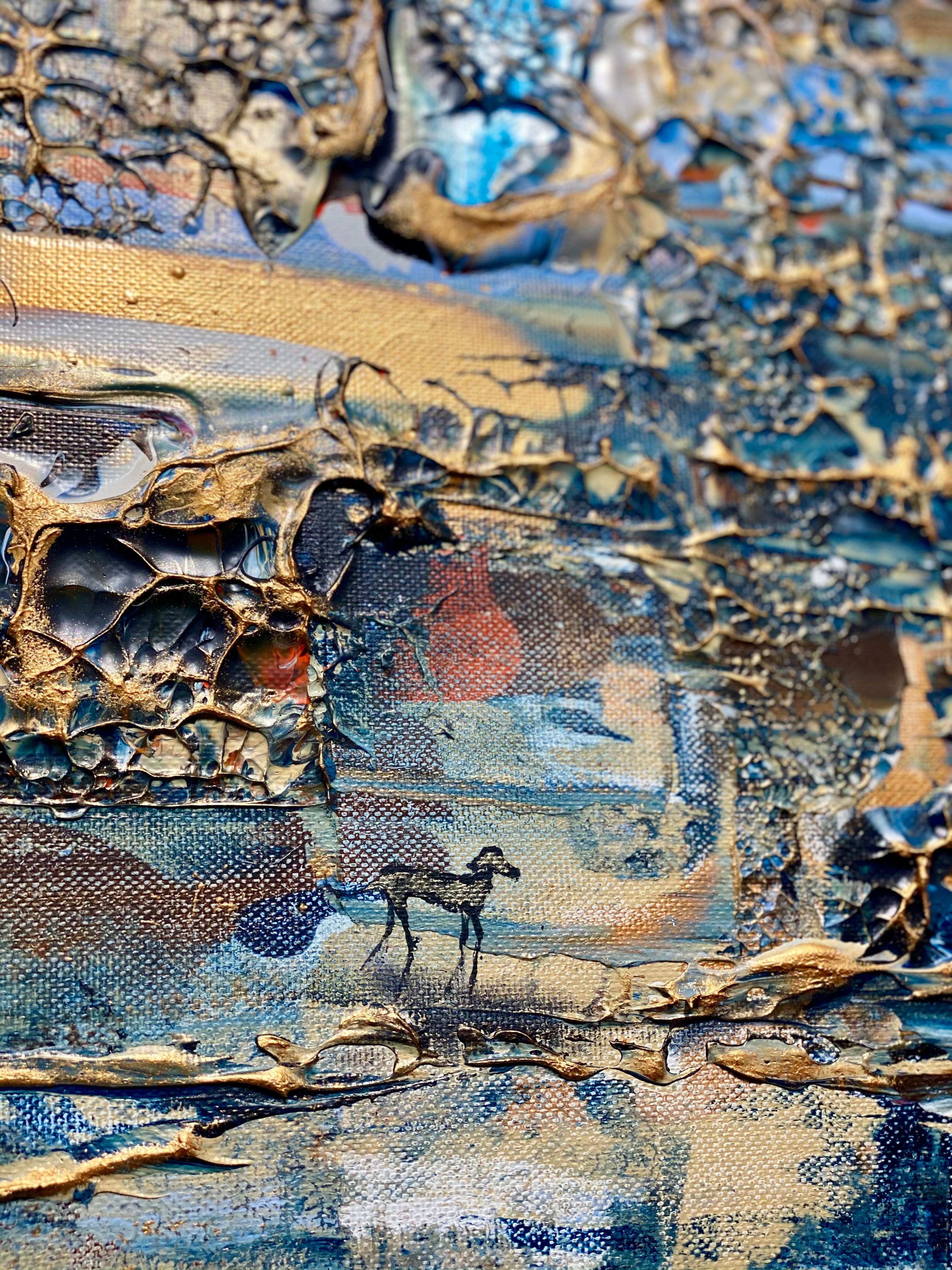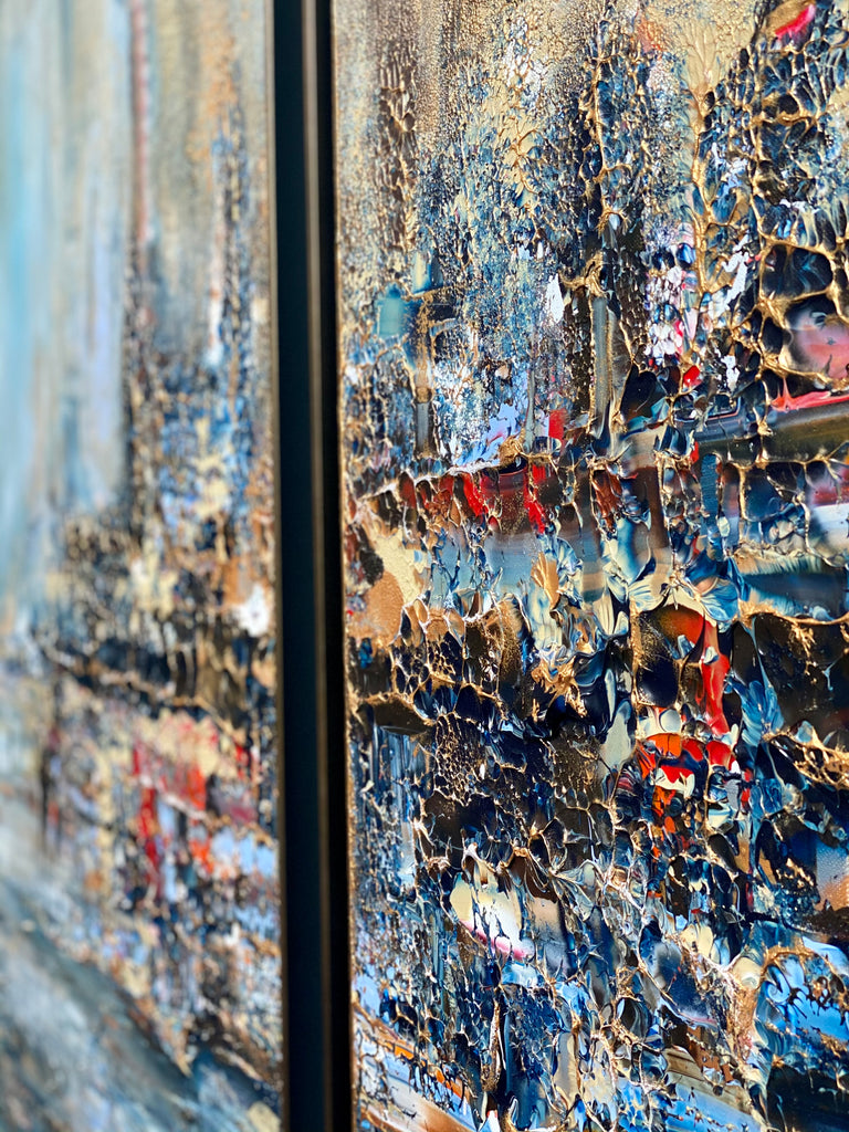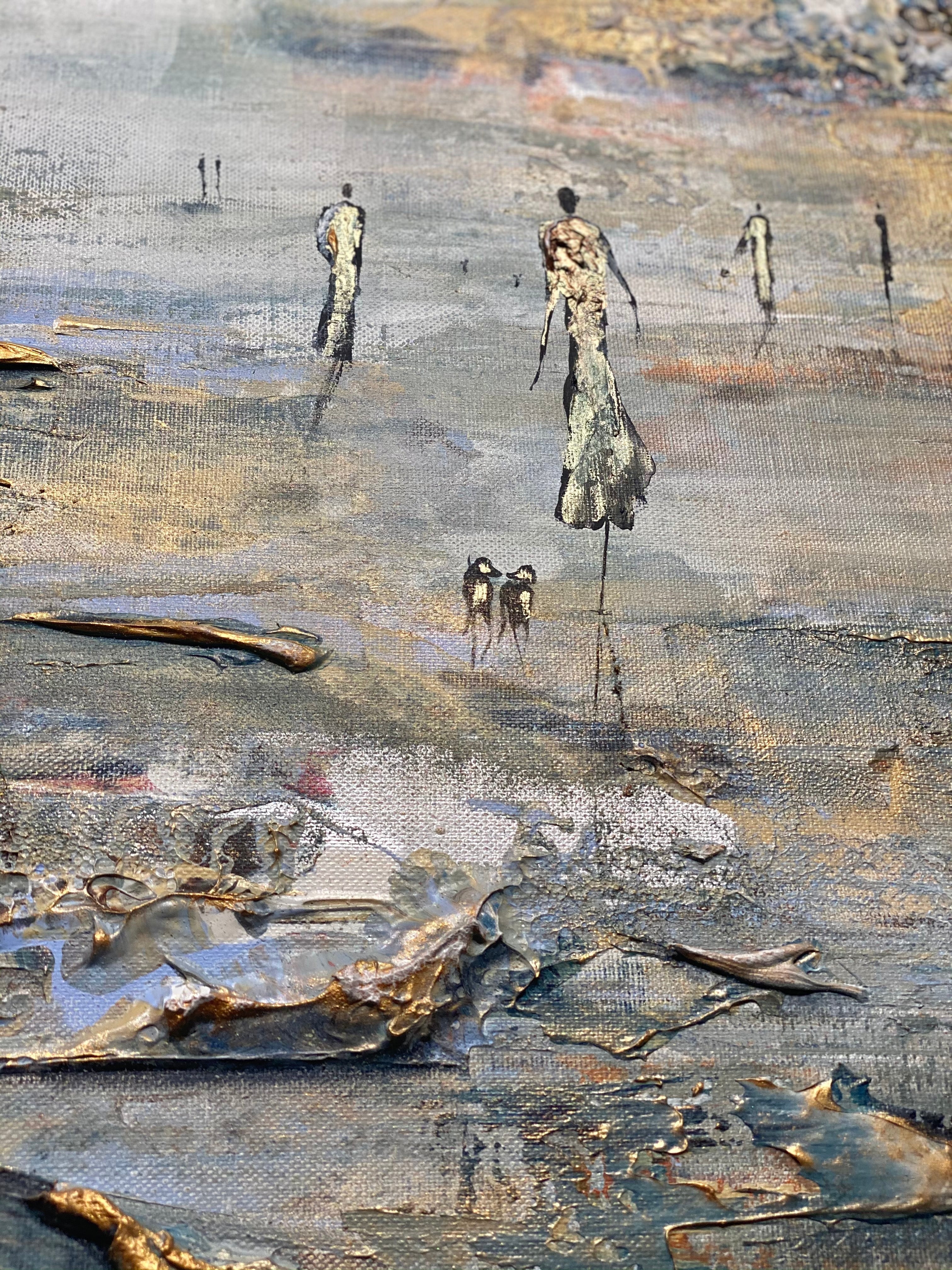 Inspirasjonen blir samlet inn fra Nobelgatan i Stockholm hvor jeg vanligvis går med hundene mine. Jeg elsker spesielt hundene som løper etter hverandre midt i maleriet.