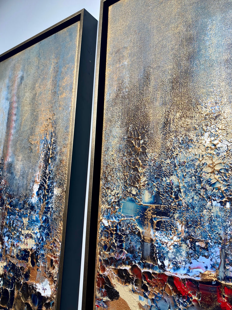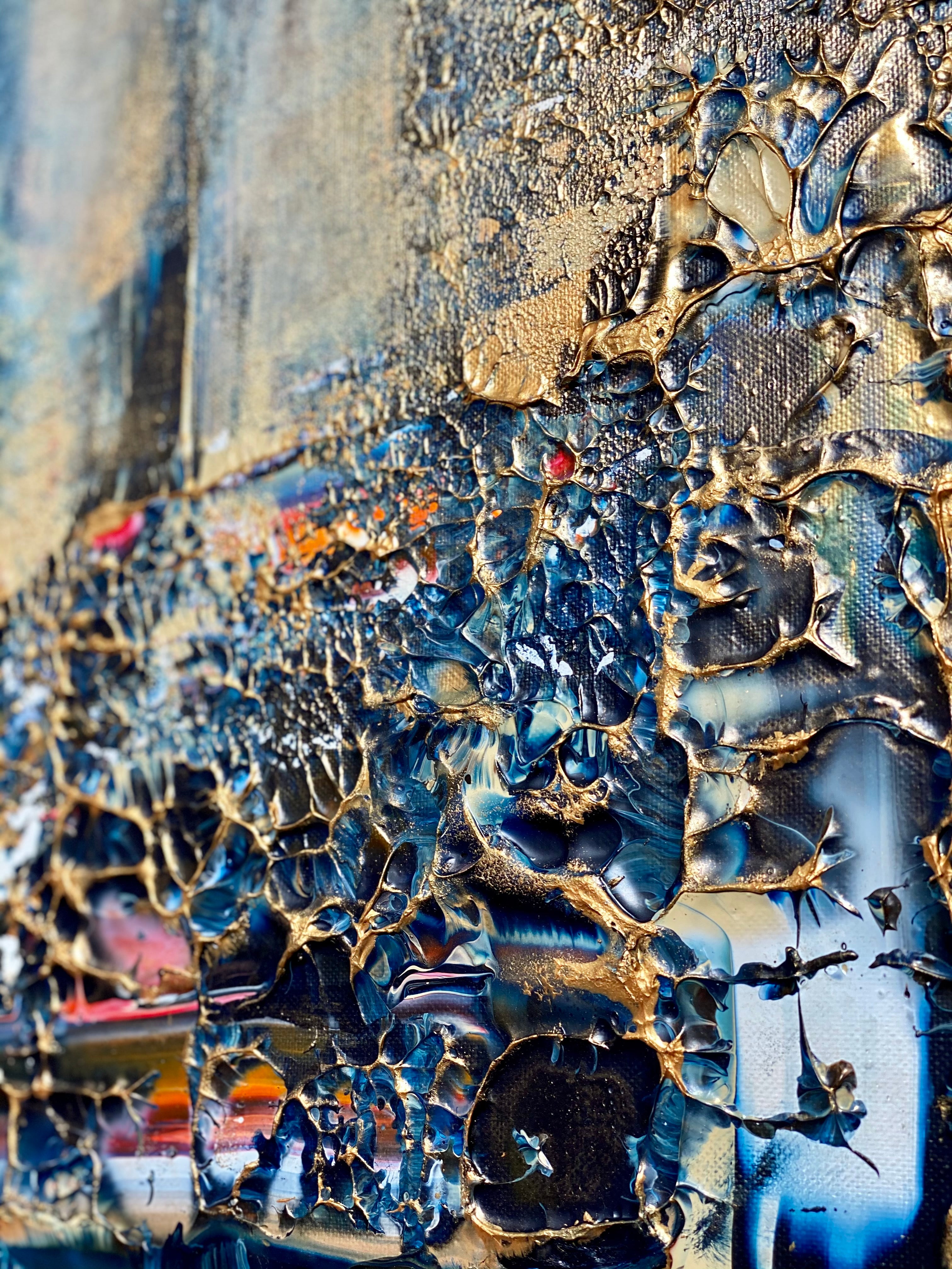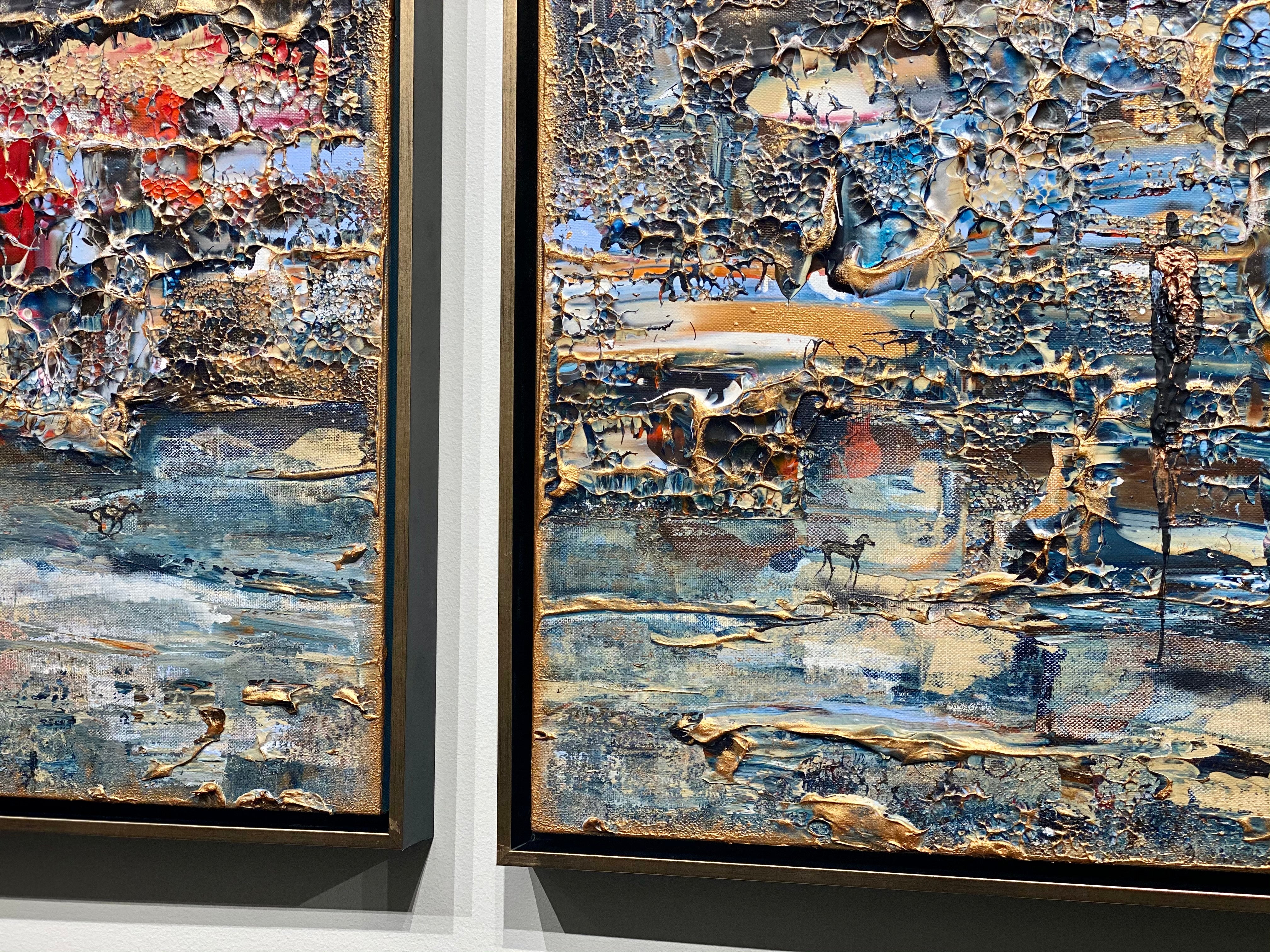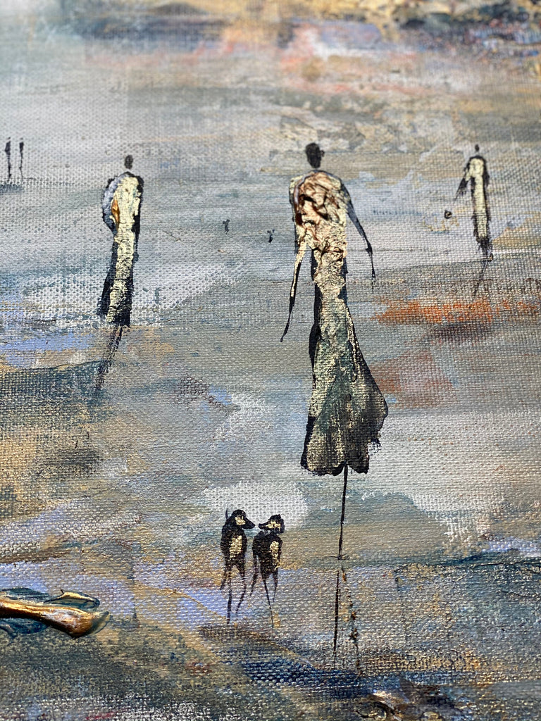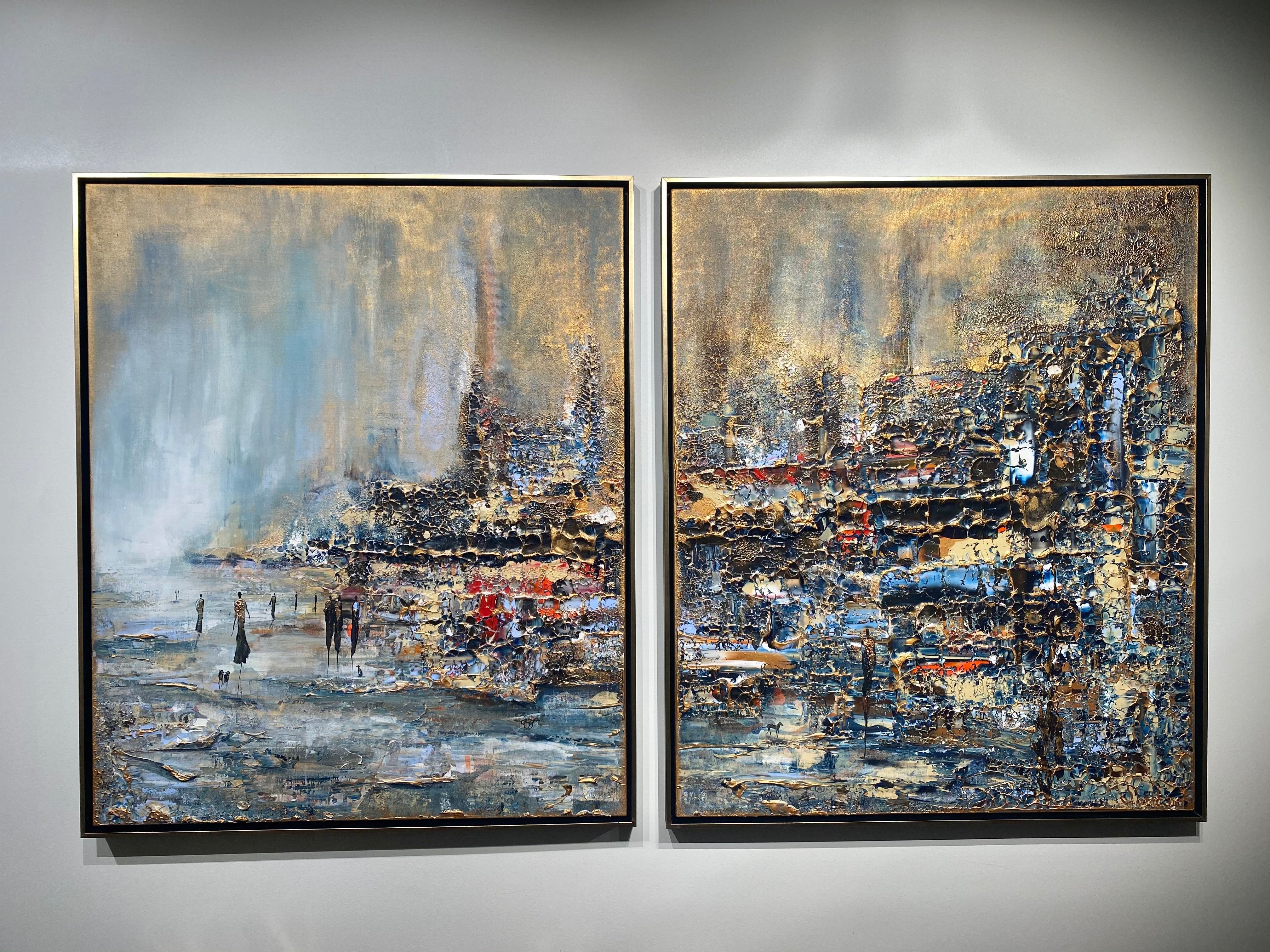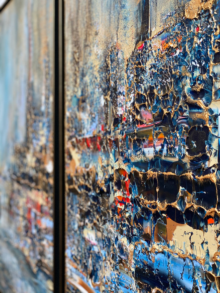 Inspirasjonen blir samlet inn fra Nobelgatan i Stockholm hvor jeg vanligvis går med hundene mine. Jeg elsker spesielt hundene som løper etter hverandre midt i maleriet.