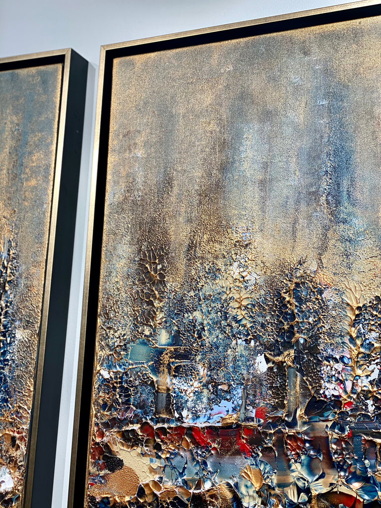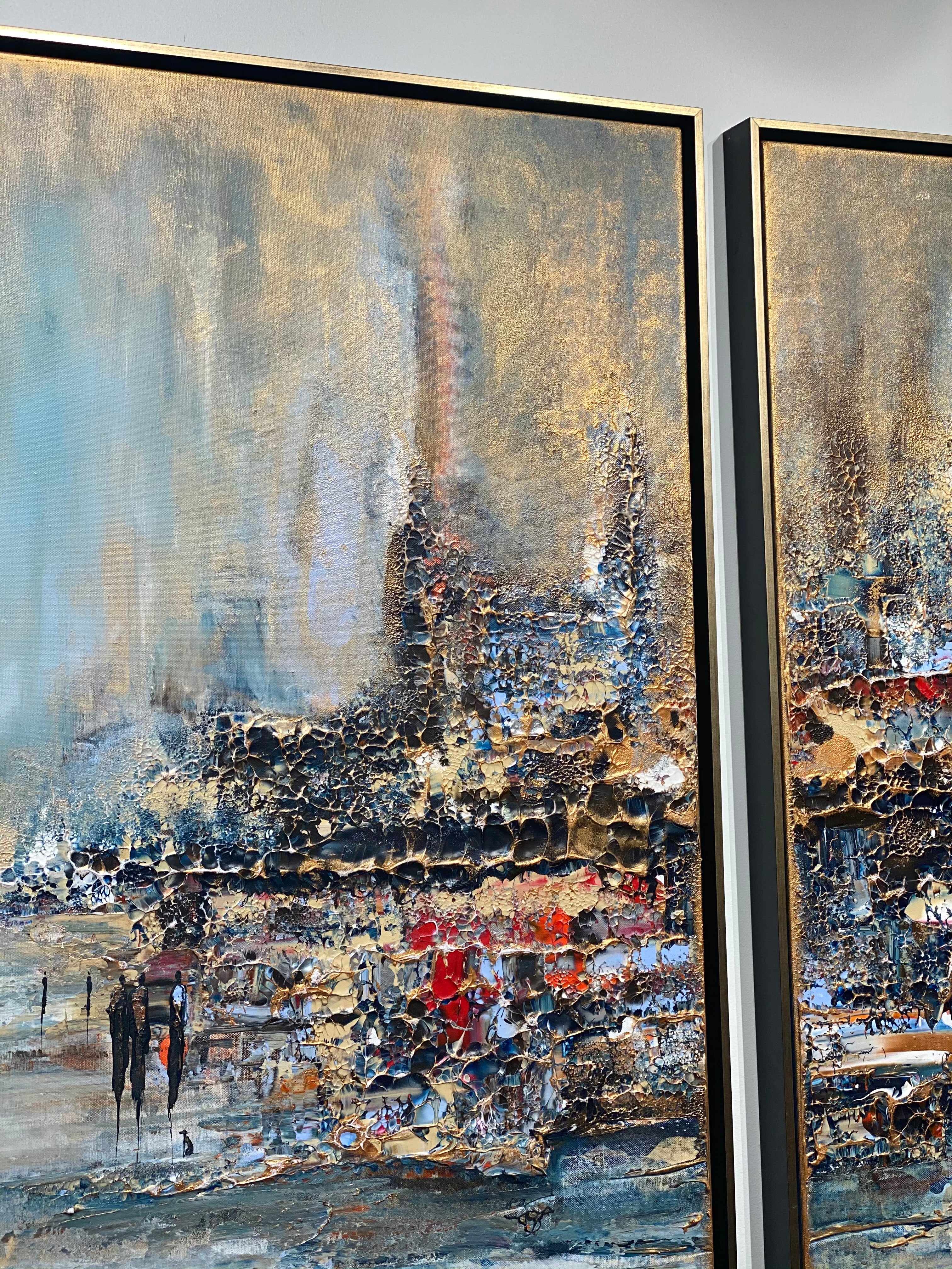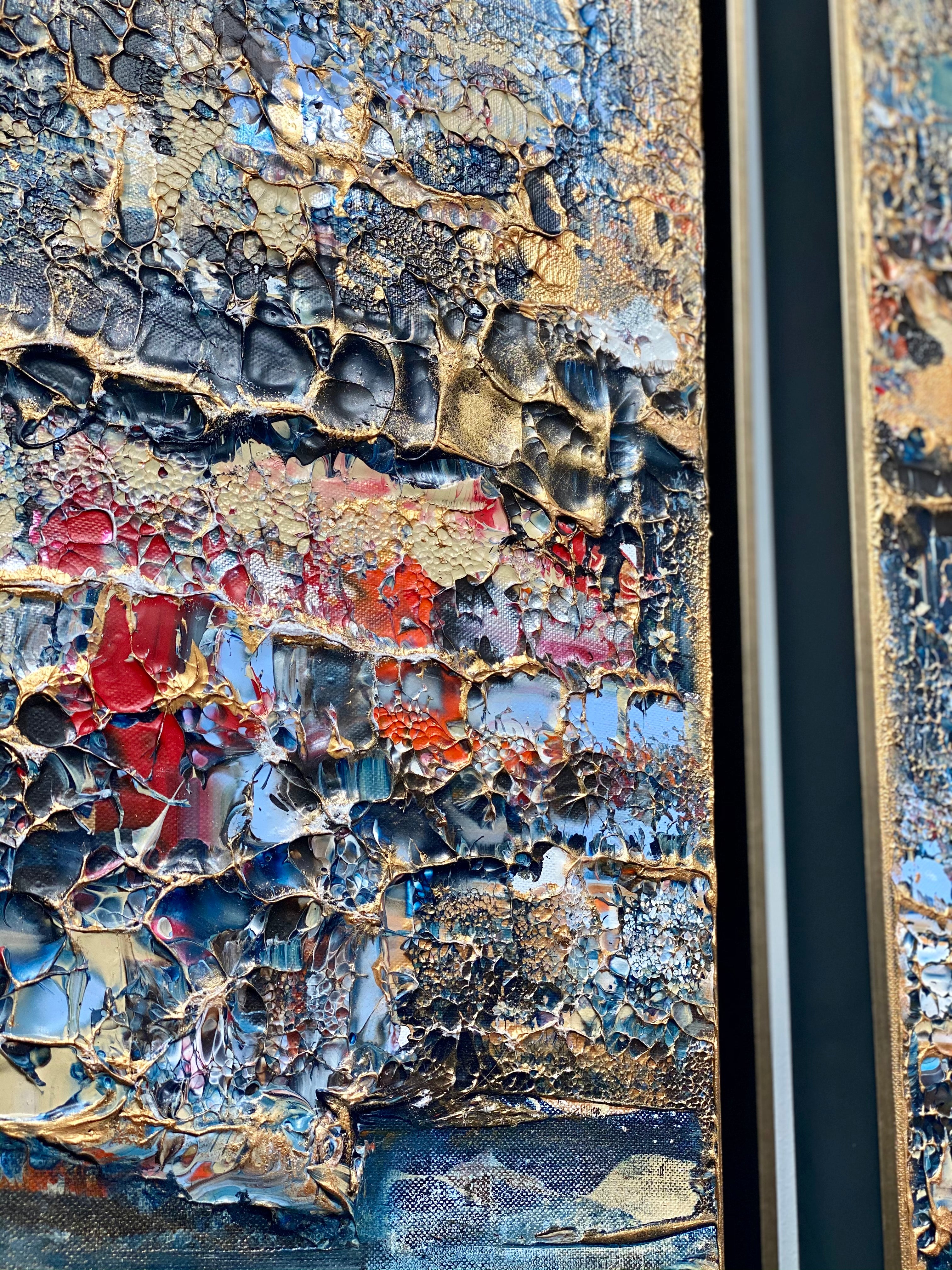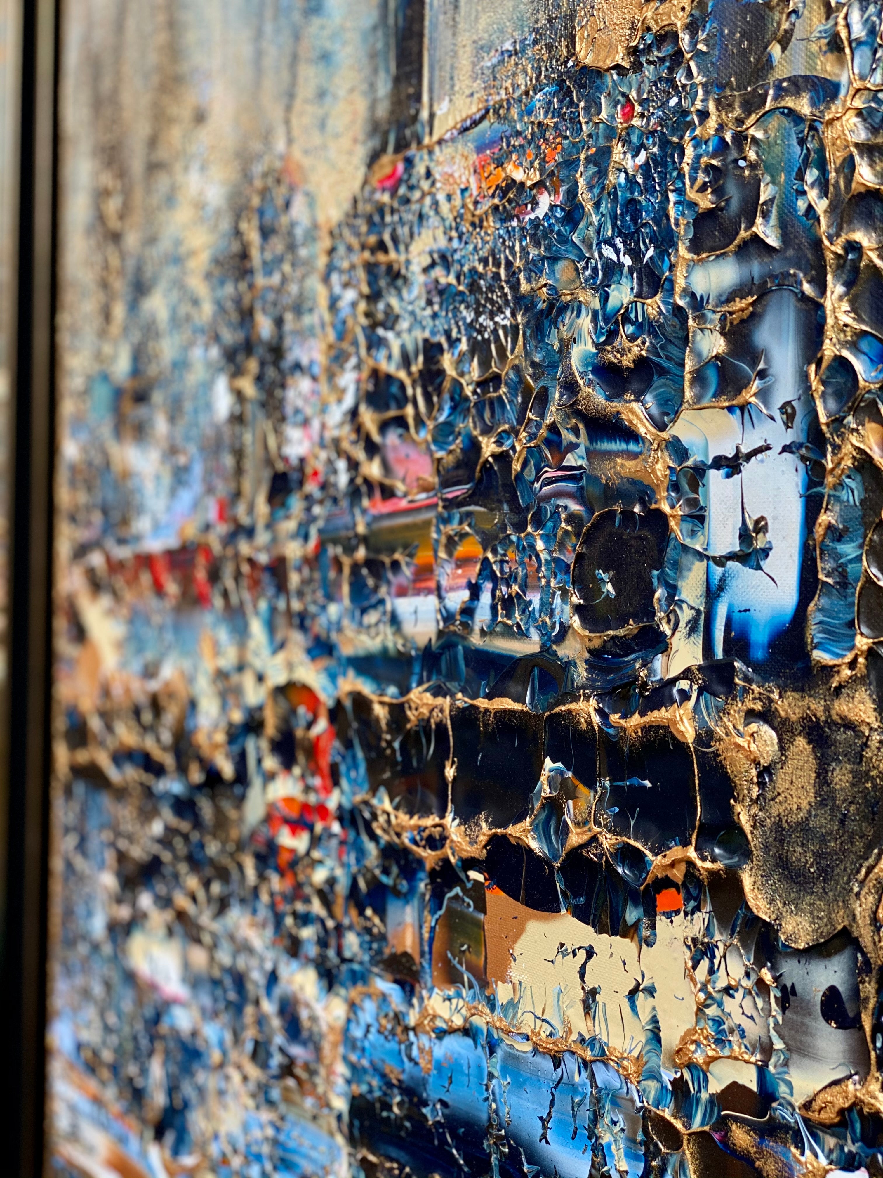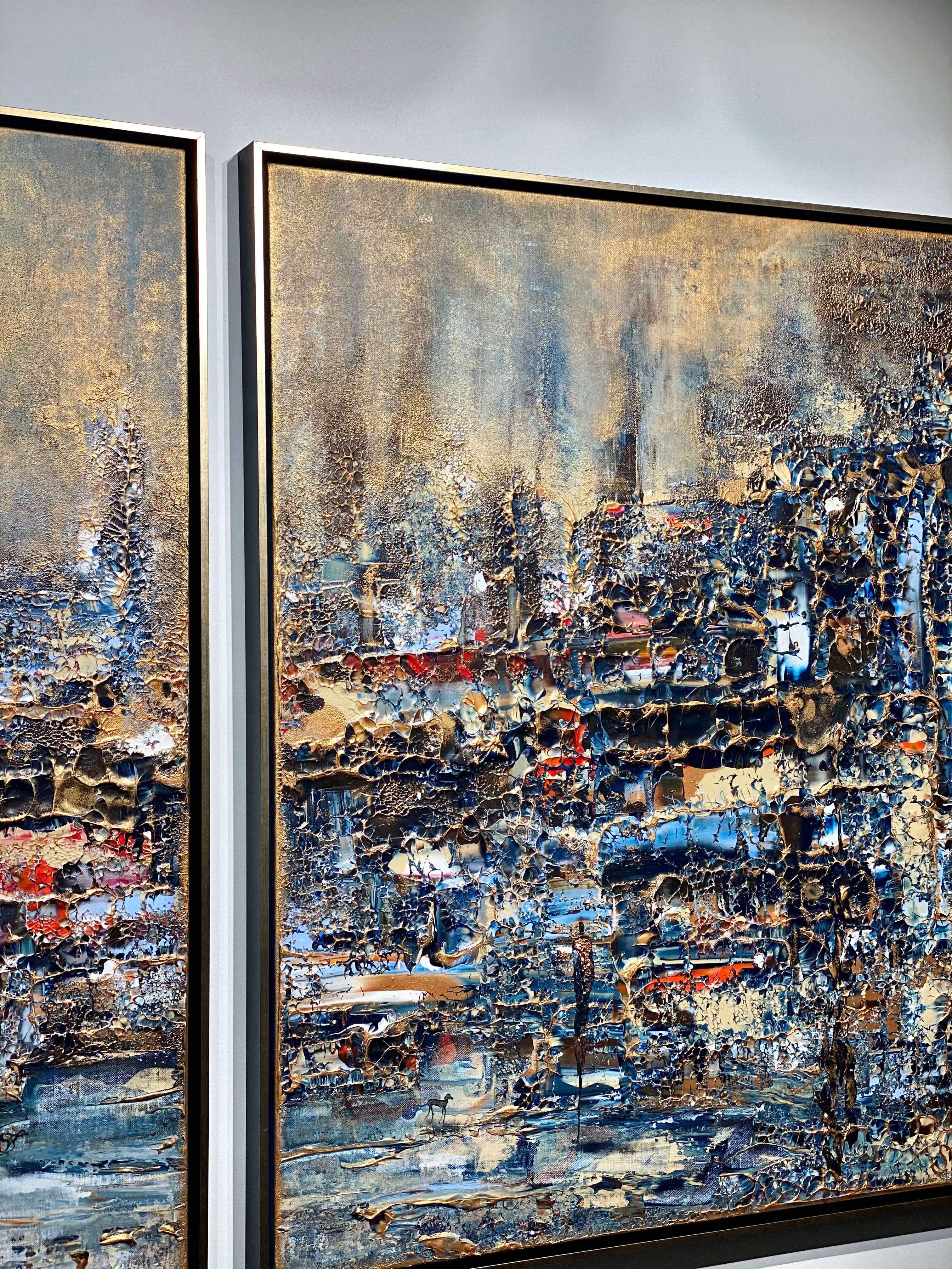 Inspirasjonen blir samlet inn fra Nobelgatan i Stockholm hvor jeg vanligvis går med hundene mine. Jeg elsker spesielt hundene som løper etter hverandre midt i maleriet.
