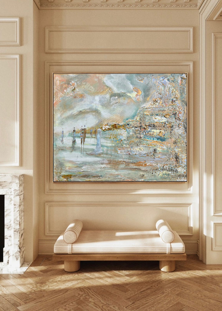We offer worldwide shipping. The delivery is up to 6 weeks. A white and golden frame created by the artist, is included in the price.