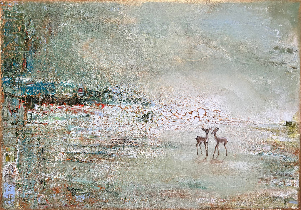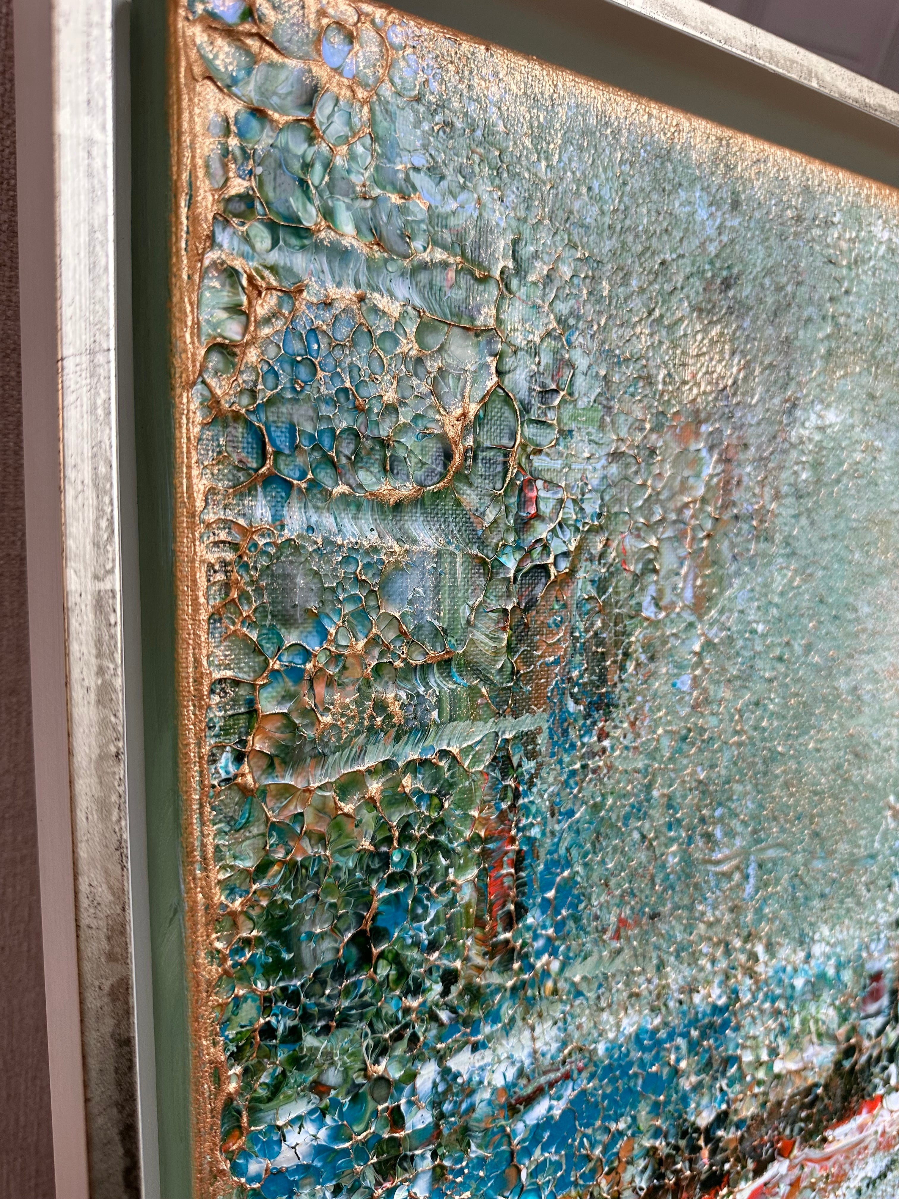 Vi erbjuder global frakt. Leveransen är upp till 6 veckor. En vit och gyllene ram skapad av konstnären ingår i priset.