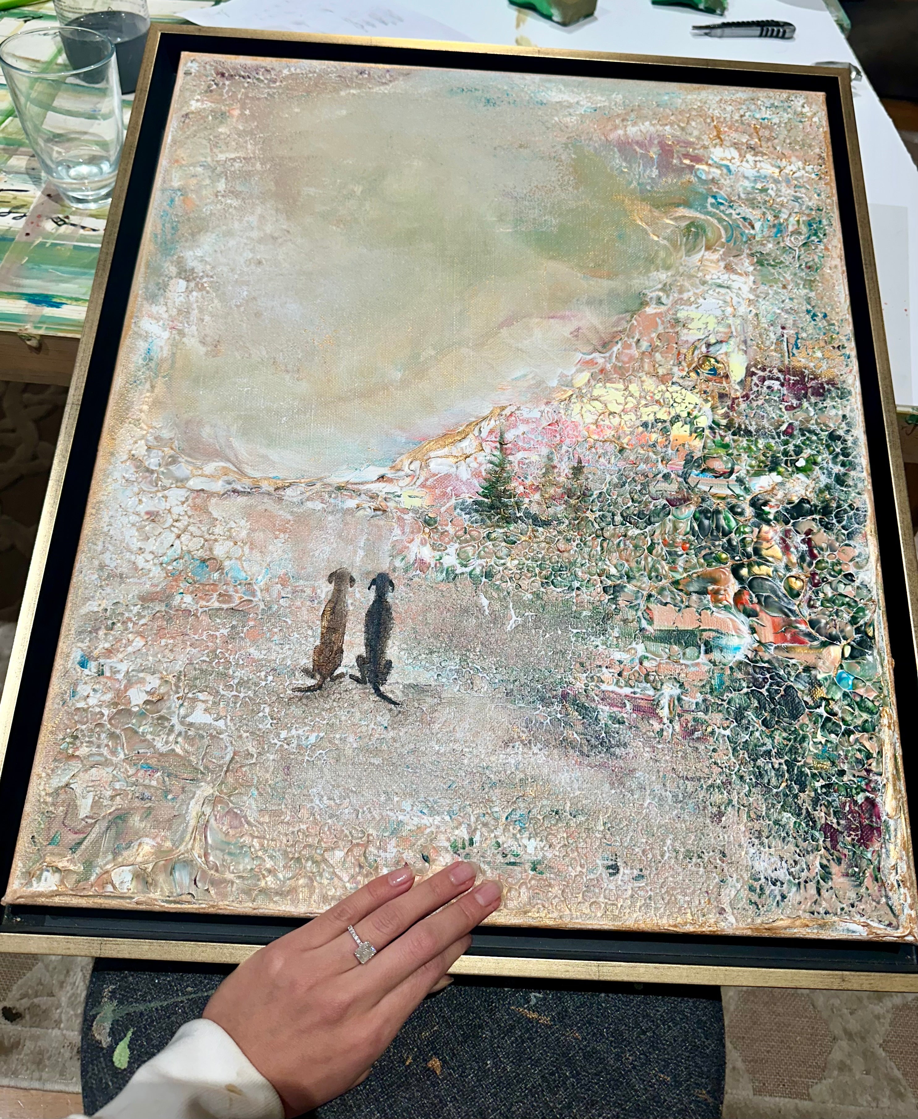 Vi erbjuder global frakt. Leveransen är upp till 6 veckor. En vit och gyllene ram skapad av konstnären ingår i priset. Certifikat med serienummer följer.