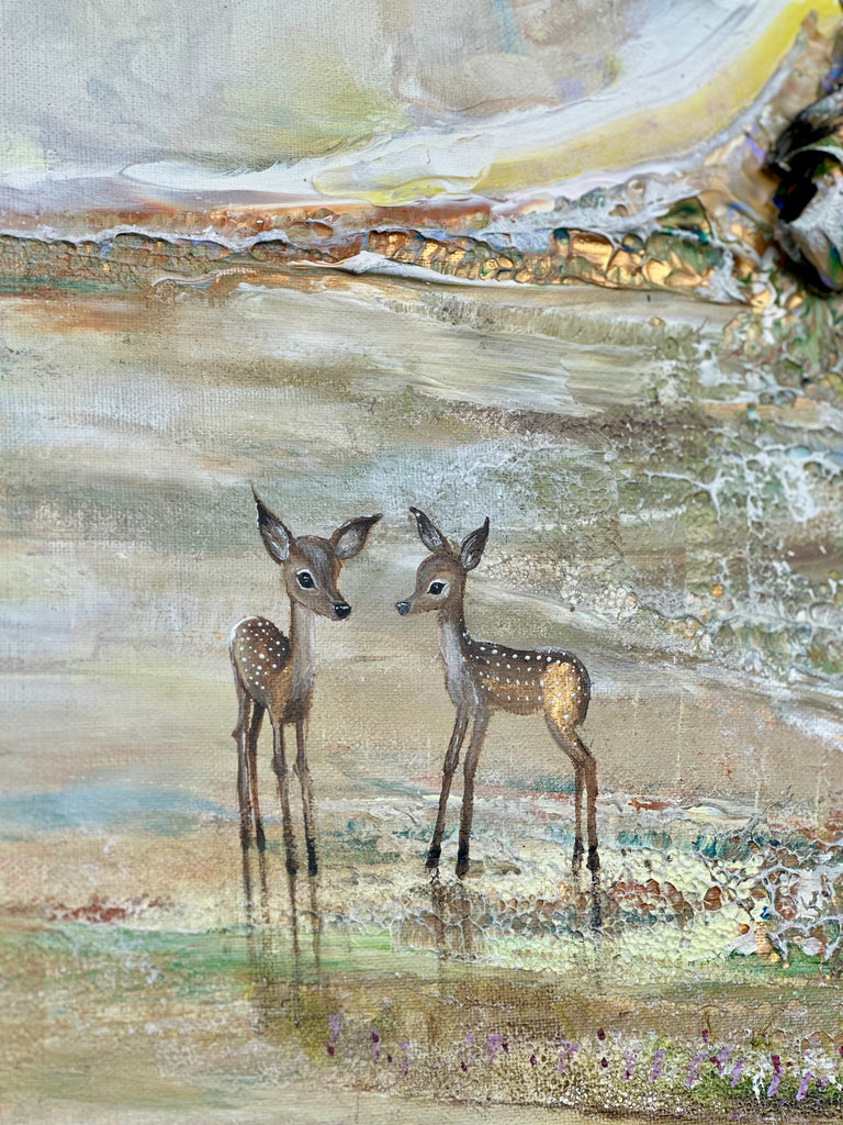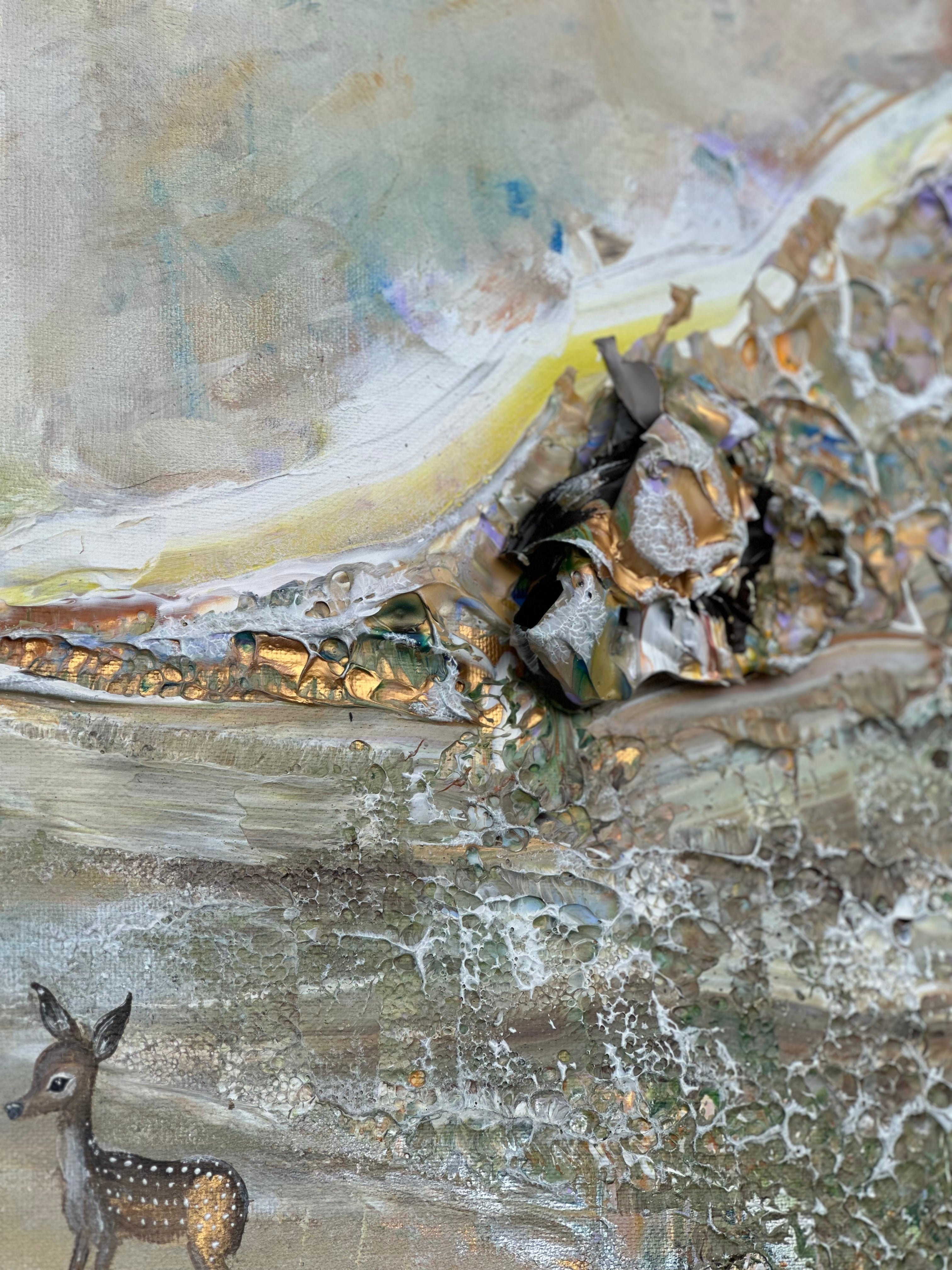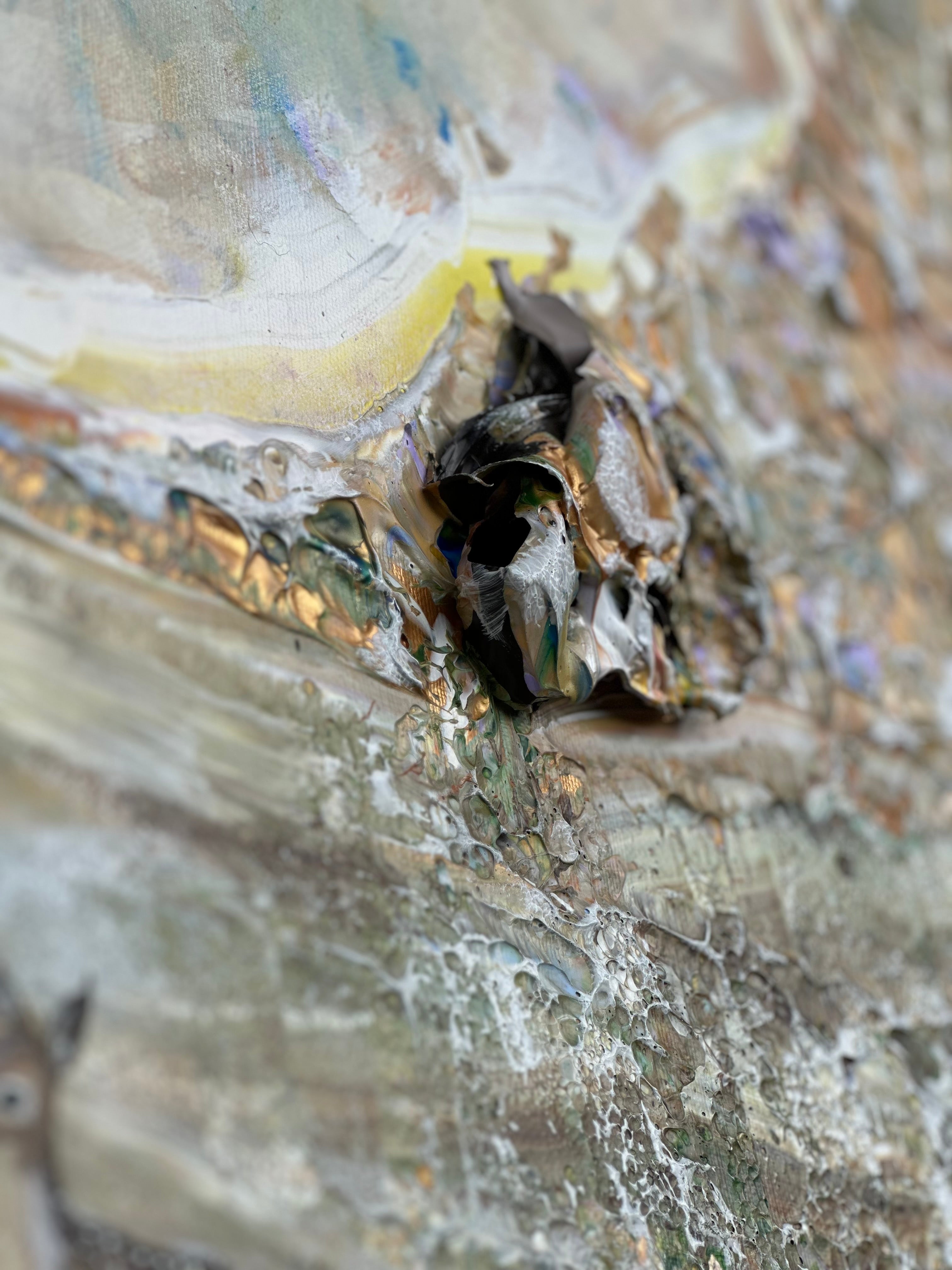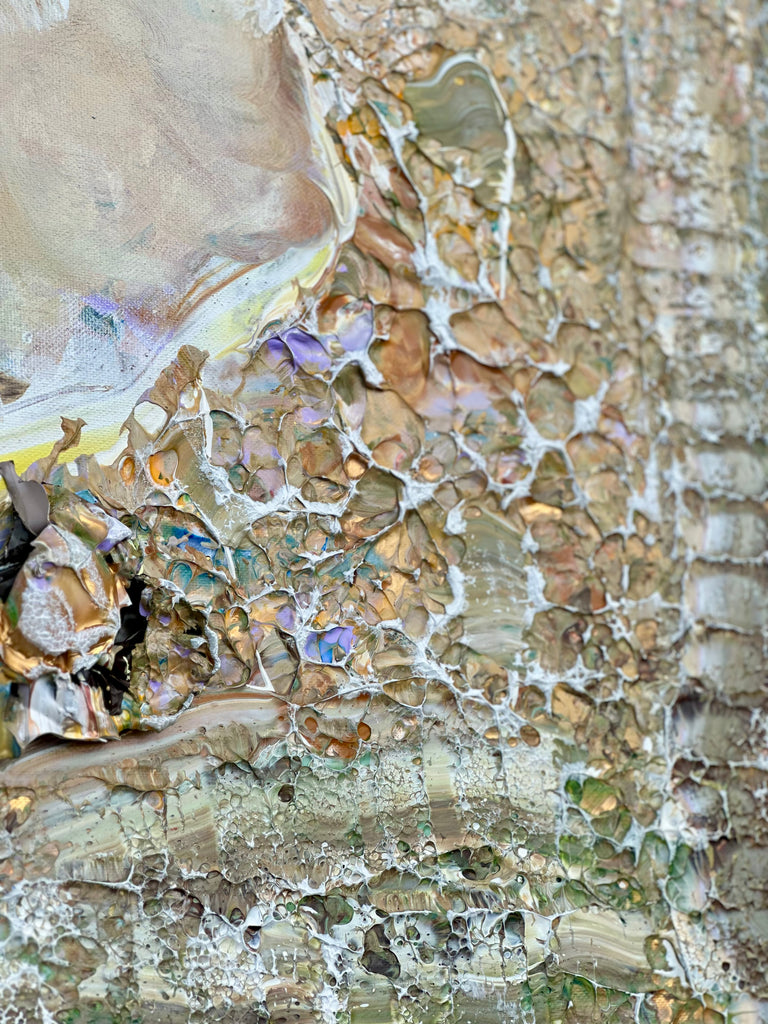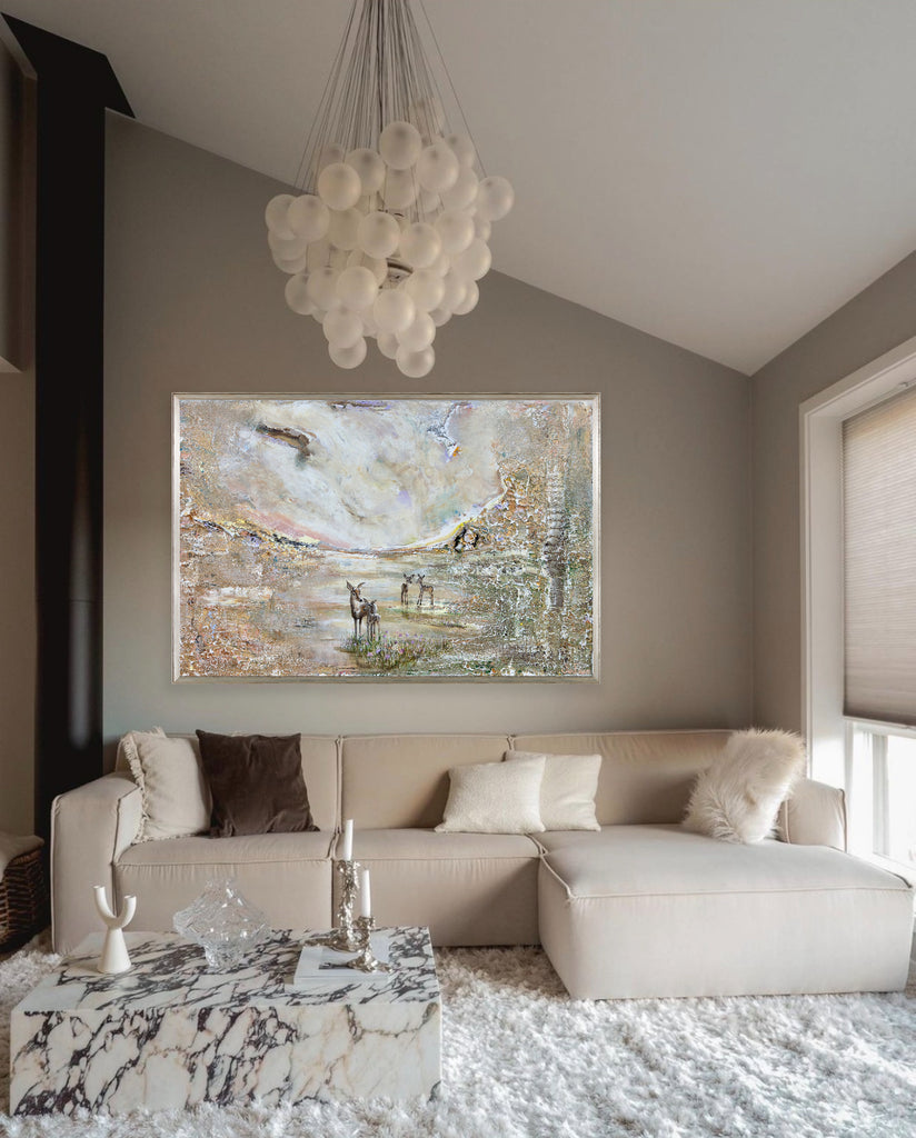 We offer worldwide shipping. The delivery is up to 6 weeks. A white and golden frame created by the artist, is included in the price.